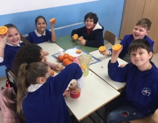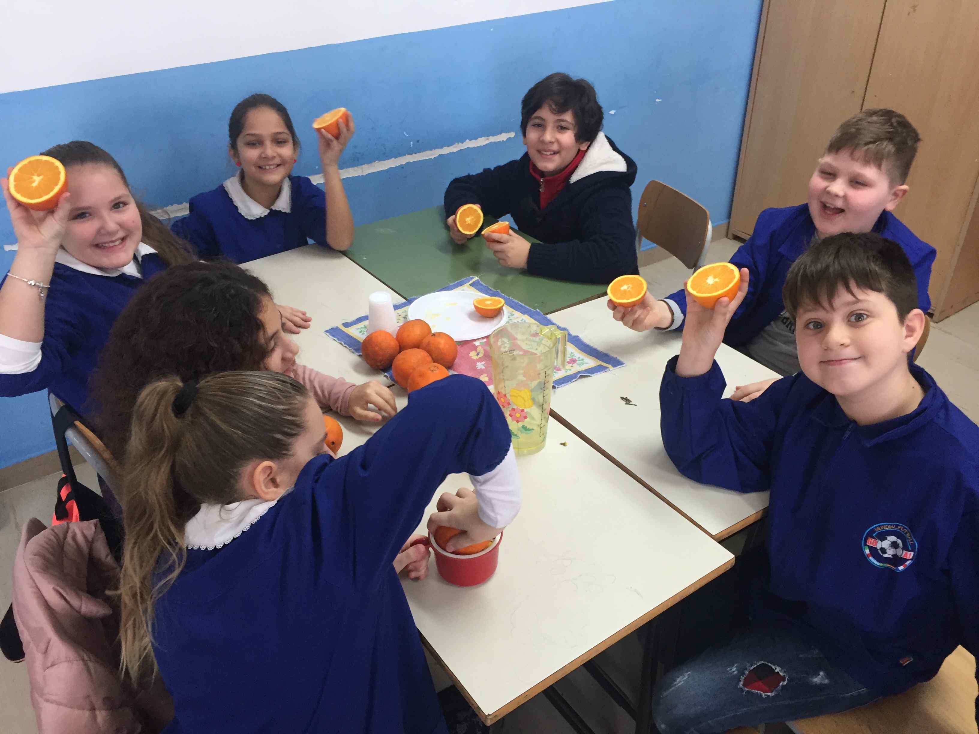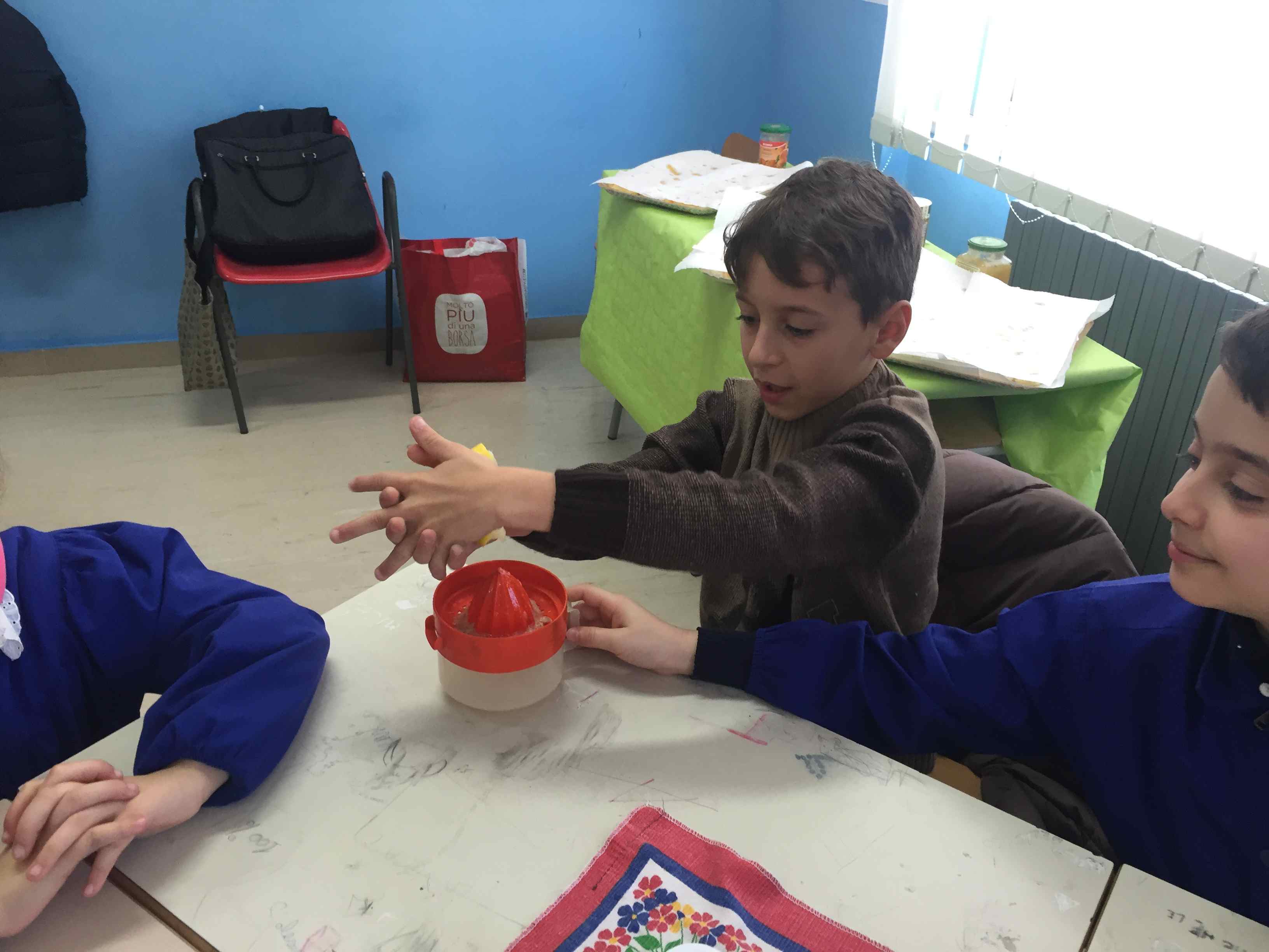 Gli alunni della classe 4^ D del plesso "Marvasi" hanno fatto in classe la spremuta di diversi agrumi (arance, limoni, mandarini) e degustato delle marmellate.