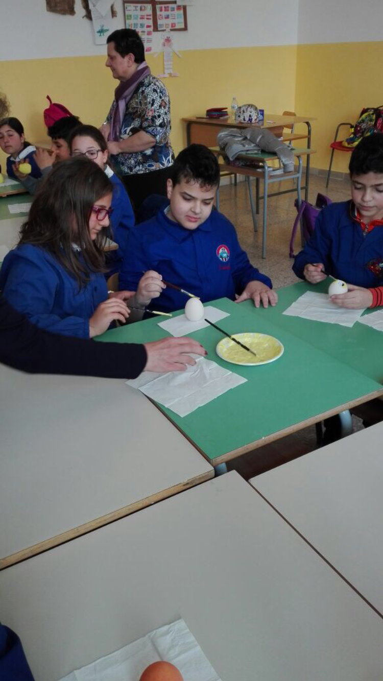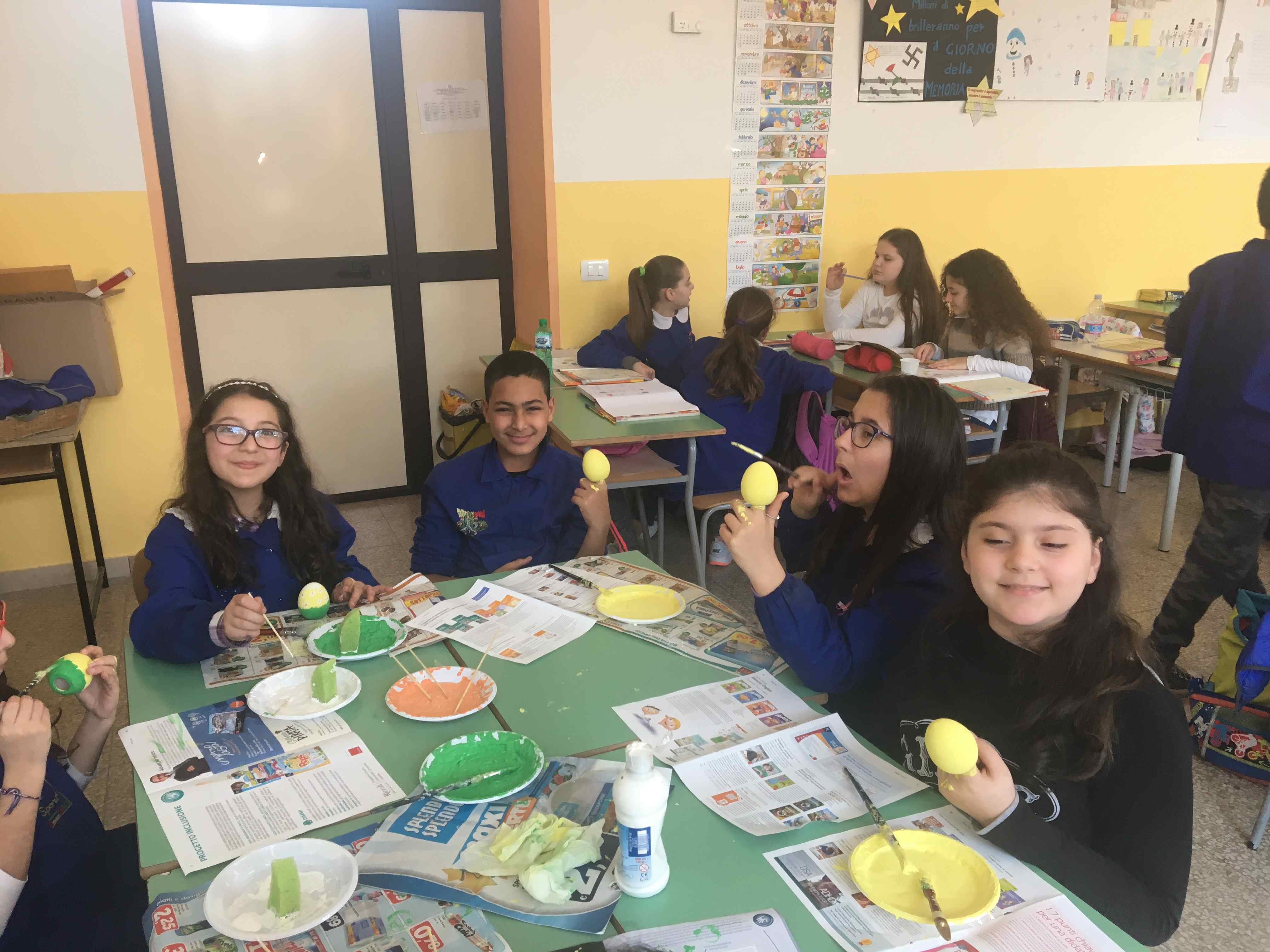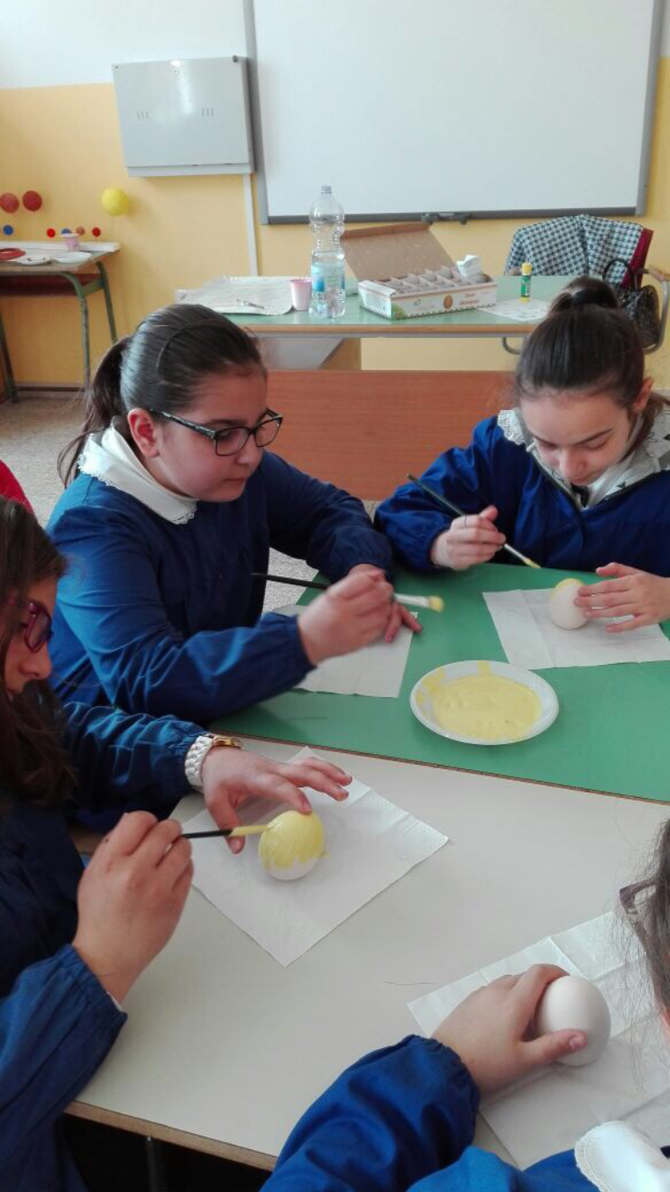 Gli alunni delle classi quinte C e D del plesso Marvasi, guidati dalle insegnanti, hanno dipinto e decorato piccole uova di ceramica da donare ai genitori insieme ad un biglietto augurale contenente la celebre poesia "Resurrezione" di Alessandro Manzoni.
