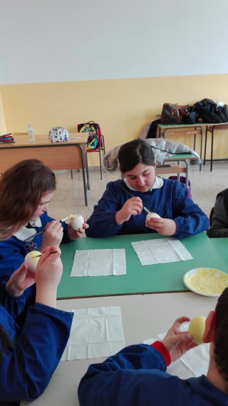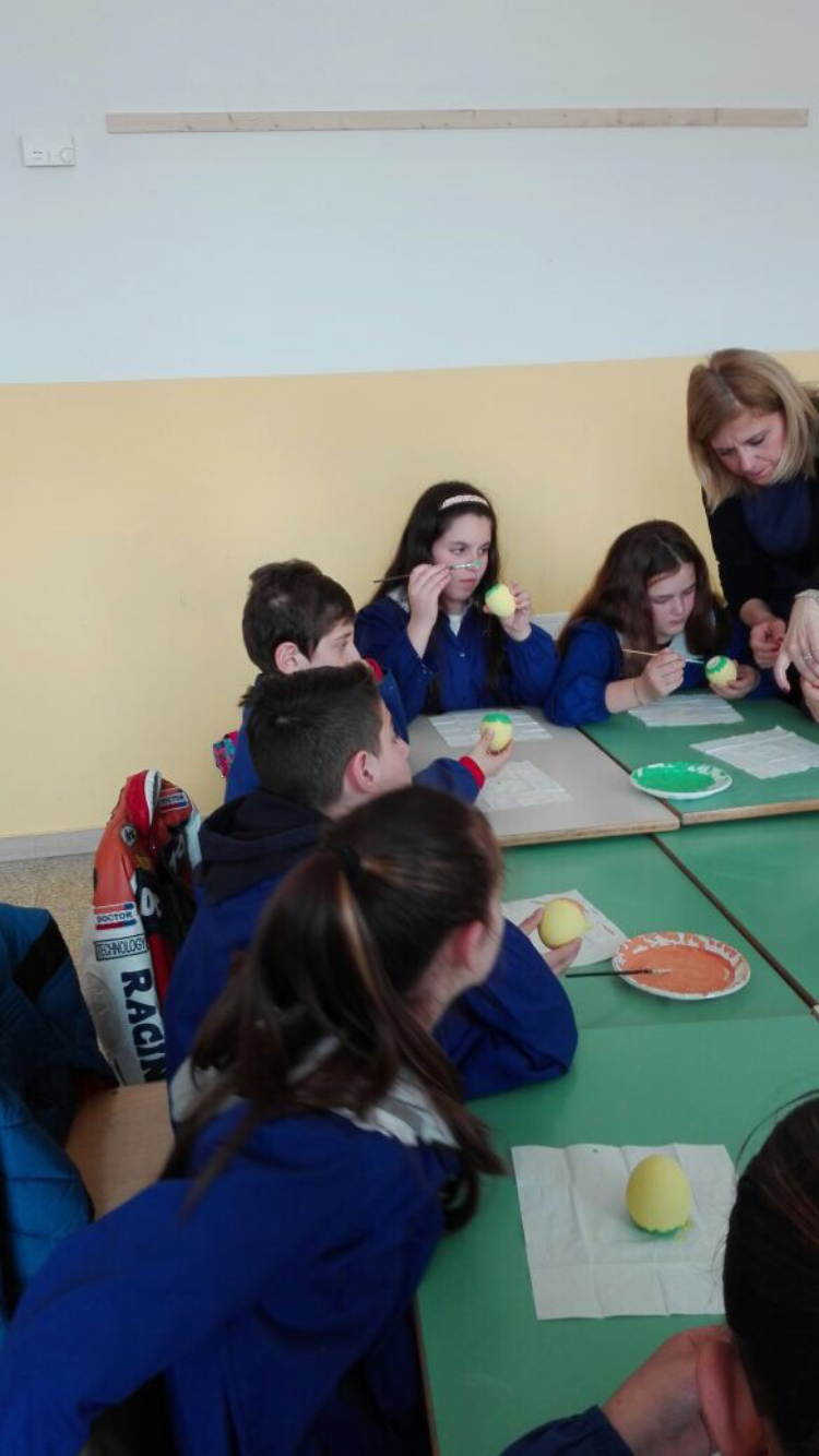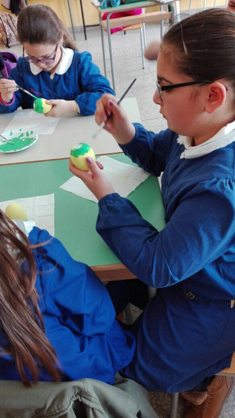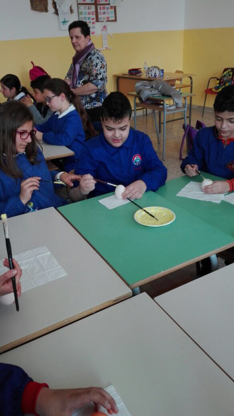 Gli alunni delle classi quinte C e D del plesso Marvasi, guidati dalle insegnanti, hanno dipinto e decorato piccole uova di ceramica da donare ai genitori insieme ad un biglietto augurale contenente la celebre poesia "Resurrezione" di Alessandro Manzoni.