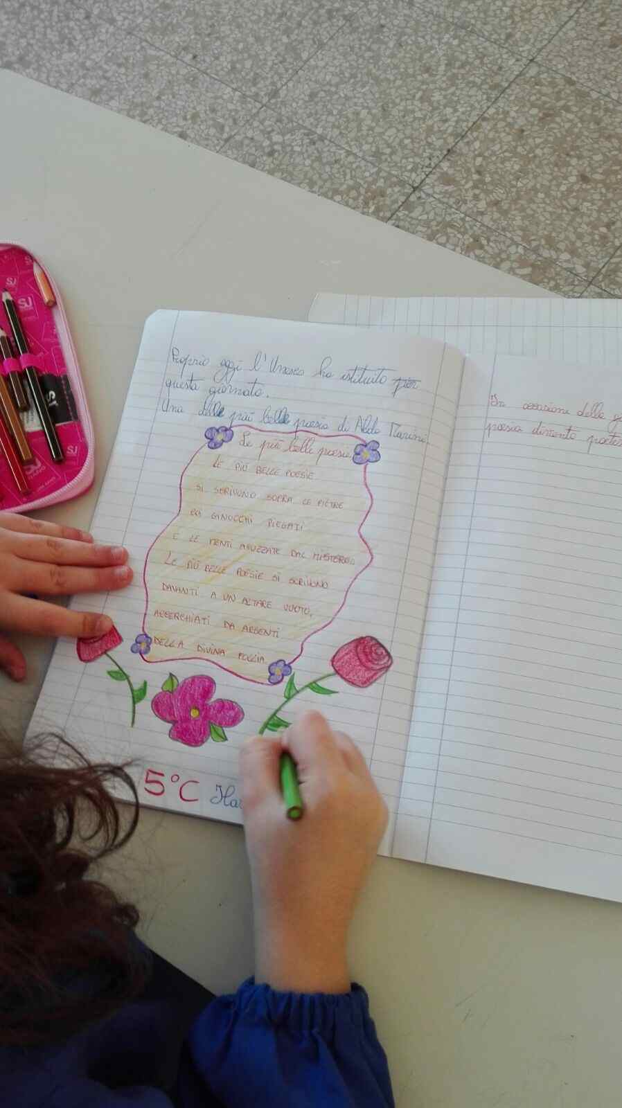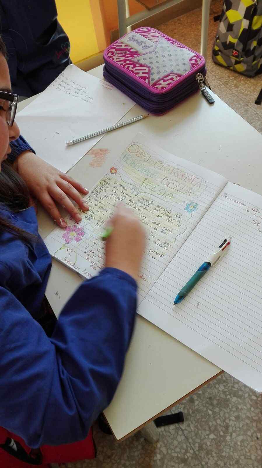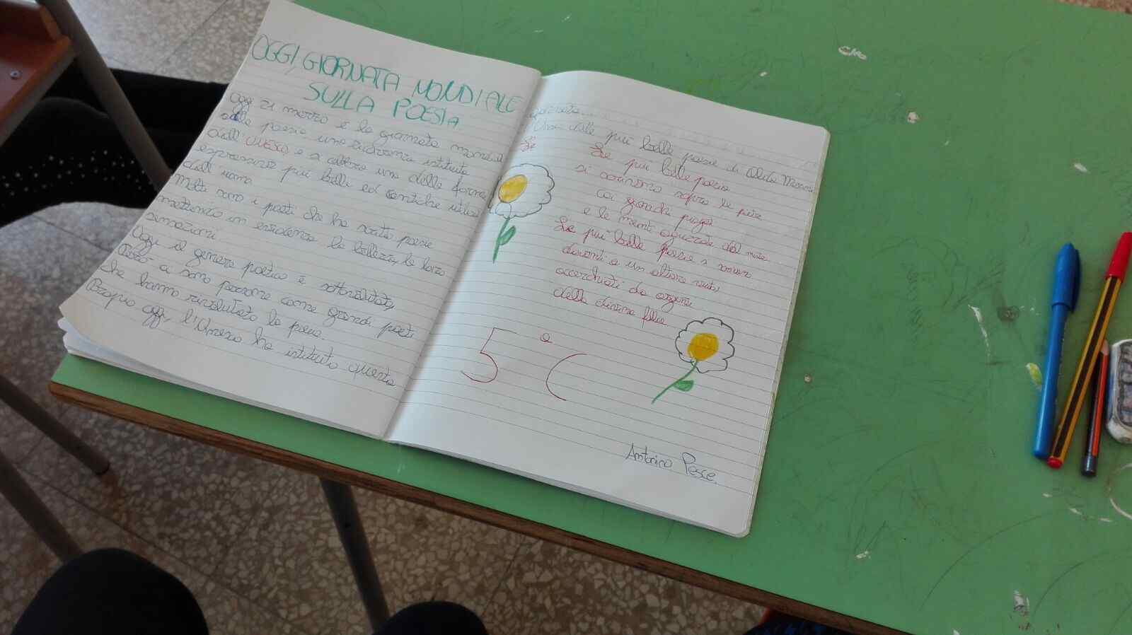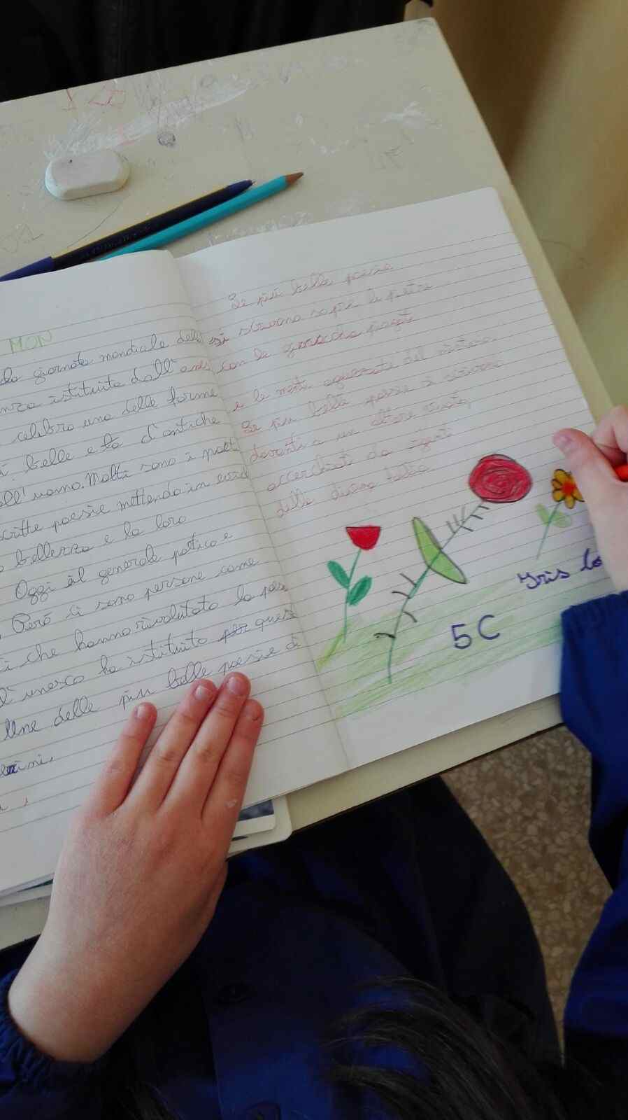 La classe V C del plesso Marvasi ha festeggiato la Giornata Mondiale della Poesia, tenutasi in data 21 Marzo 2017. Gli alunni hanno composto liberamente brevi e semplici testi poetici e hanno analizzato e commentato un brano di Alda Merini.