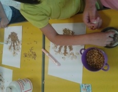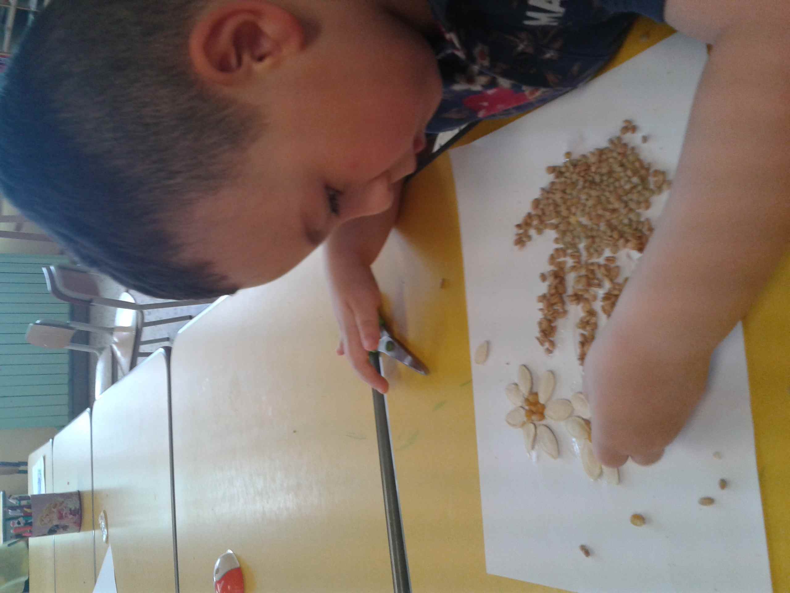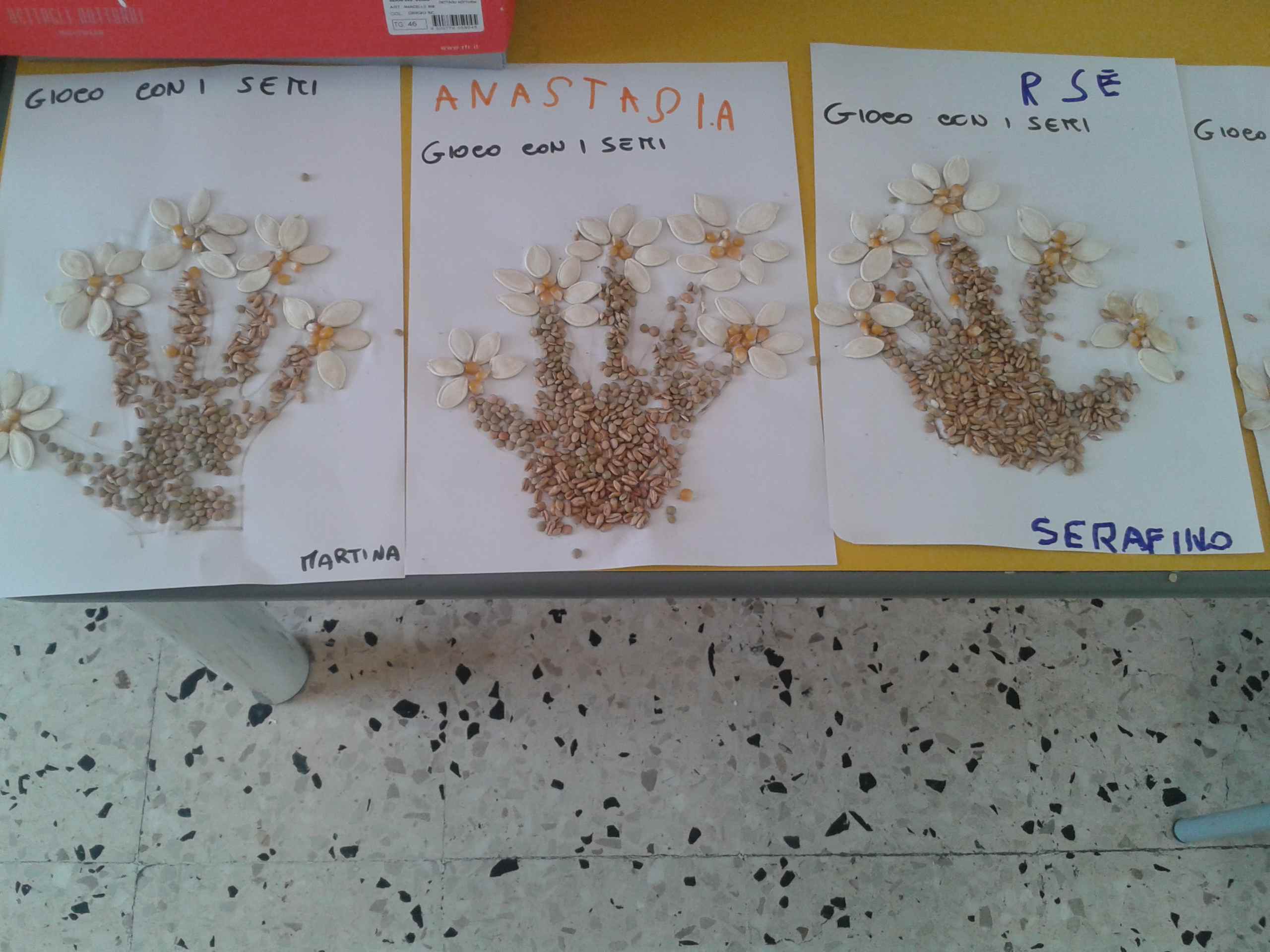 I bambini della II B della scuola dell'infanzia "Figliuzzi" si sono divertiti a creare, utilizzando semini di farro, mais, lenticchie e zucca, un bellissimo vaso pieno di fiori.