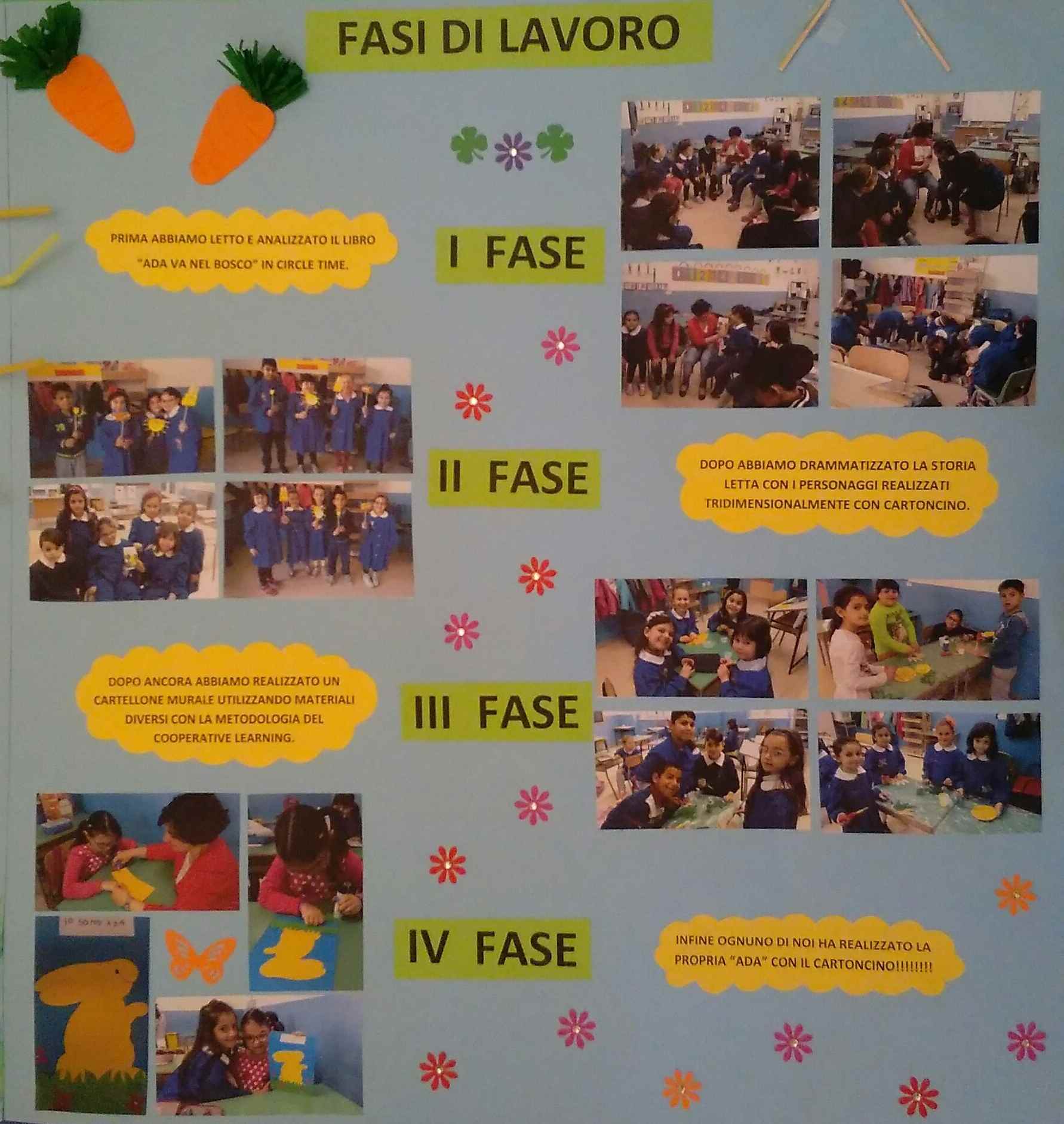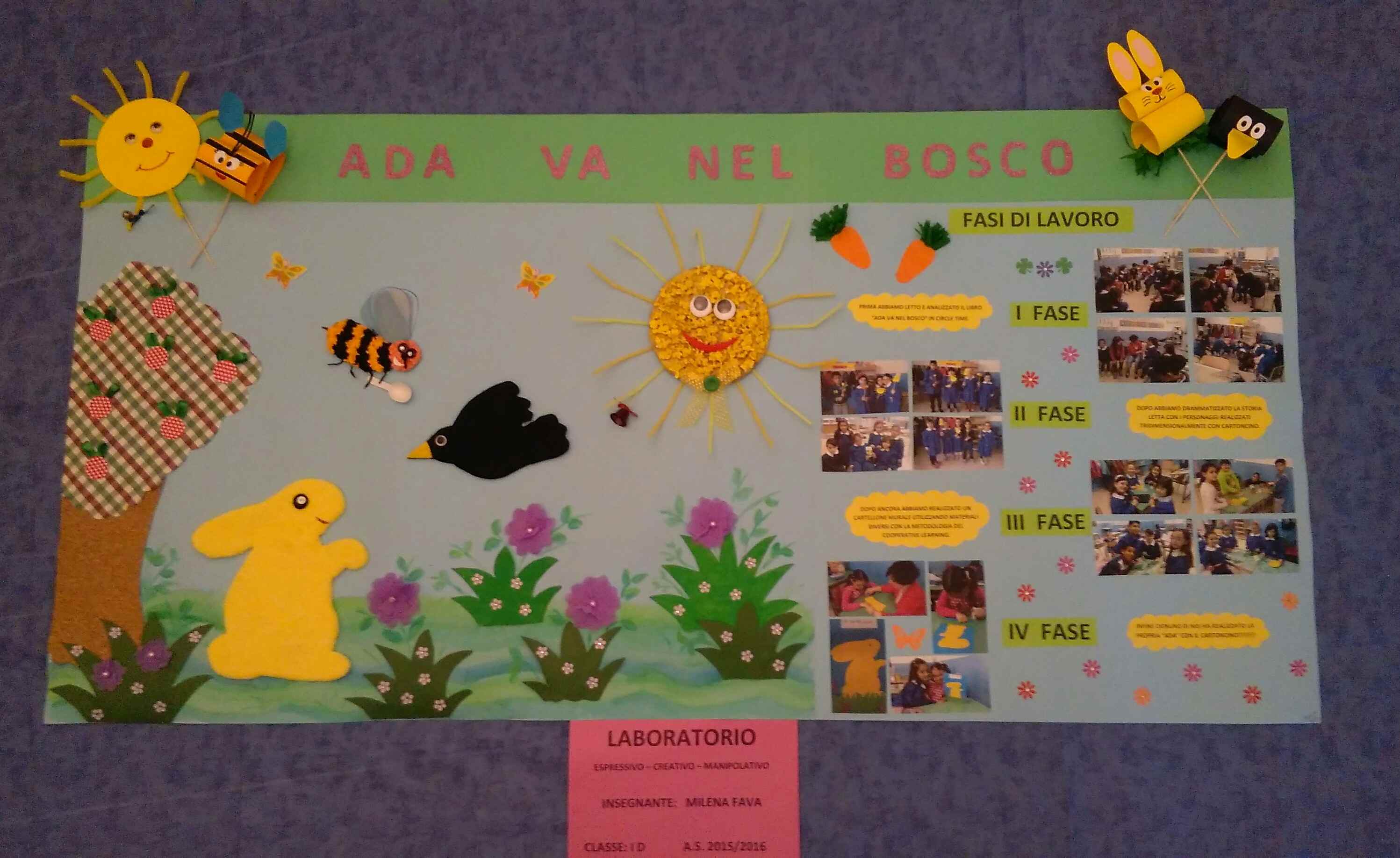 Partendo dal volumetto “Ada va nel bosco” di Francesco Altan, l'insegnante Fava Carmela ha proposto agli alunni della classe I D un’attività di osservazione, ascolto, dialogo e drammatizzazione, seguita da una fase laboratoriale in cui gli alunni hanno dovuto apportare un personale contributo alla realizzazione di un cartellone.