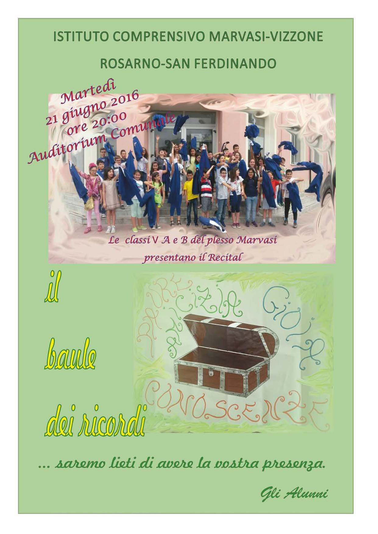 Gli alunni delle classi 5e "A" e "B" del plesso Marvasi salutano la Scuola che li ha accolti per cinque anni e spiccano il volo verso una nuova avventura.