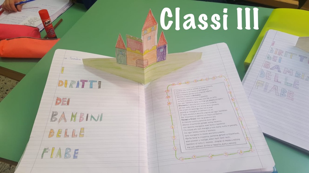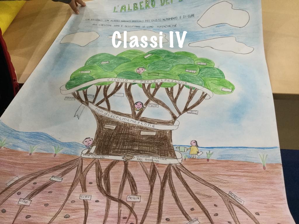 Le classi prime, unitamente alle terze sezioni della nostra scuola dell’infanzia e delle scuole paritarie del territorio, hanno affrontato insieme alle insegnanti la differenza tra diritti e “capricci”. Le seconde classi, invece, dopo aver svolto attività laboratoriali nelle proprie aule, hanno allestito nell’atrio della scuola l’albero dei diritti. Gli alunni delle classi terze, attraverso un’attenta lettura di alcune delle fiabe più popolari, hanno individuato e riconosciuto l’importanza di alcuni diritti fondamentali. La tematica affrontata dalle classi quarte, ha visto i bambini impegnati in elaborazioni di testi, poesie e attività creative: “riuscire a realizzare i propri sogni attraverso i diritti” è stato il loro slogan. Gli alunni delle classi quinte, infine, relativamente ai temi della solidarietà e della collaborazione, hanno condiviso gli elaborati realizzati.