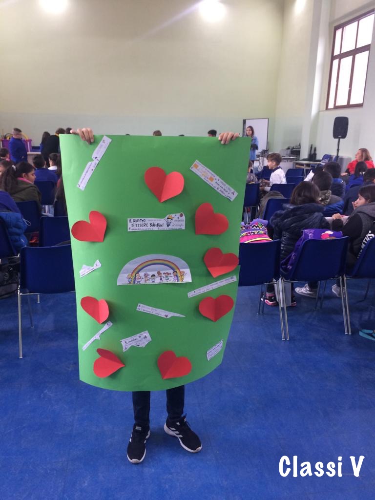 Le classi prime, unitamente alle terze sezioni della nostra scuola dell’infanzia e delle scuole paritarie del territorio, hanno affrontato insieme alle insegnanti la differenza tra diritti e “capricci”. Le seconde classi, invece, dopo aver svolto attività laboratoriali nelle proprie aule, hanno allestito nell’atrio della scuola l’albero dei diritti. Gli alunni delle classi terze, attraverso un’attenta lettura delle fiabe più popolari, hanno individuato e riconosciuto l’importanza di alcuni diritti fondamentali. La tematica affrontata dalle classi quarte, ha visto i bambini impegnati in elaborazioni di testi, poesie e attività creative: “riuscire a realizzare i propri sogni attraverso i diritti” è stato il loro slogan. Gli alunni delle classi quinte, infine, relativamente ai temi della solidarietà e della collaborazione, hanno condiviso gli elaborati realizzati.