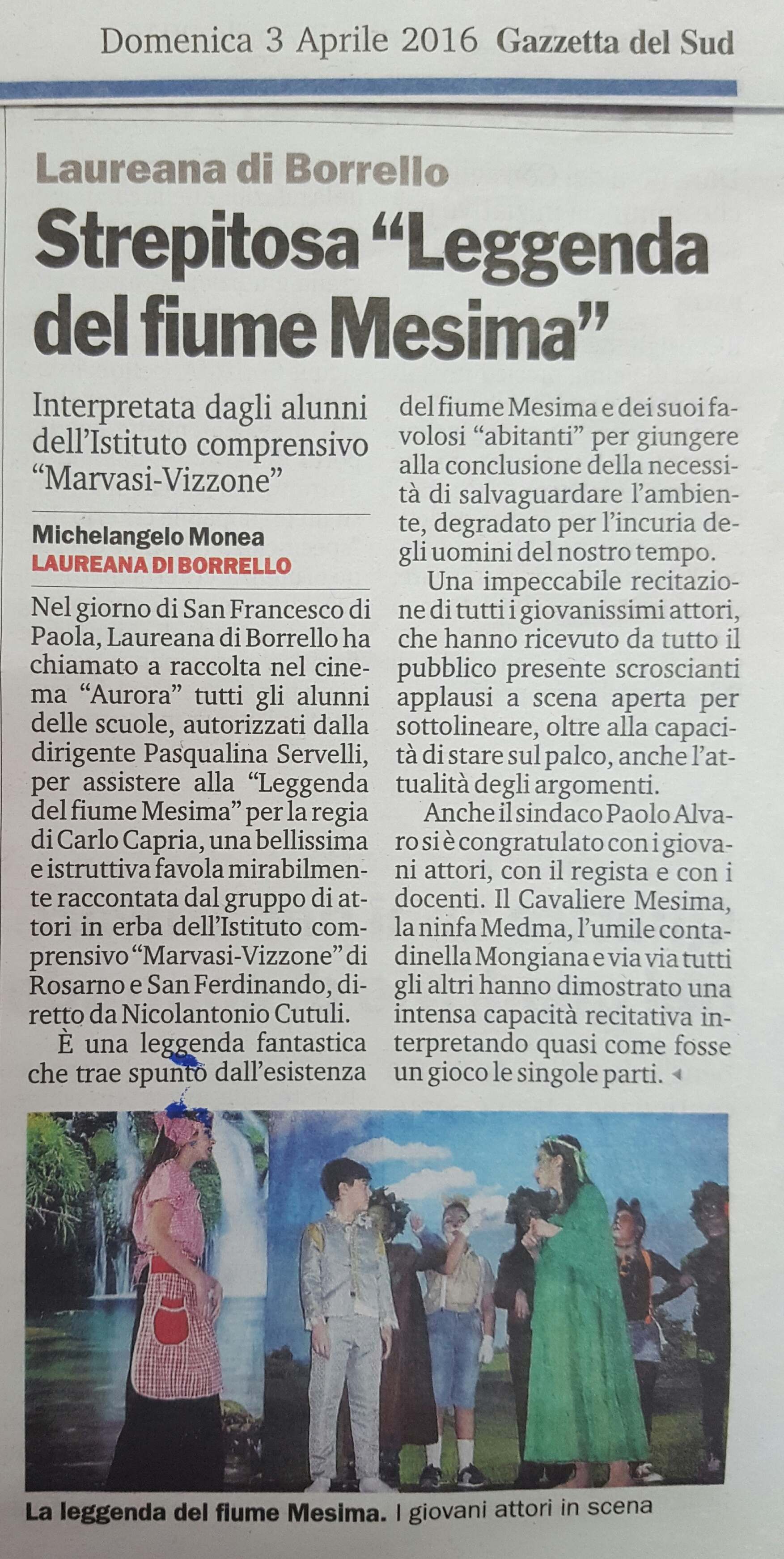 SAN FERDINANDO - Dal laboratorio teatrale un'opera fantastica inscenata da giovani attori, gli alunni della Scuola secondaria di 1° grado "M. Vizzone", che trae spunto dall'esistenza del fiume Mesima e dei suoi favolosi "abitanti" per giungere alla conclusione della necessità di salvaguardare l'ambiente, degradato per l'incuria degli uomini del nostro tempo.
