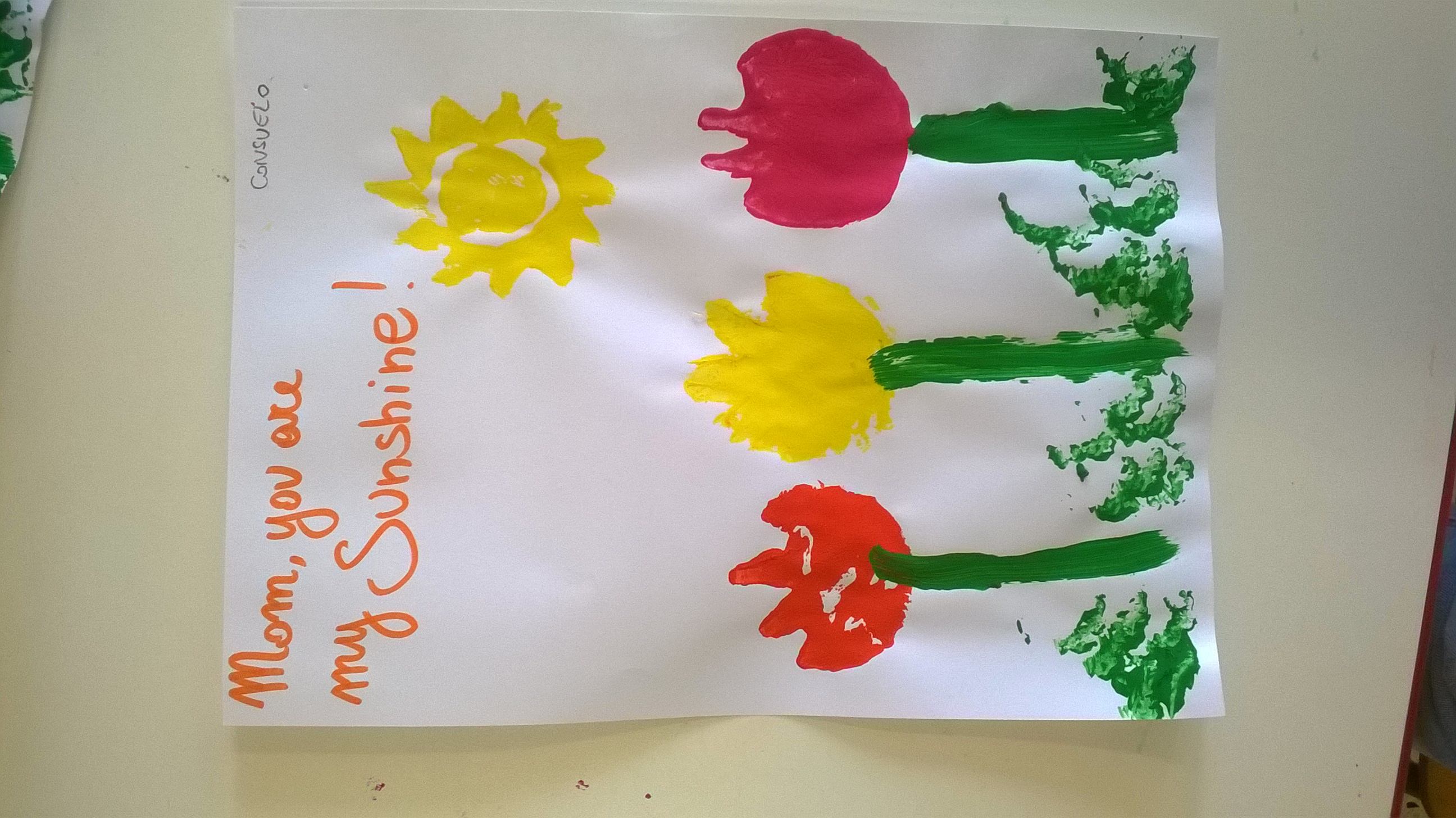 Continua con grande entusiasmo e partecipazione il progetto "Hello children" in tutti i plessi della Scuola dell'Infanzia dell'IC Marvasi. Anche in questo campo di esperienza linguistico gli alunni, seguiti dalla docente Elisa Di Maio, hanno voluto produrre un regalo per il Mother's day, il giorno della Festa della mamma. Usando tempere e vegetali, patate, zucchine, carciofi e sedano, hanno realizzato un innovativo e sorprendente quadretto, in cui la frase "Mom, you are my sunshine" (Mamma, sei il mio sole), ha dato loro l'opportunità di apprendere nuovi termini in L2 ed associare le tradizionali feste italiane a quelle straniere. Gli alunni, inoltre, stanno iniziando a fare le prove per il saggio di fine annno, durante il quale canteranno alcune delle canzoni imparate durante questo progetto, rigorosamente in lingua inglese! Prosegue ancora, tra l'altro, anche il progetto continuità infanzia - primaria per l'insegnamento della lingua inglese, in collaborazione con le docenti Rizzo Katia e Sorrenti Maria Teresa.