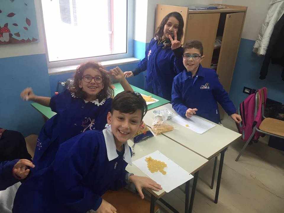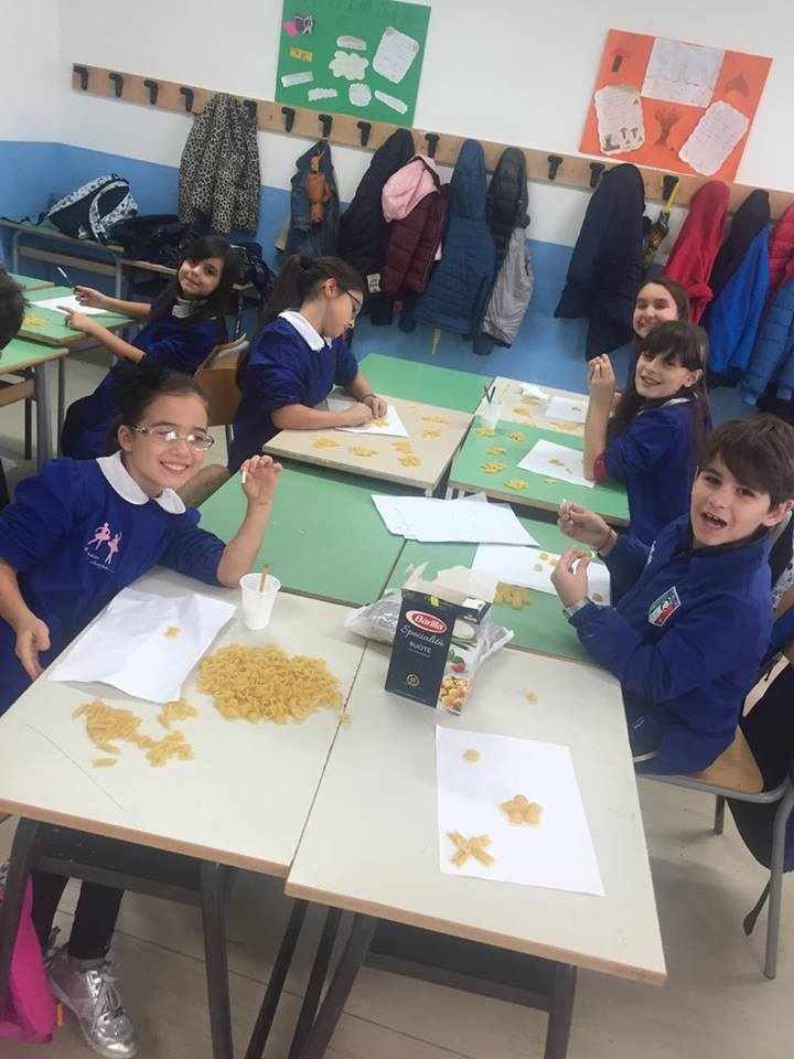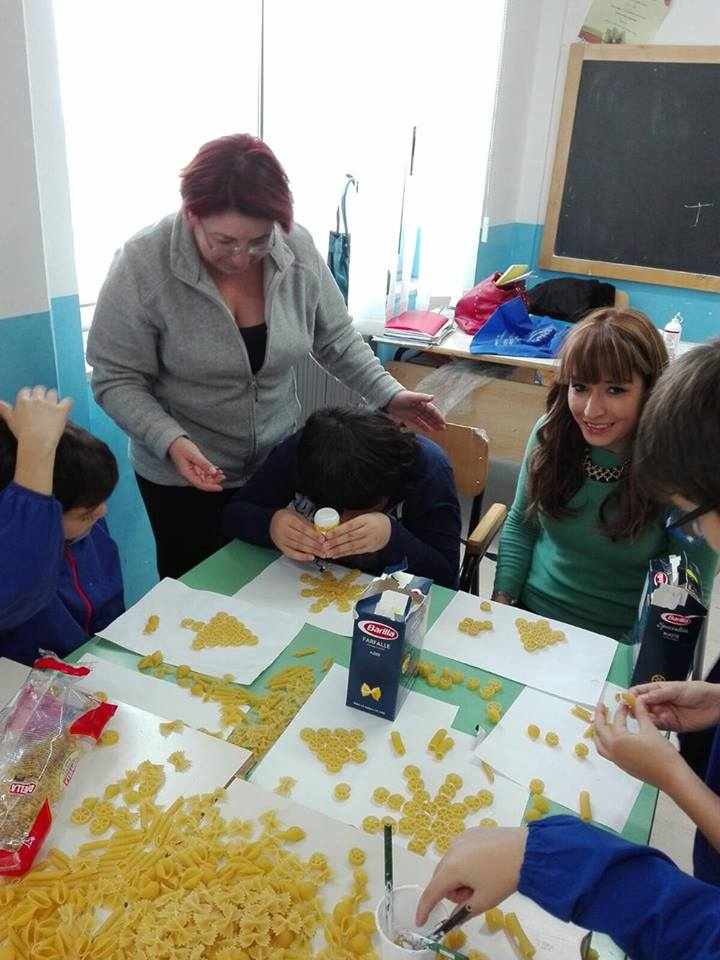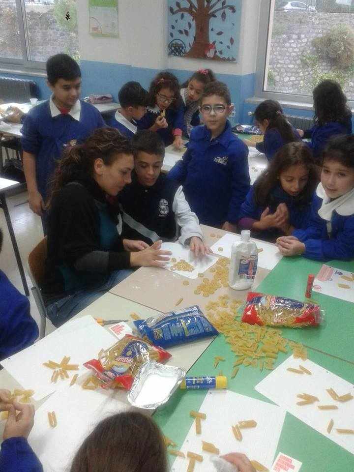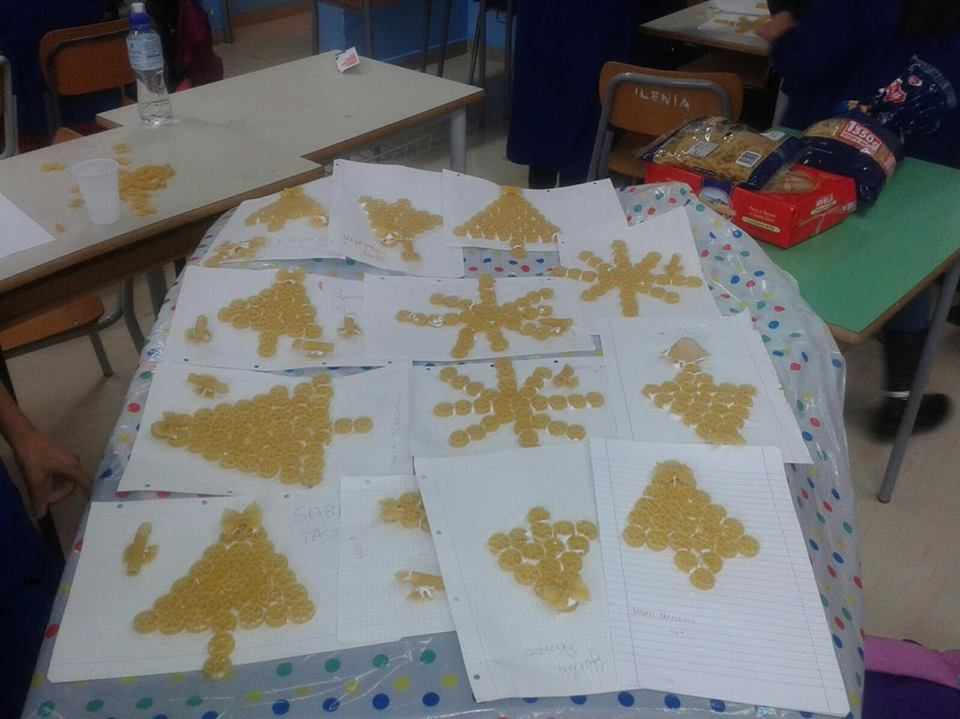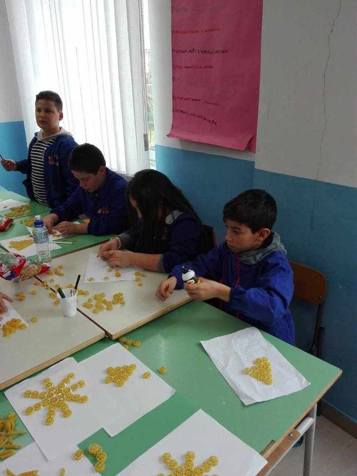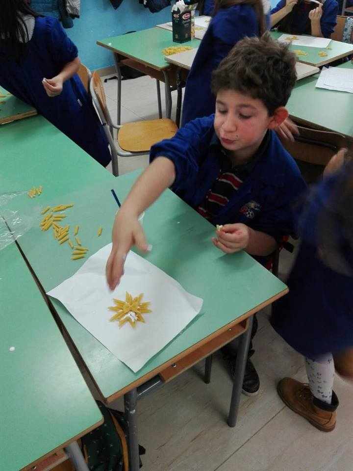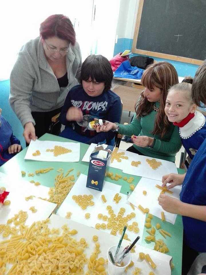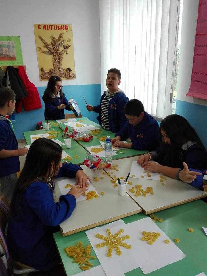 Gli alunni delle classi quarte A, B, C e D hanno lavorato insieme per realizzare piccoli addobbi di pasta e decorare i locali della scuola.