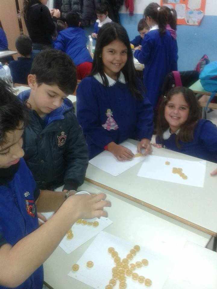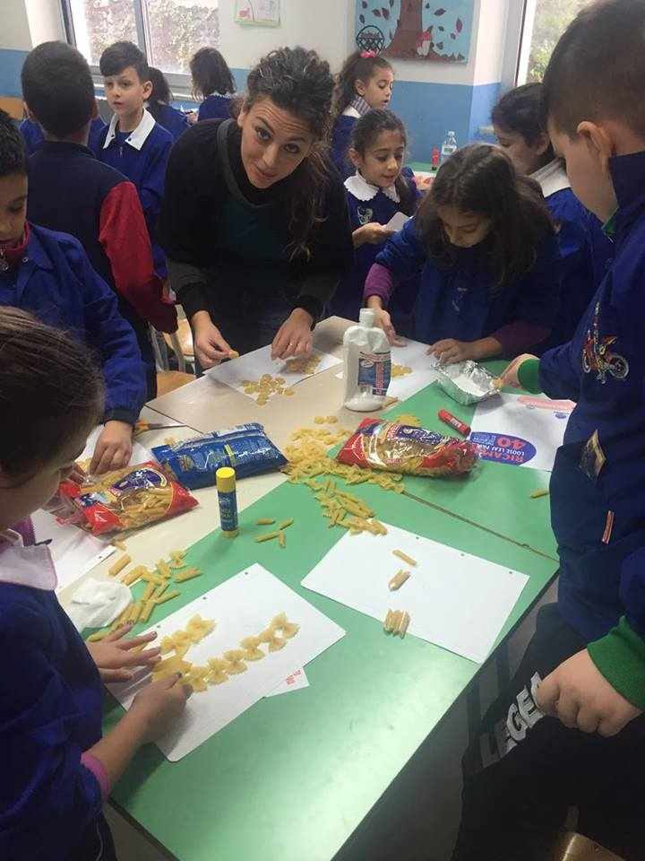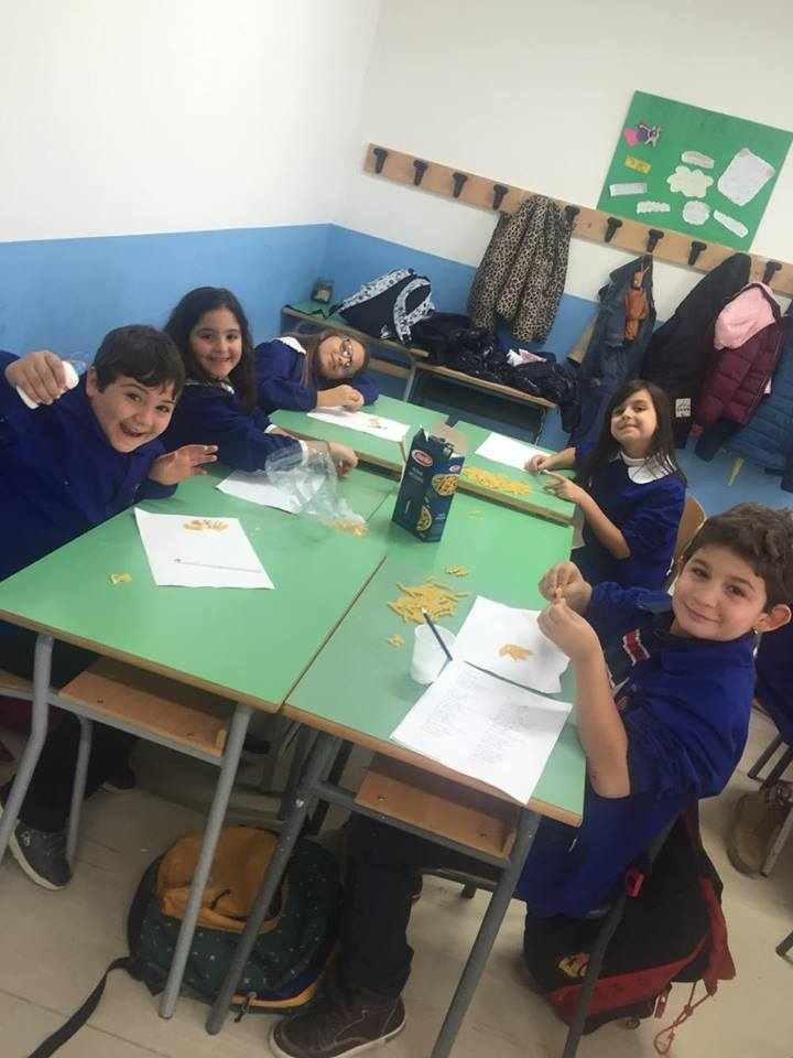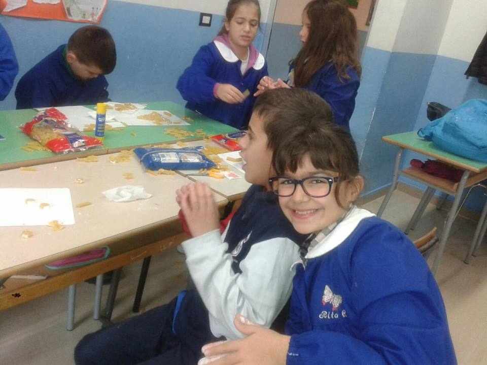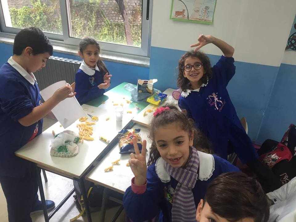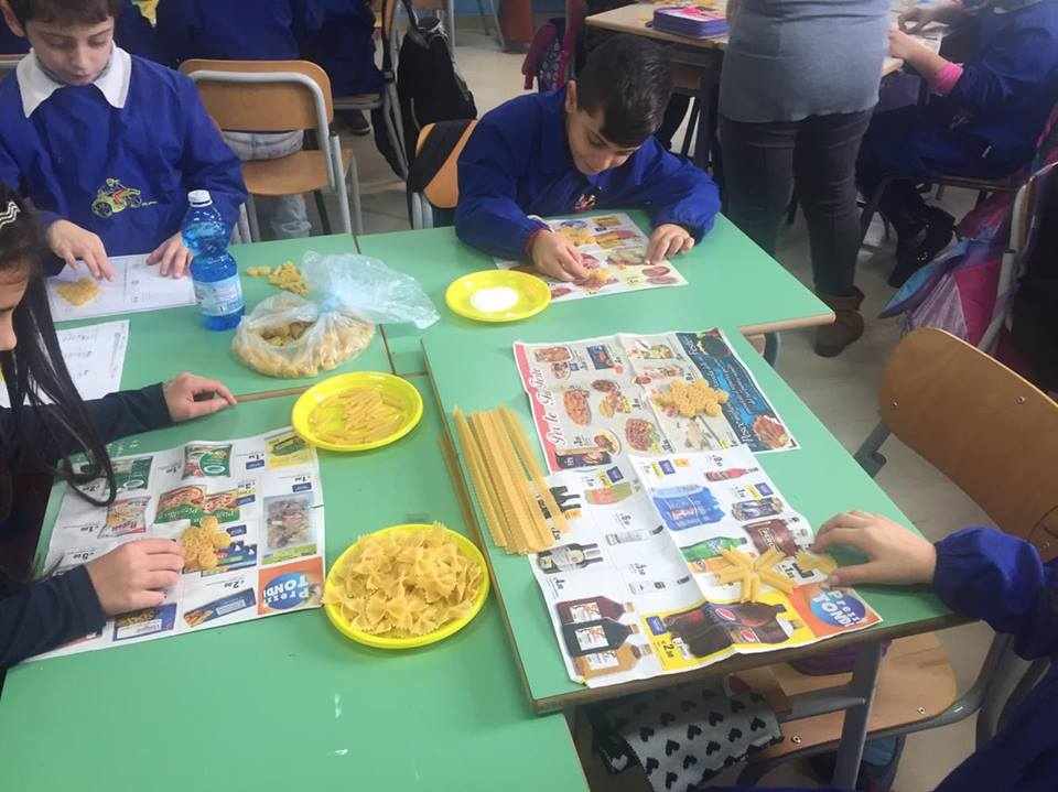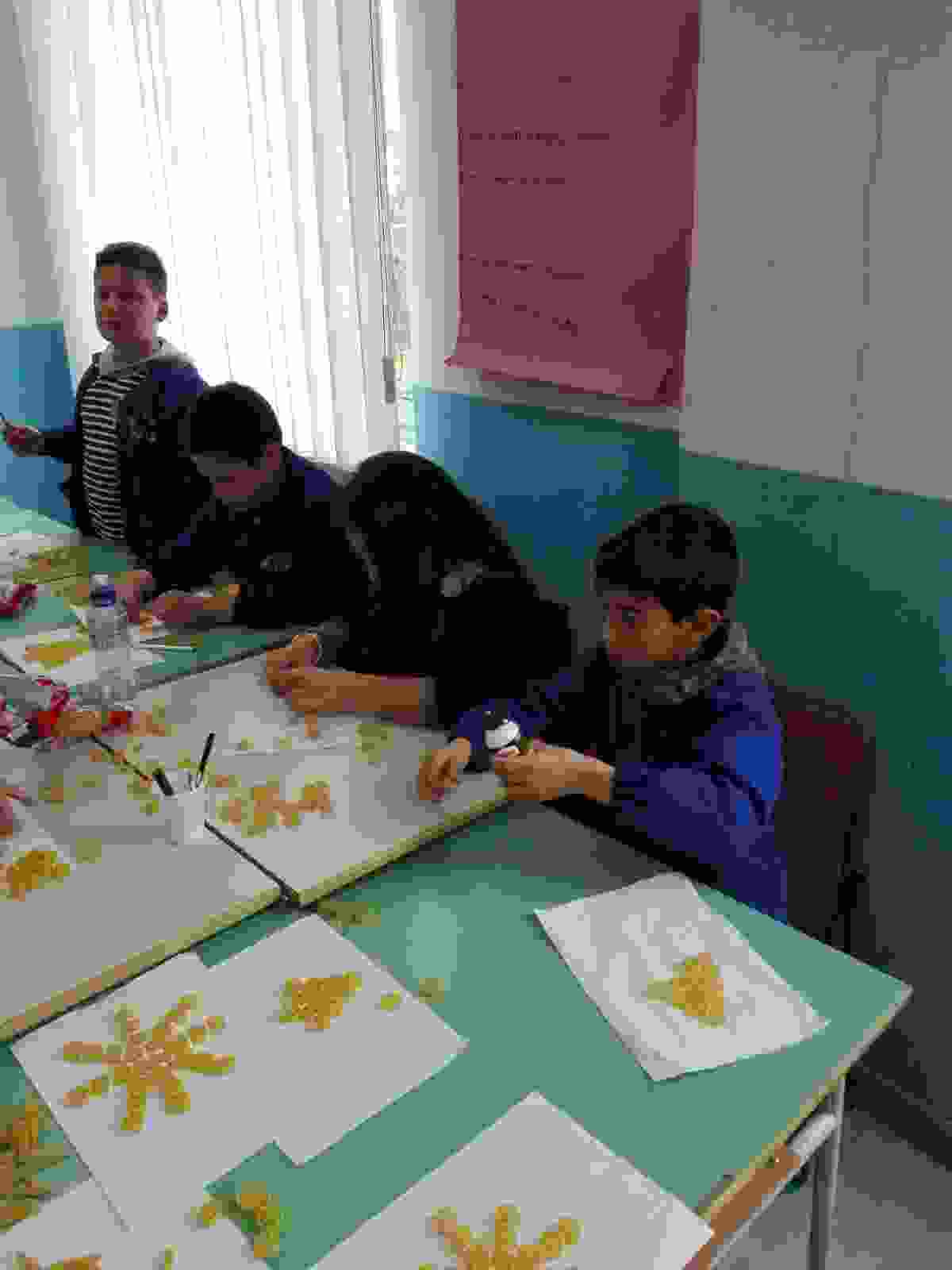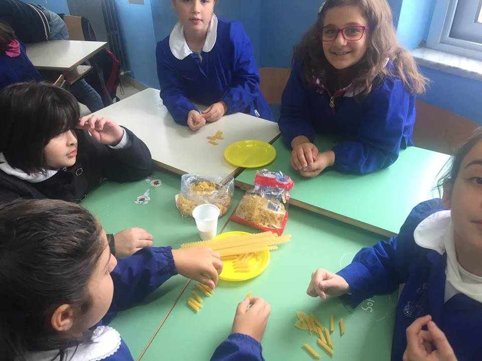 Gli alunni delle classi quarte A, B, C e D hanno lavorato insieme per realizzare piccoli addobbi di pasta e decorare i locali della scuola.