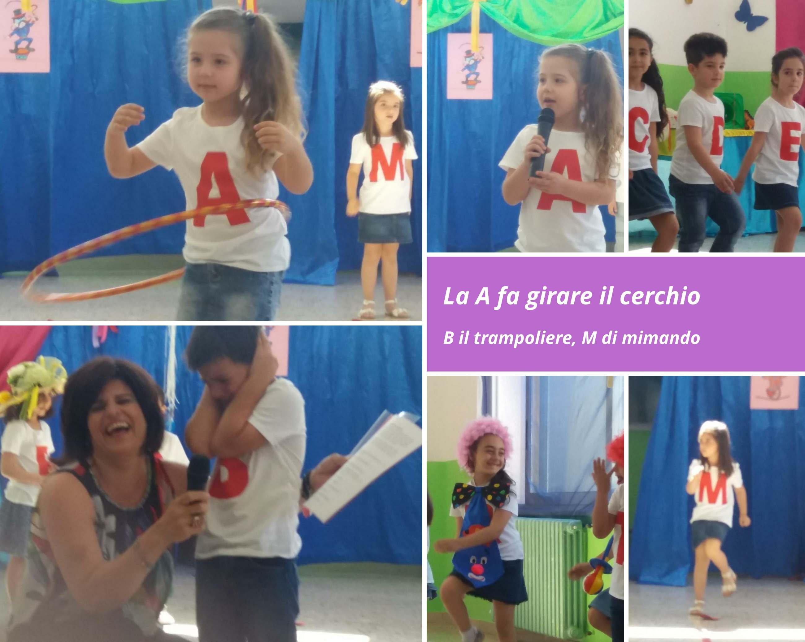In occasione della chiusura dell’anno scolastico IL GIORNO 14 GIUGNO 2017 i bambini della 3 A “I Pesciolini” della scuola dell’ Infanzia “Figliuzzi” San Ferdinando guidati dalle Insegnanti Fiamingo Rosetta e Pacile’ Angela si esibiscono nel Recital “Il Circo dell’alfabeto” Le drammatizzazioni saranno allietate dalle esibizioni preparate dalle Insegnanti Fiamingo Luisa e Corrao Martina responsabili dei progetti “ ENGLISH IS FUN” e “PRIMA MUSICA”.