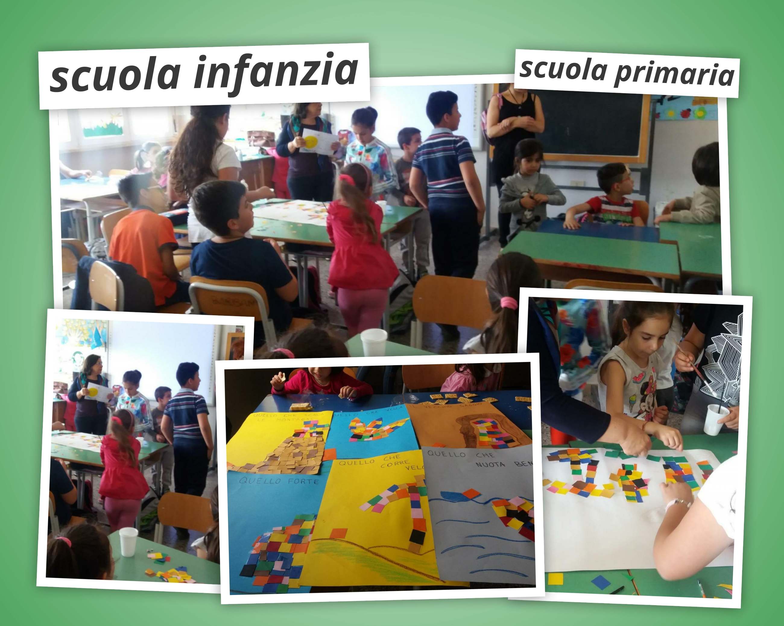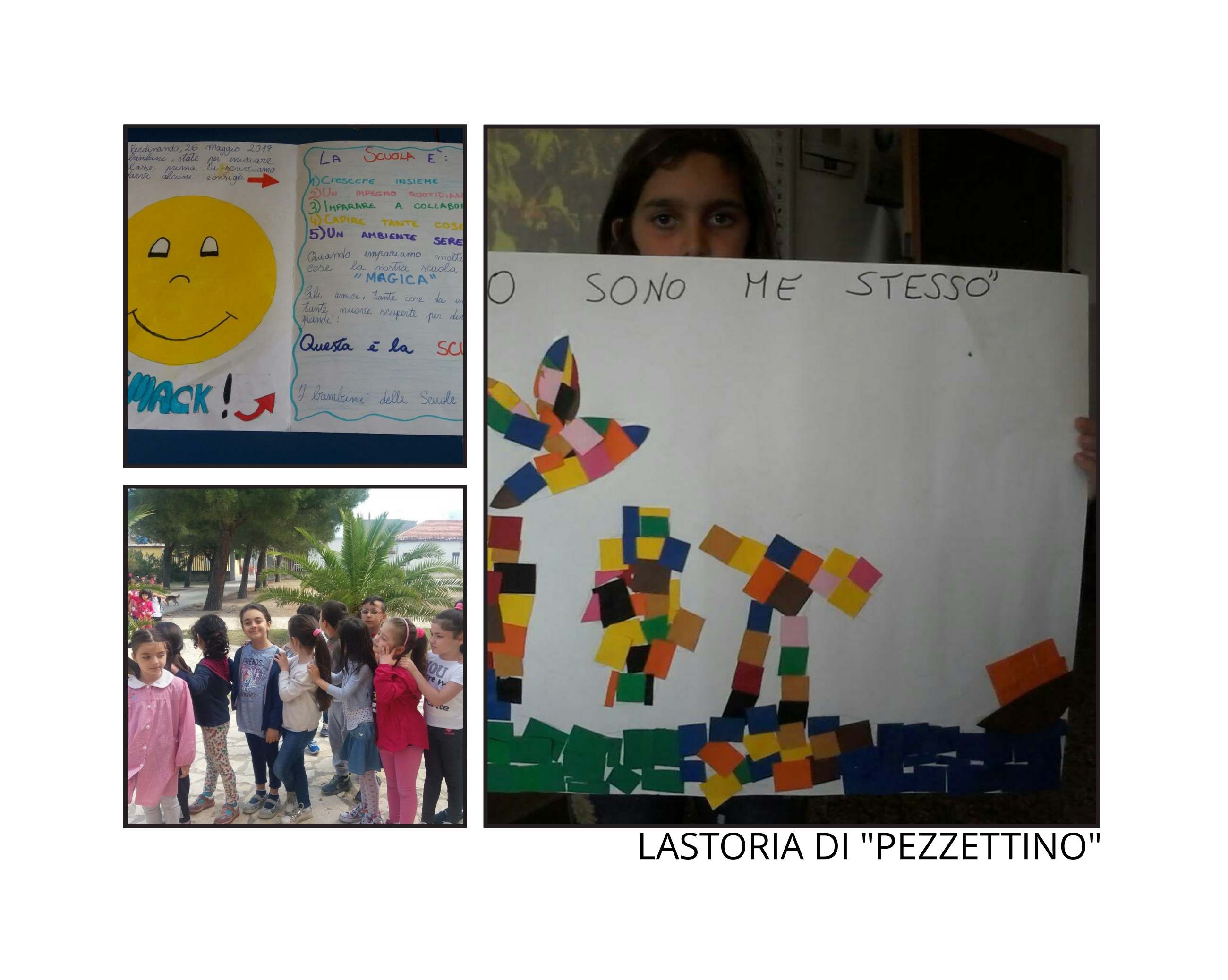 Elemento centrale del percorso è il libro “Pezzettino” di Leo Lionni un libro in cui il protagonista, Pezzettino per l’appunto, è alla ricerca di se stesso e di accettazione da parte degli altri; il viaggio sarà lungo e difficile ma alla fine scoprirà una grande verità “Io sono me stesso”.