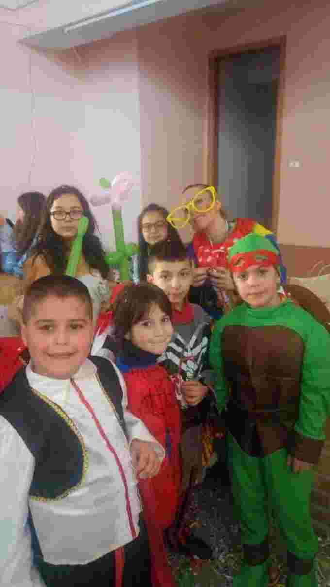 Carnevale 2017 al plesso "BOSCO". Gli alunni e le insegnanti, tutti in maschera, hanno cantato e ballato con l'ausilio di un animatore.