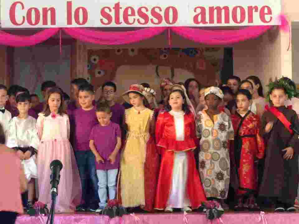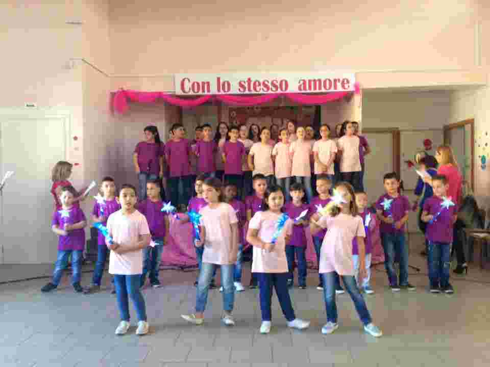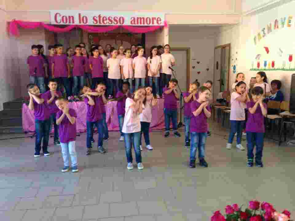 "Con lo stesso amore è il titolo del recital del nostro plesso. Gli alunni hanno dedicato questo spettacolo a tutte le mamme. Una piccola rappresentazione, in cui le bambine, hanno ricoperto il ruolo di "mamme" di varie epoche e vari Paesi del mondo. Tutti gli alunni hanno poi continuato con poesie, balletti e canzoni.