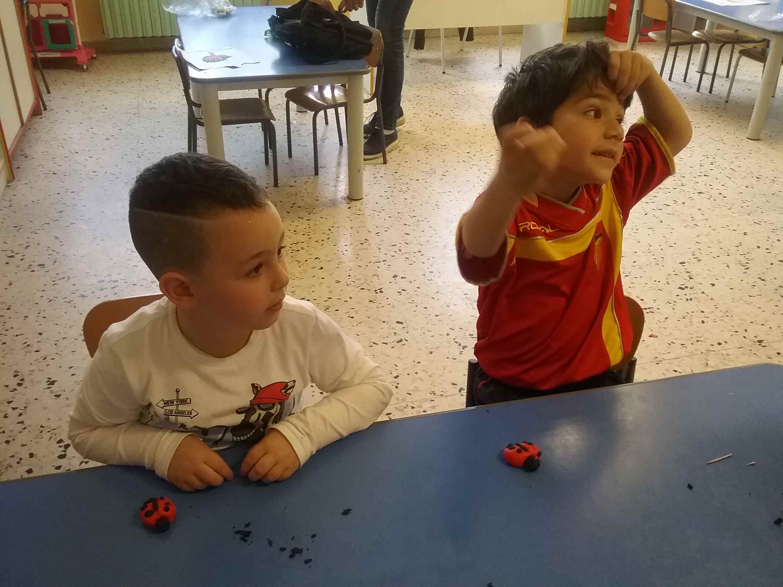 I bambini della II B della scuola dell'infanzia "Figliuzzi" giocano con la primavera e creano le coccinelle