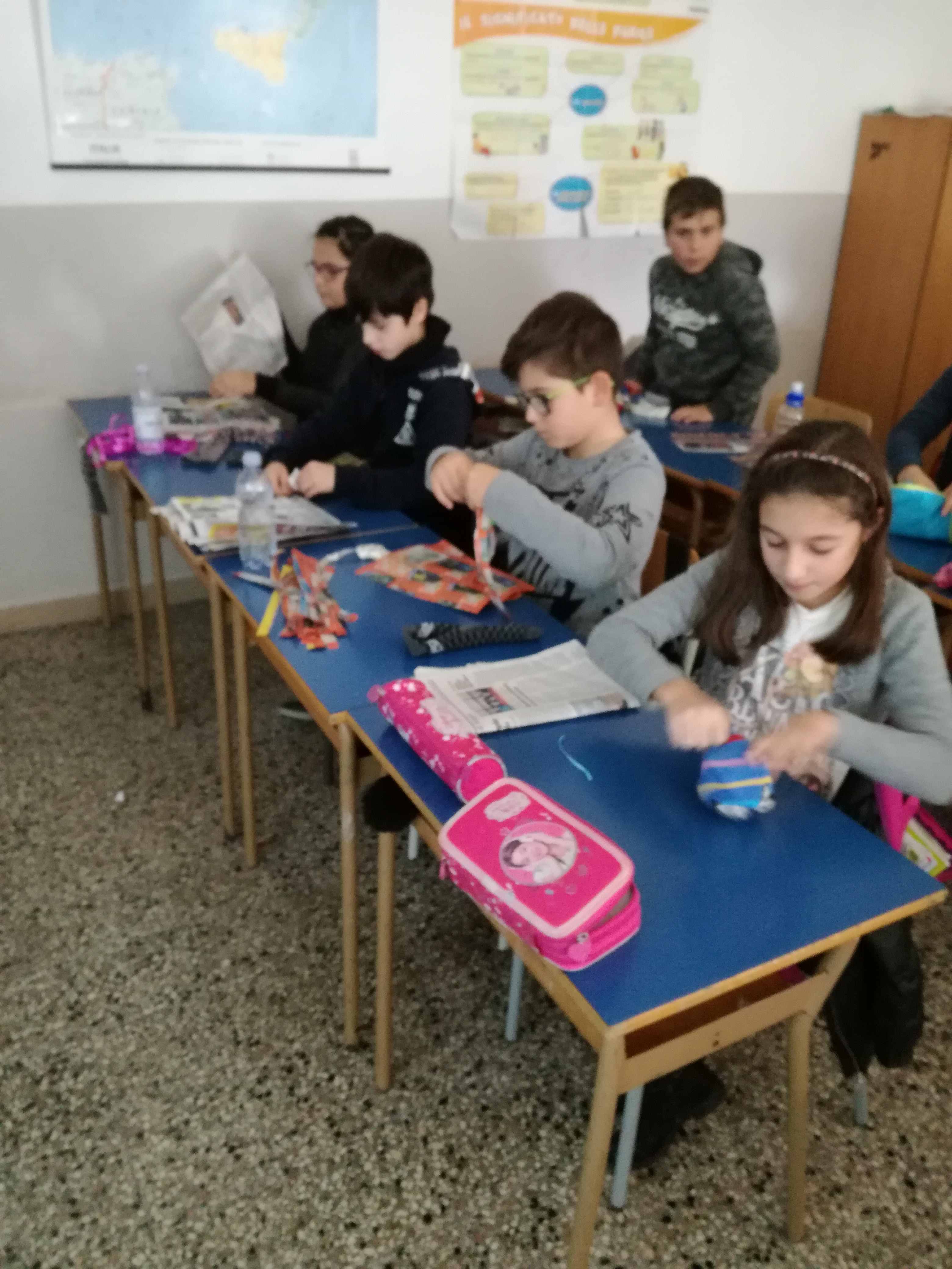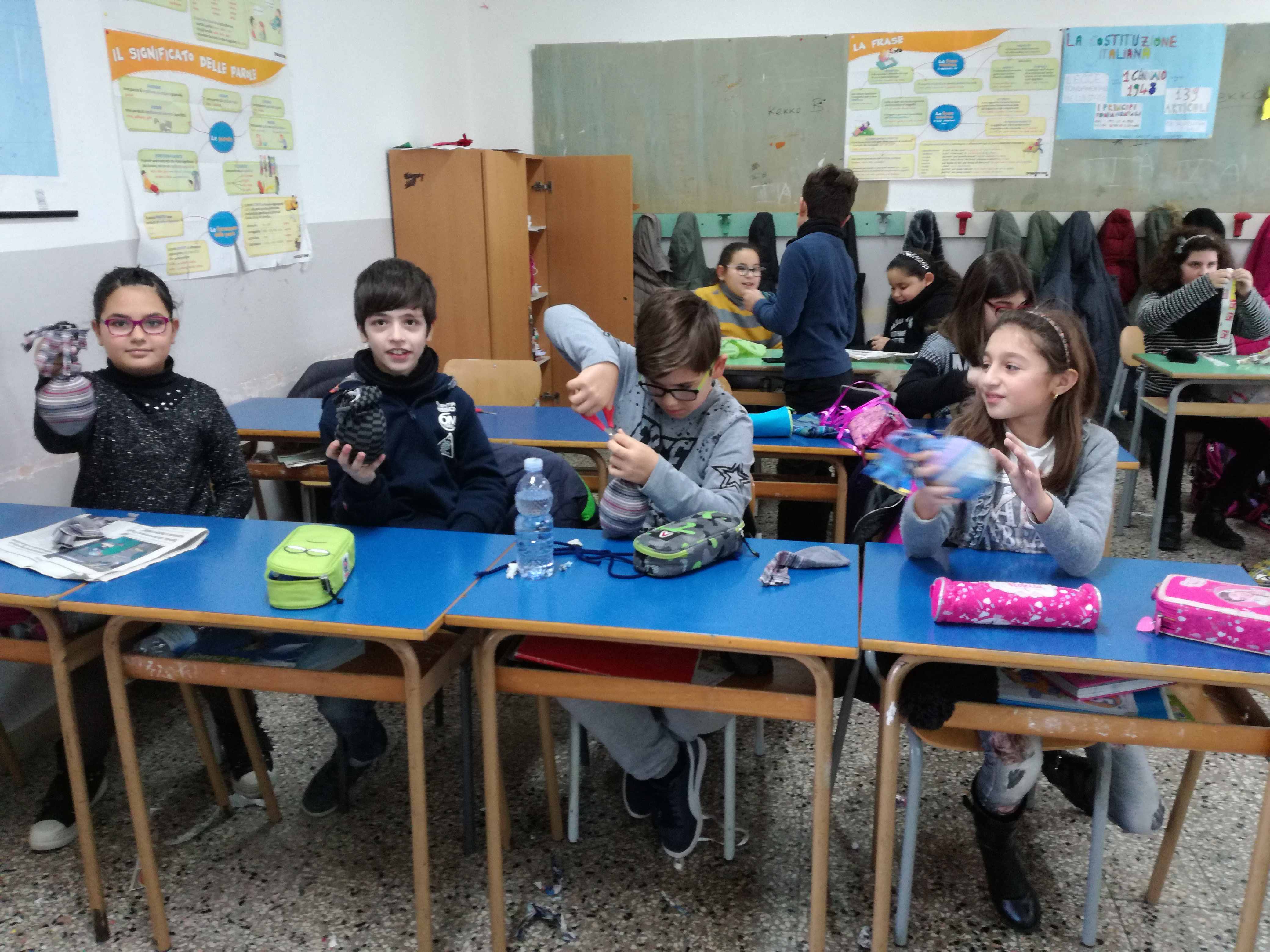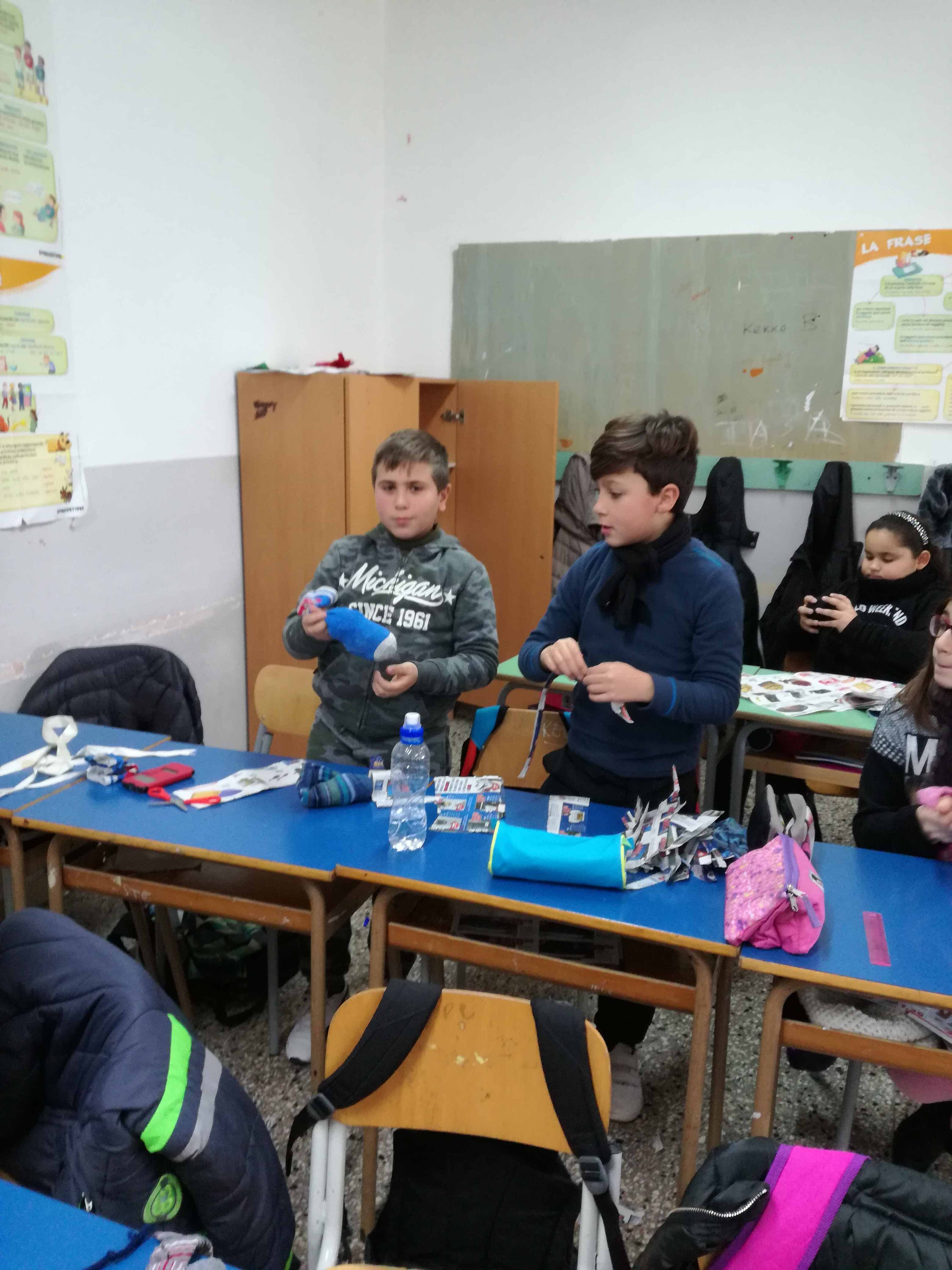 Valorizzando le valenze trasversali relative all'educazione al riciclo ed alla "seconda vita"delle cose, gli alunni della 5^ A hanno realizzato, con vecchi calzini e fogli di giornale, un attrezzo per giocare durante le lezioni di Ed. fisica: la peteka.