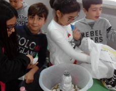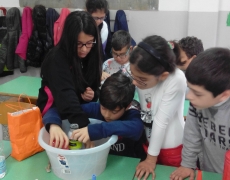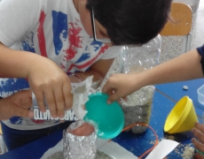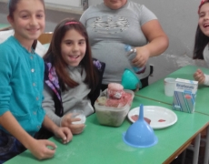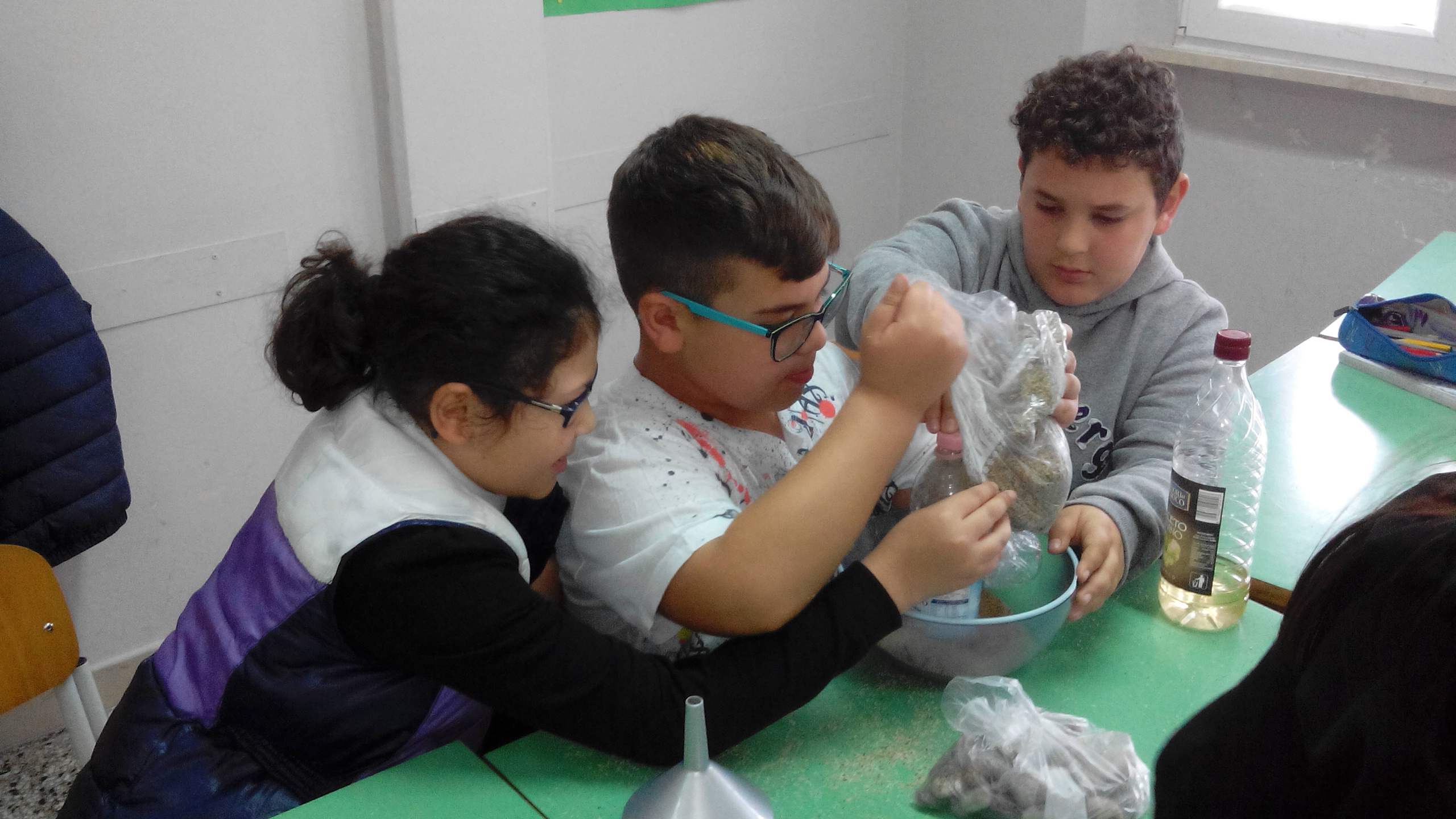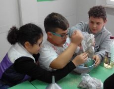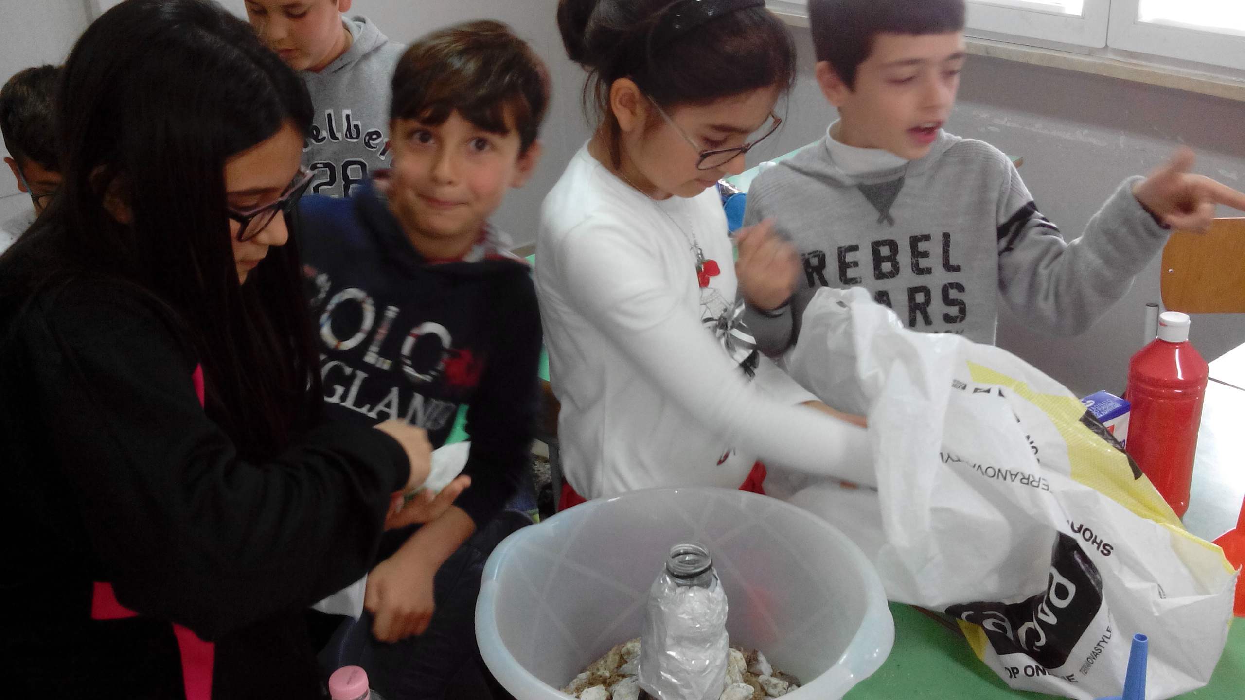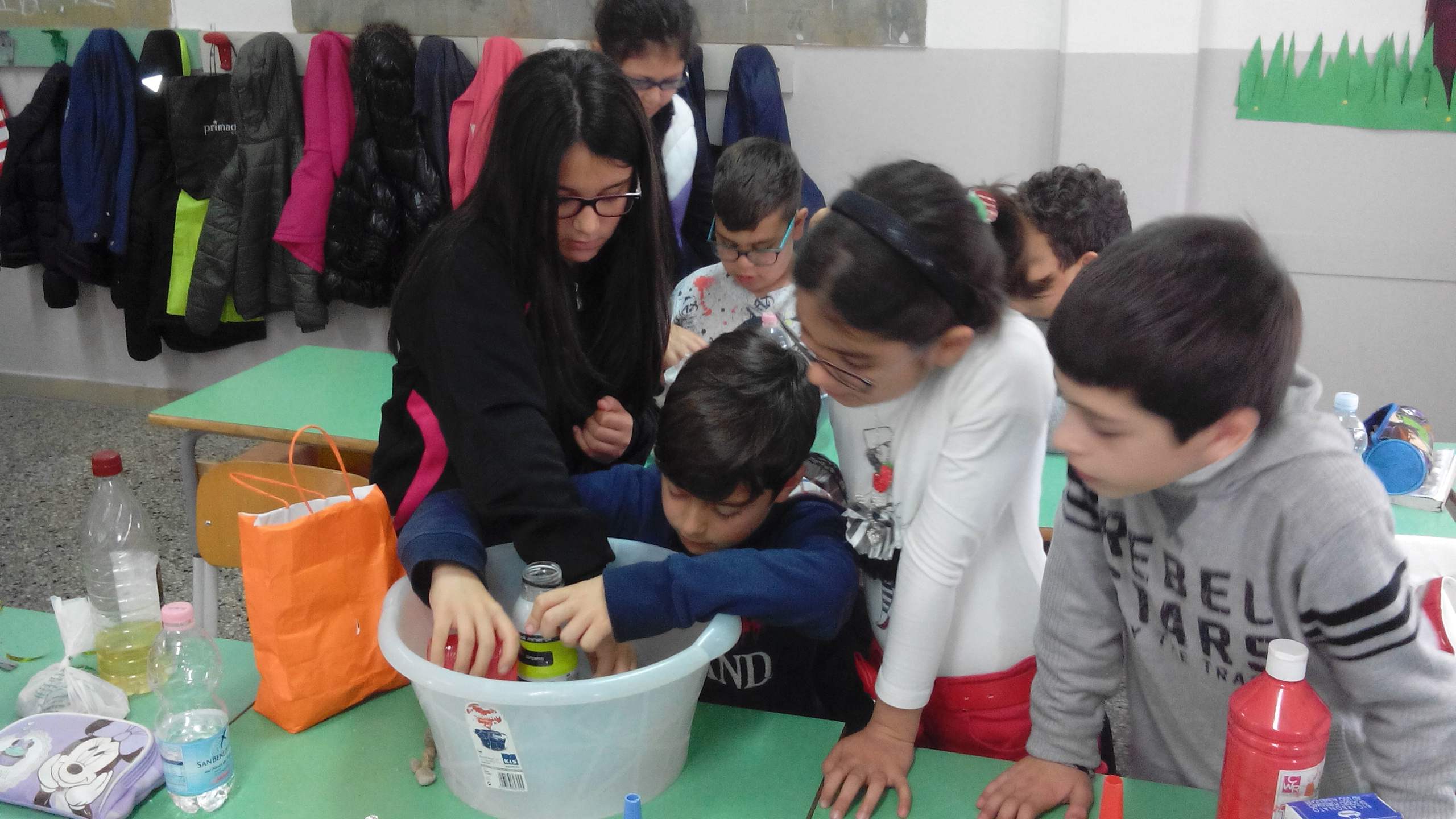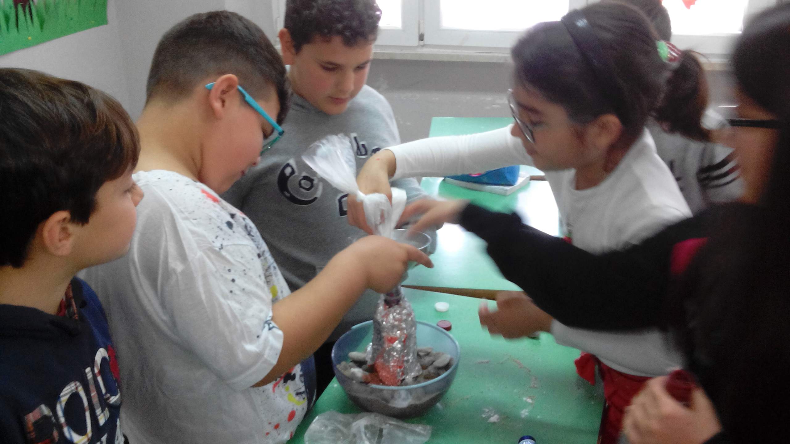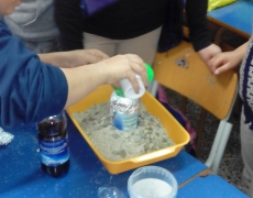 Incuriositi da queste montagne particolari, abbiamo riprodotto dei piccoli vulcani e, utilizzando semplicemente bicarbonato, aceto e colorante, gli alunni della classe IV A hanno simulato la fuoriuscita della lava dal cratere e larelativa colata lungo i fianchi del vulcano.