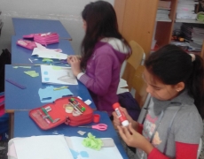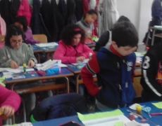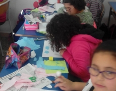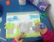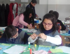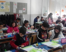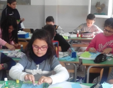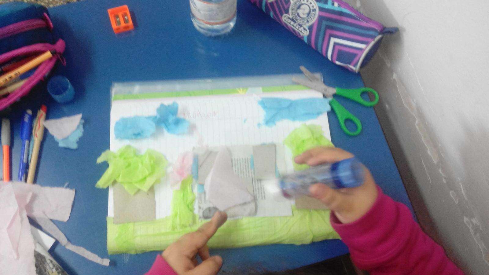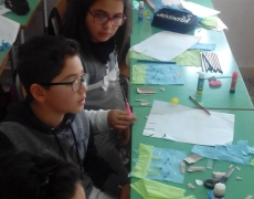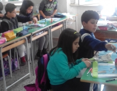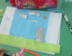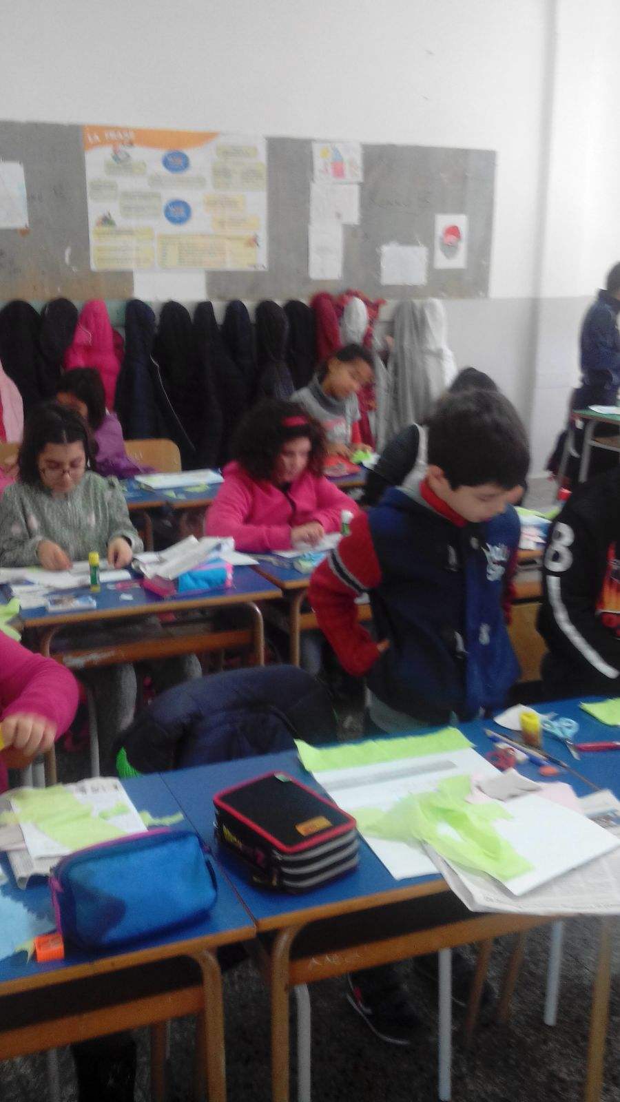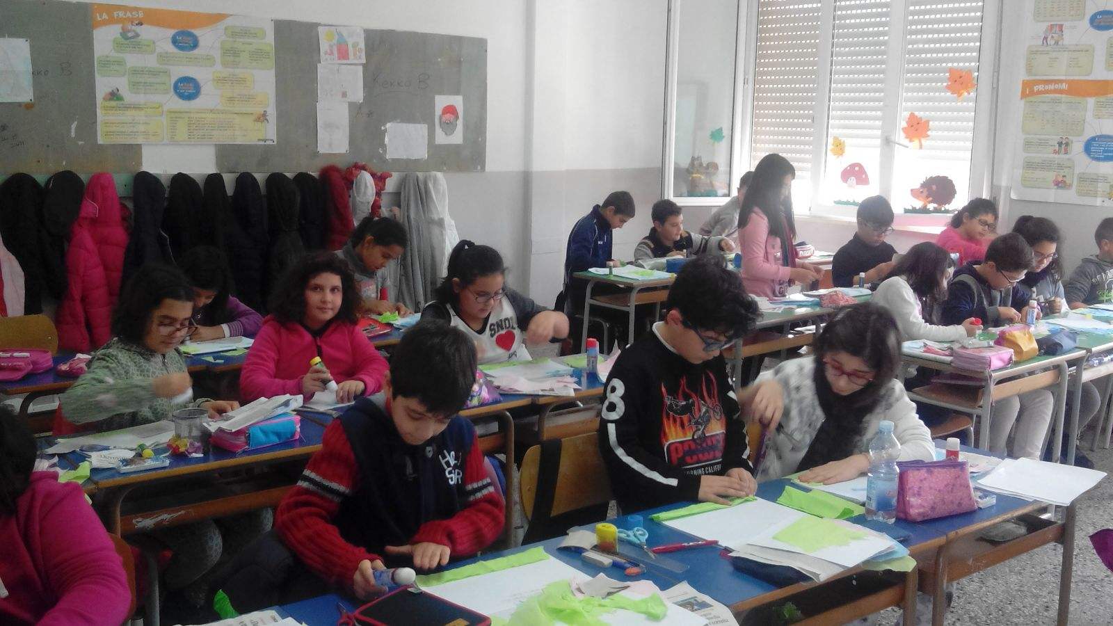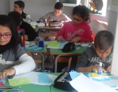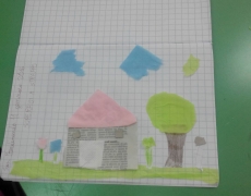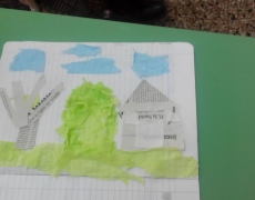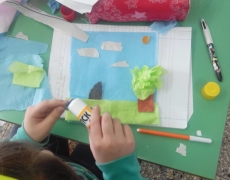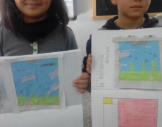 Gli alunni della 4^A, del Plesso "G.Carretta", nel laboratorio di arte e immagine, realizzano superfici a strappo per "movimentare" le linee precise del pittore Mondrian, utilizzando materiale di rIciclo: giornali, tovaglioli e cartoncini.