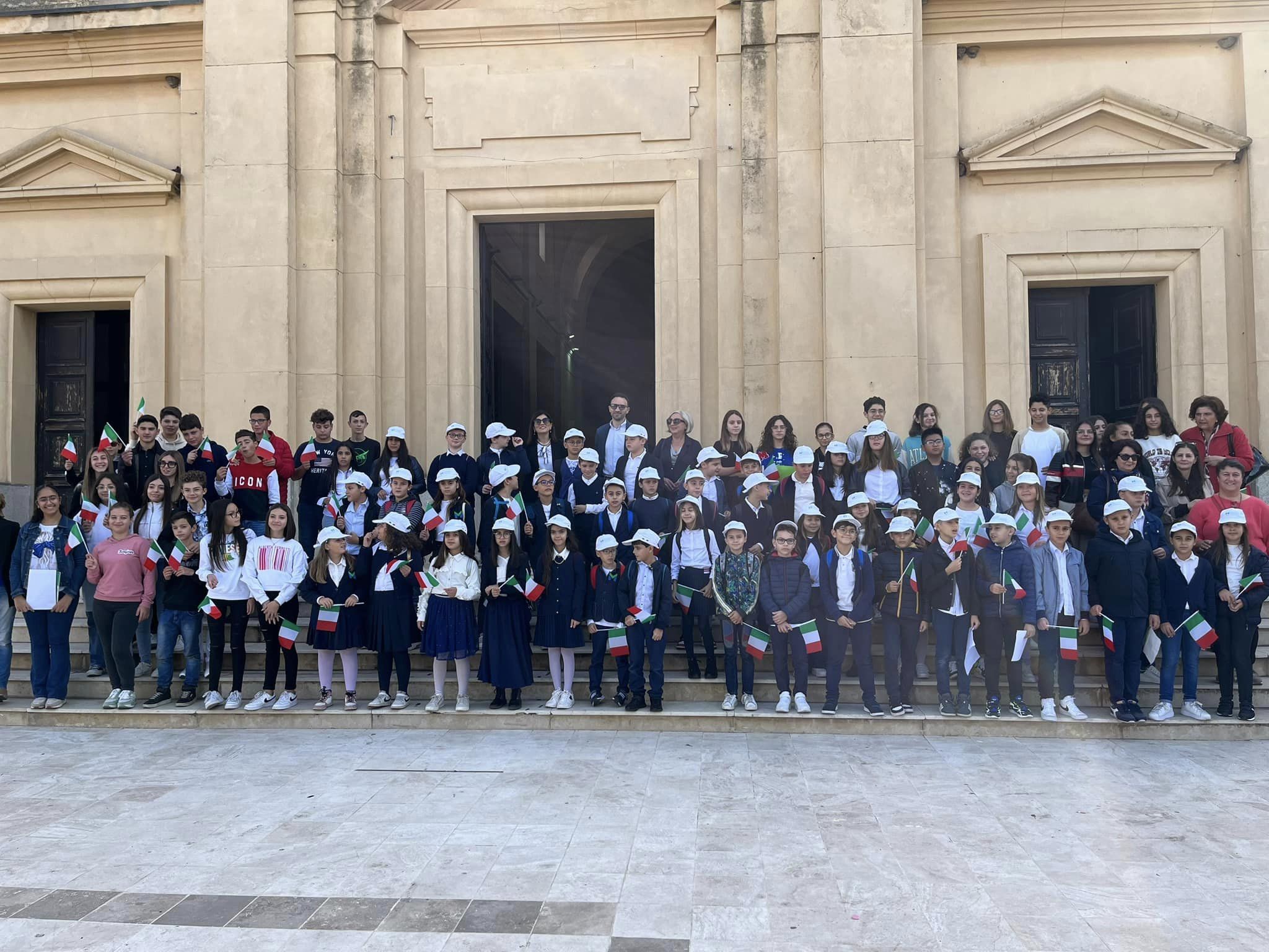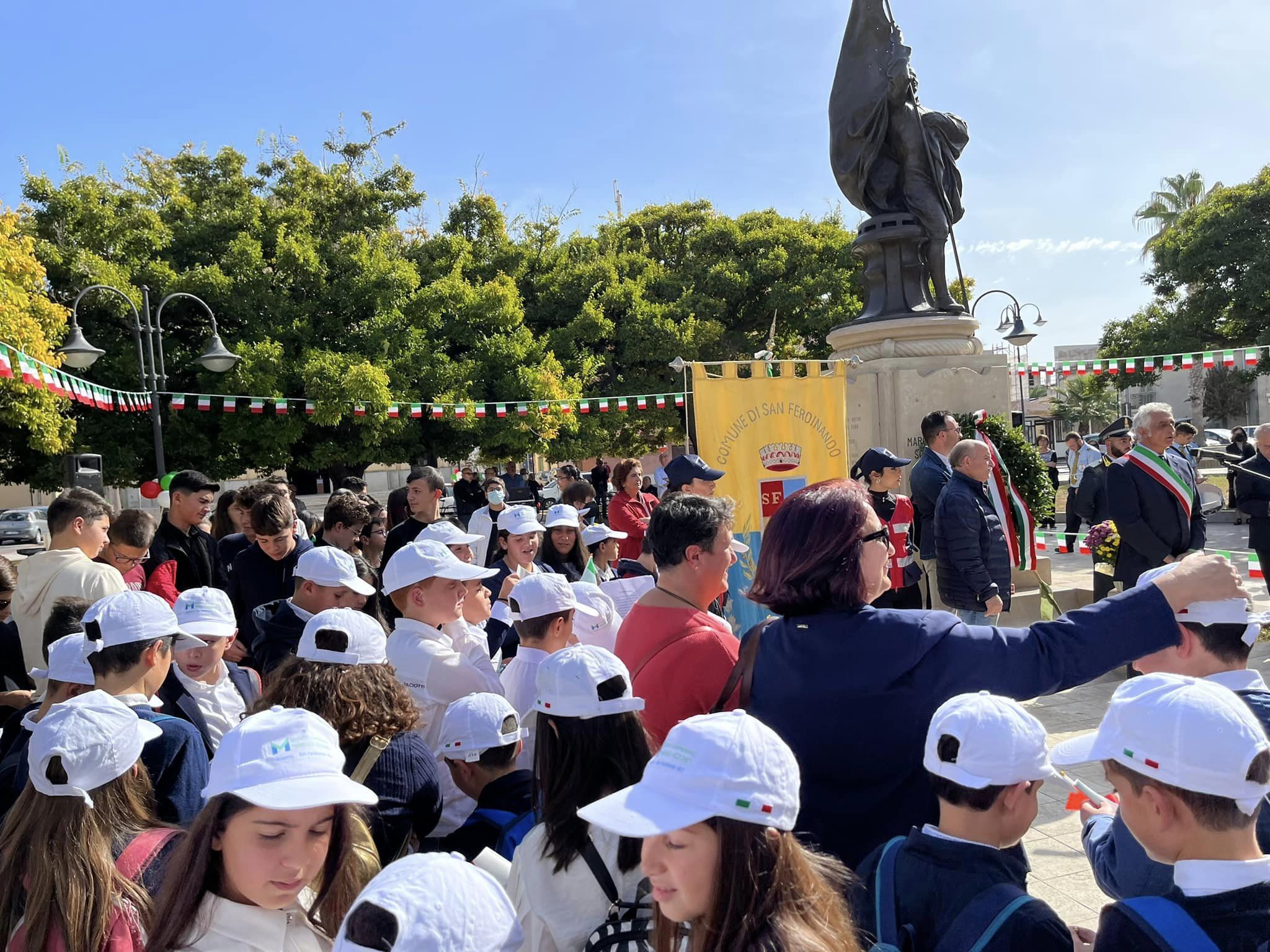 Le classi 5 A - 5 B del plesso “ G. Carretta” e la 5 del plesso " Bosco" presenti alla celebrazione del 4 Novembre , per ricordare i nostri patrioti; ricordare i giovani coraggiosi che un secolo e mezzo fa combatterono per unire questa antica nazione, la nostra patria, per conquistare una realtà nella quale riconoscersi e vivere in libertà; ricordare i caduti per il tricolore. Il tricolore non è semplice insegna di Stato ma rappresenta i nostri più alti valori di Pace e Libertà.