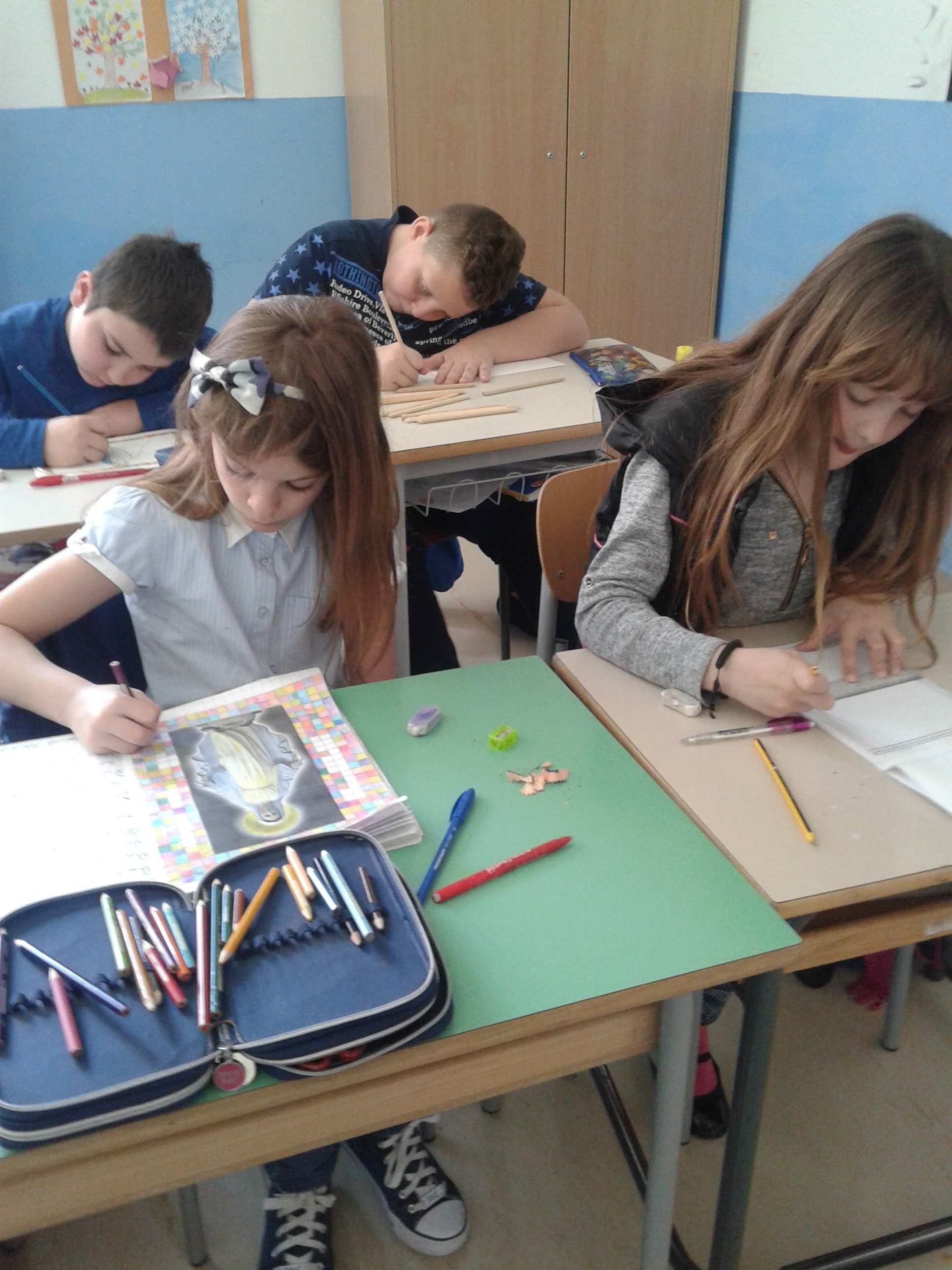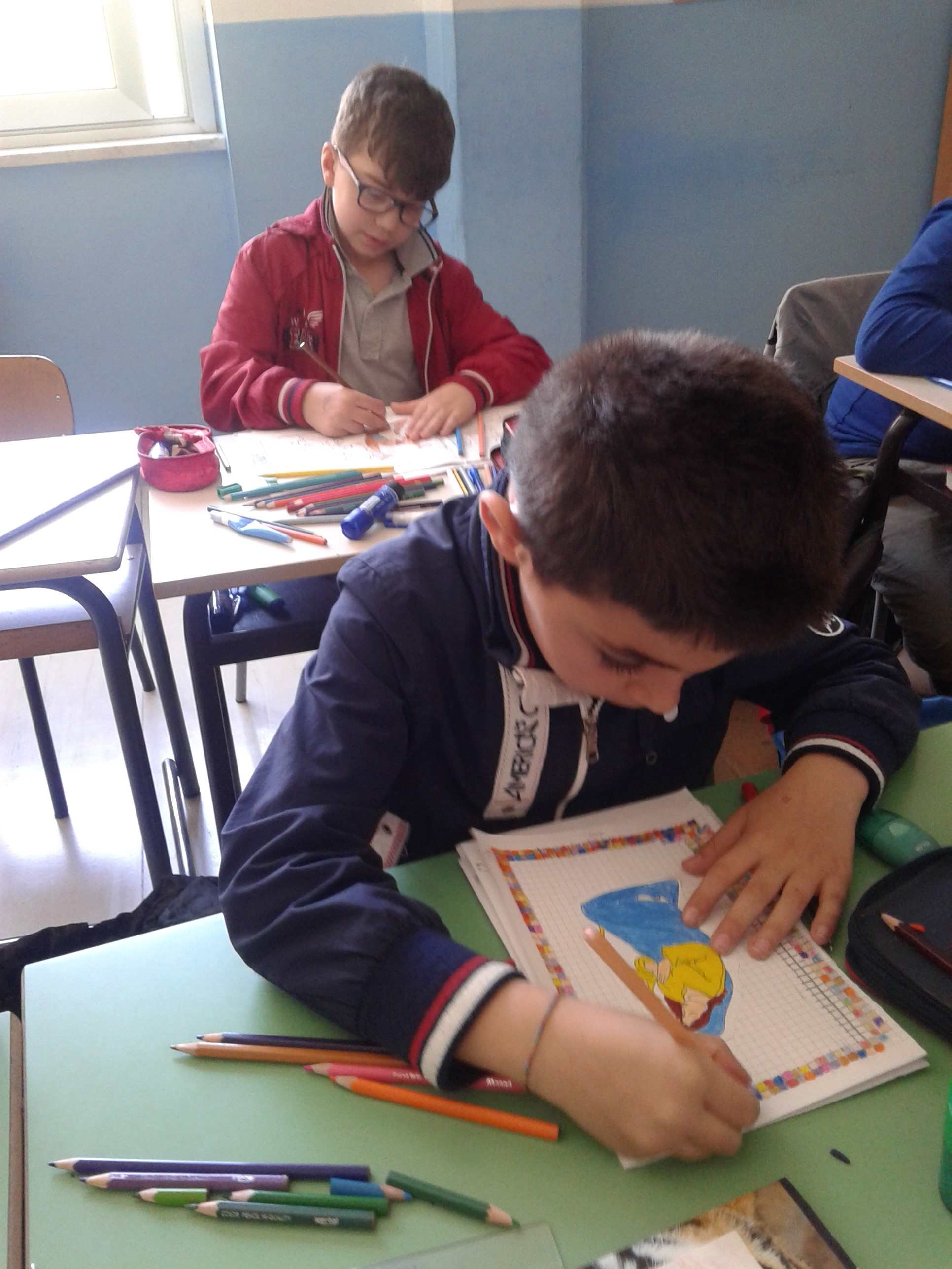 Durante le lezioni di Religione il mosaico ha trovato ampio spazio e assenso da parte degli allievi che,si sono applicati utilizzando piccoli album vari soggetti e tecniche basilari di disegno.