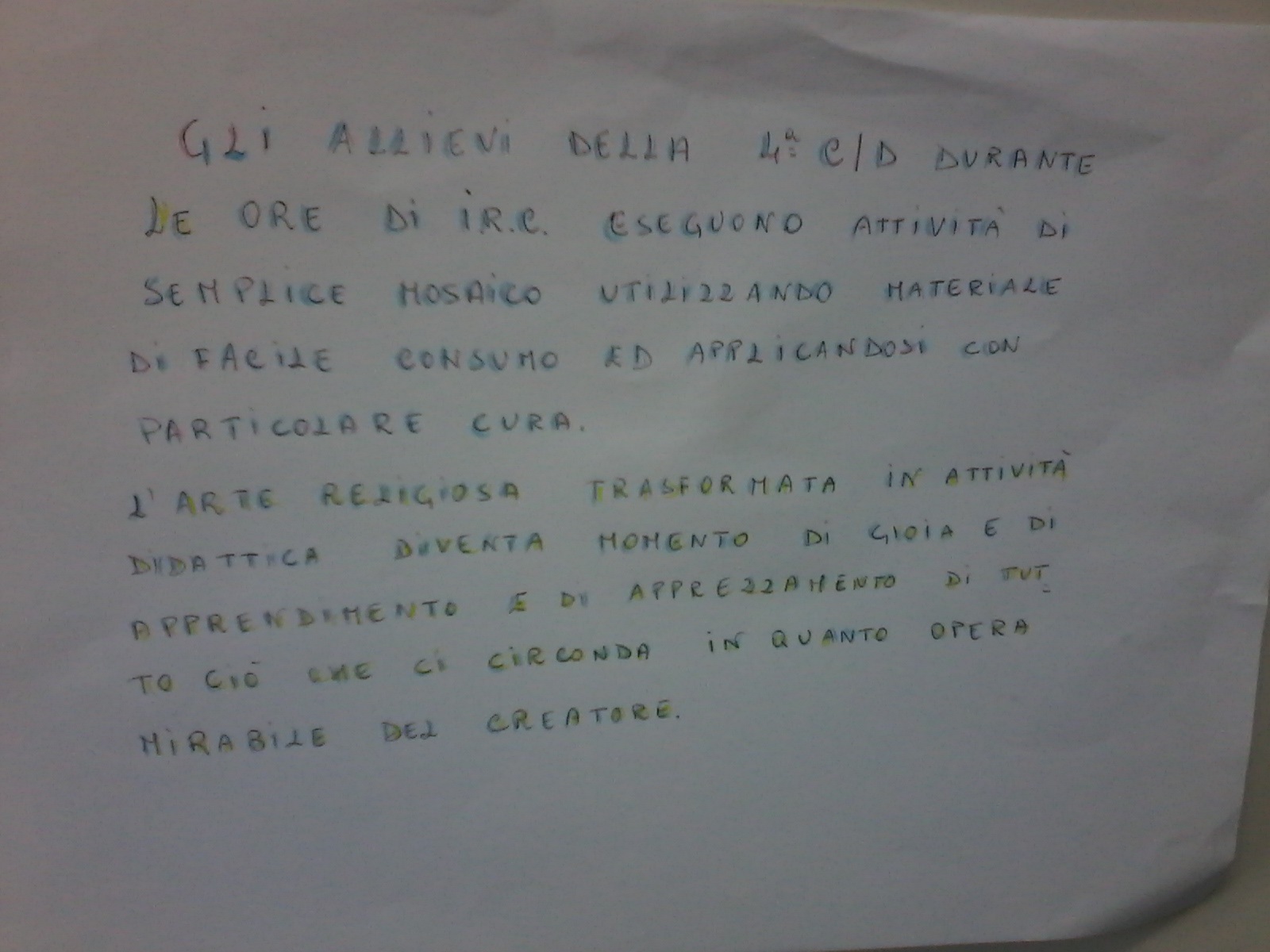 I bambini delle classi 4C/D hanno realizzato attività di semplice mosaico
