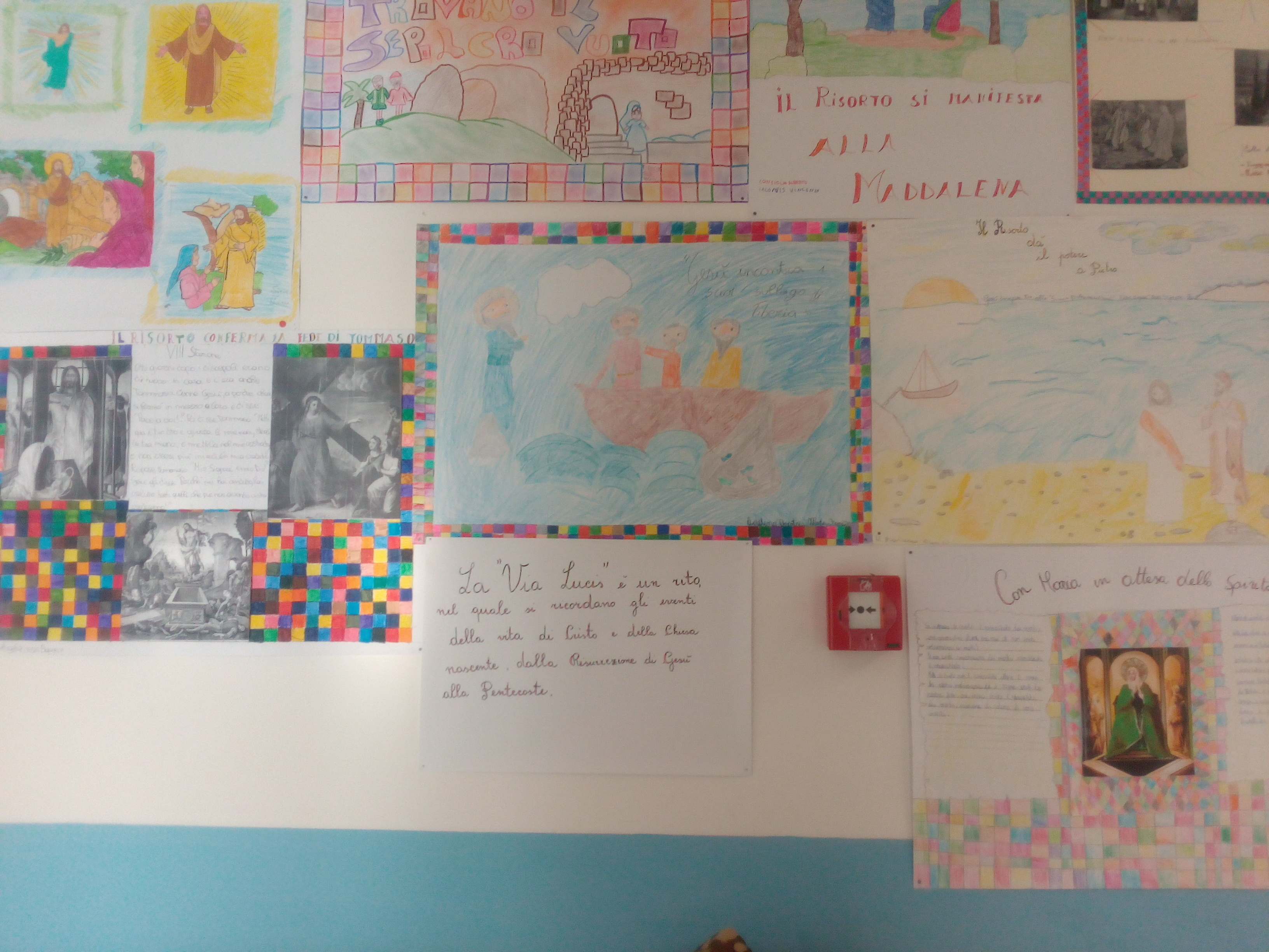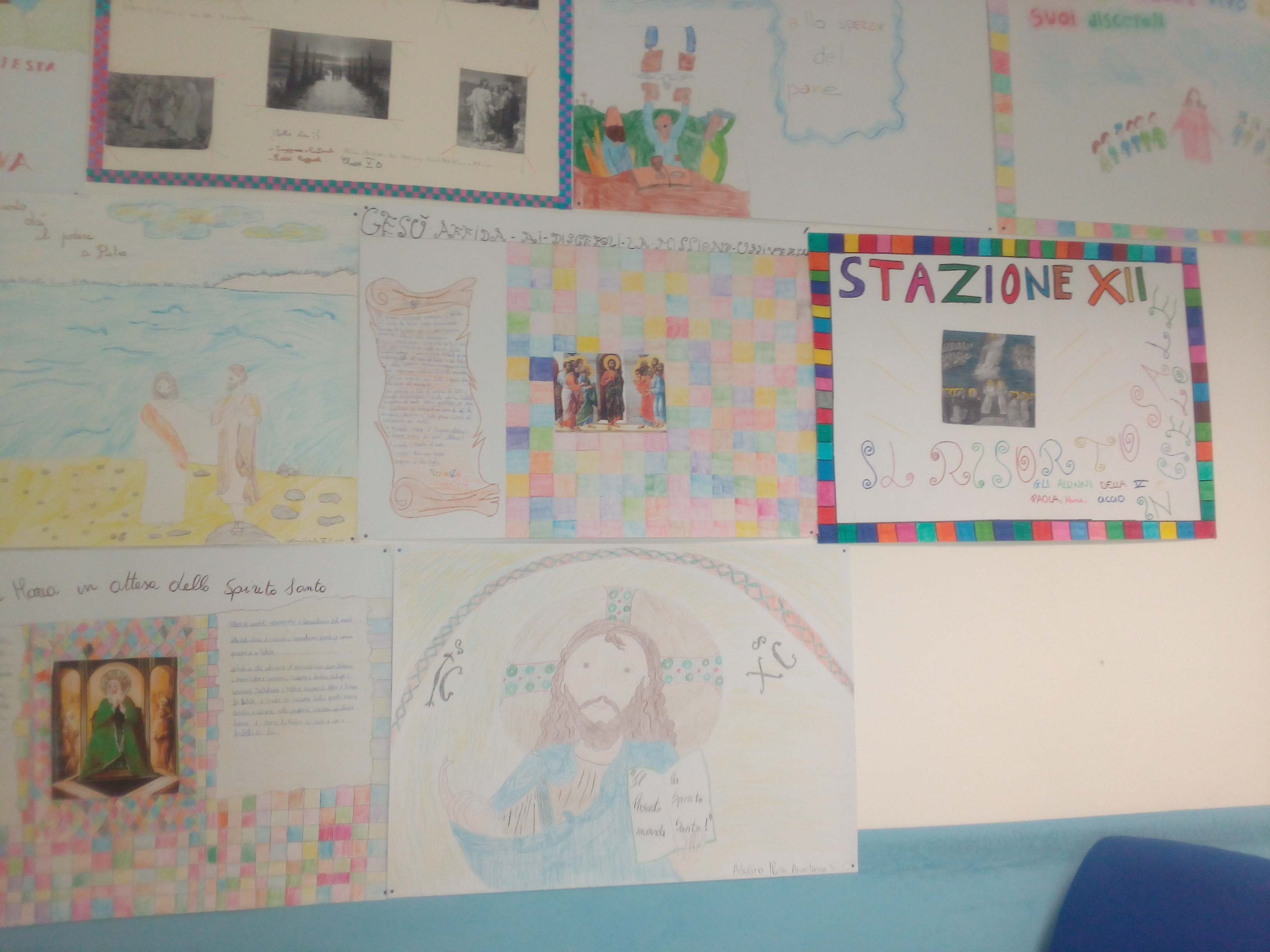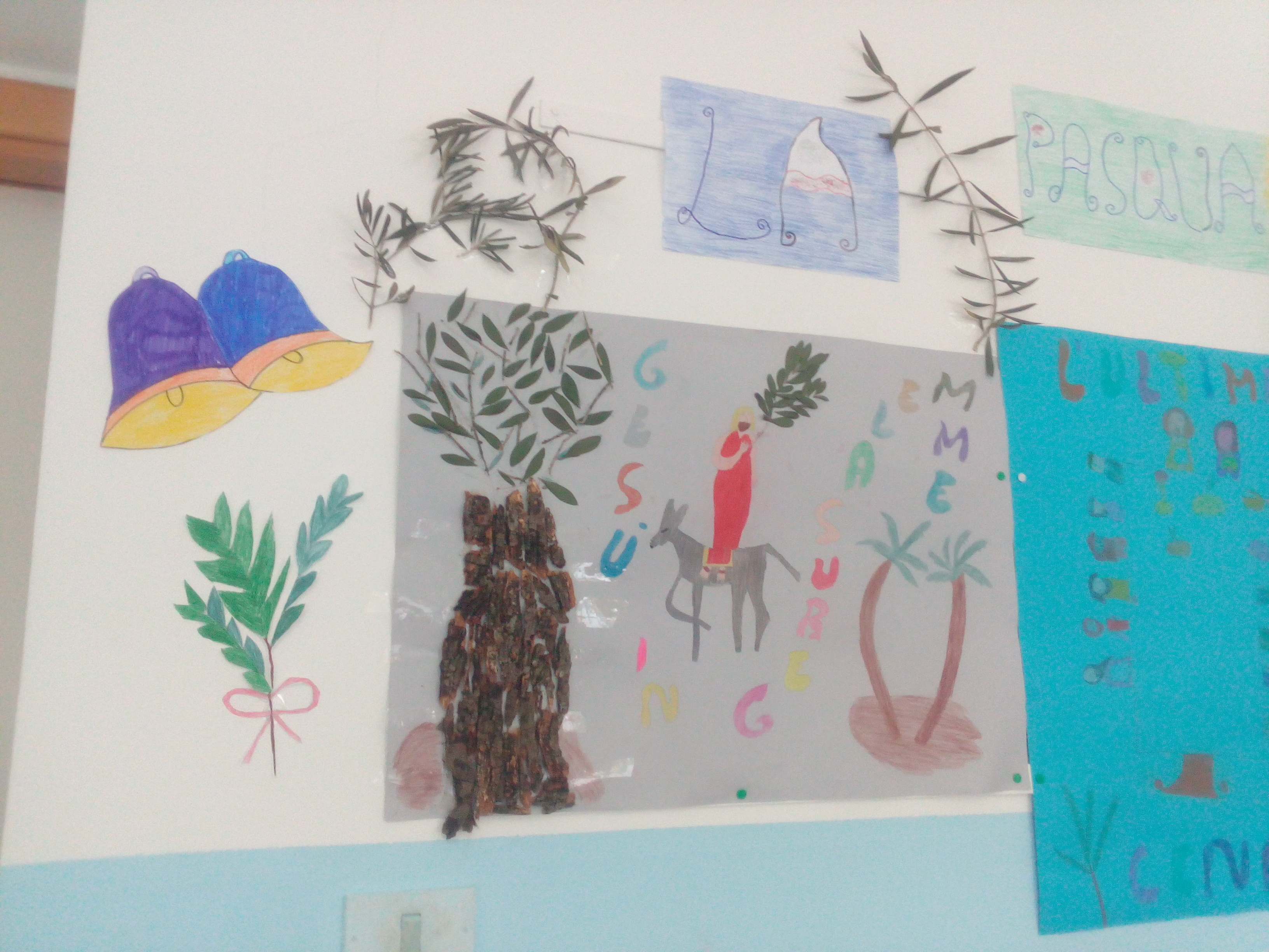 La classe 5 del plesso "Bosco" ha realizzato dei cartelloni riguardanti la Pasqua Cristiana con l'ins.De Vivo Lucia, utilizzando elementi naturali quali:cortecce di legno,bastoncini di legno,rametti d'ulivo,pietre colorate,foglie,che rispecchiano il loro territorio circondato dal verde e dalla natura.La risurrezione è posta al centro dei vari percorsi pasquali per l'importanza fondamentale che assume.