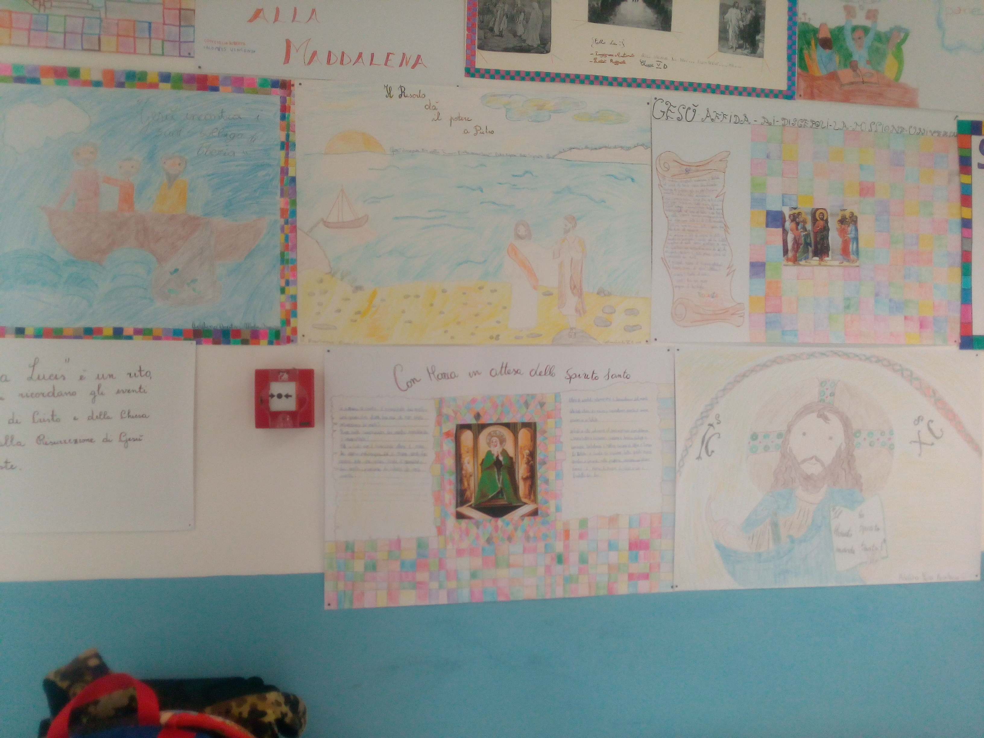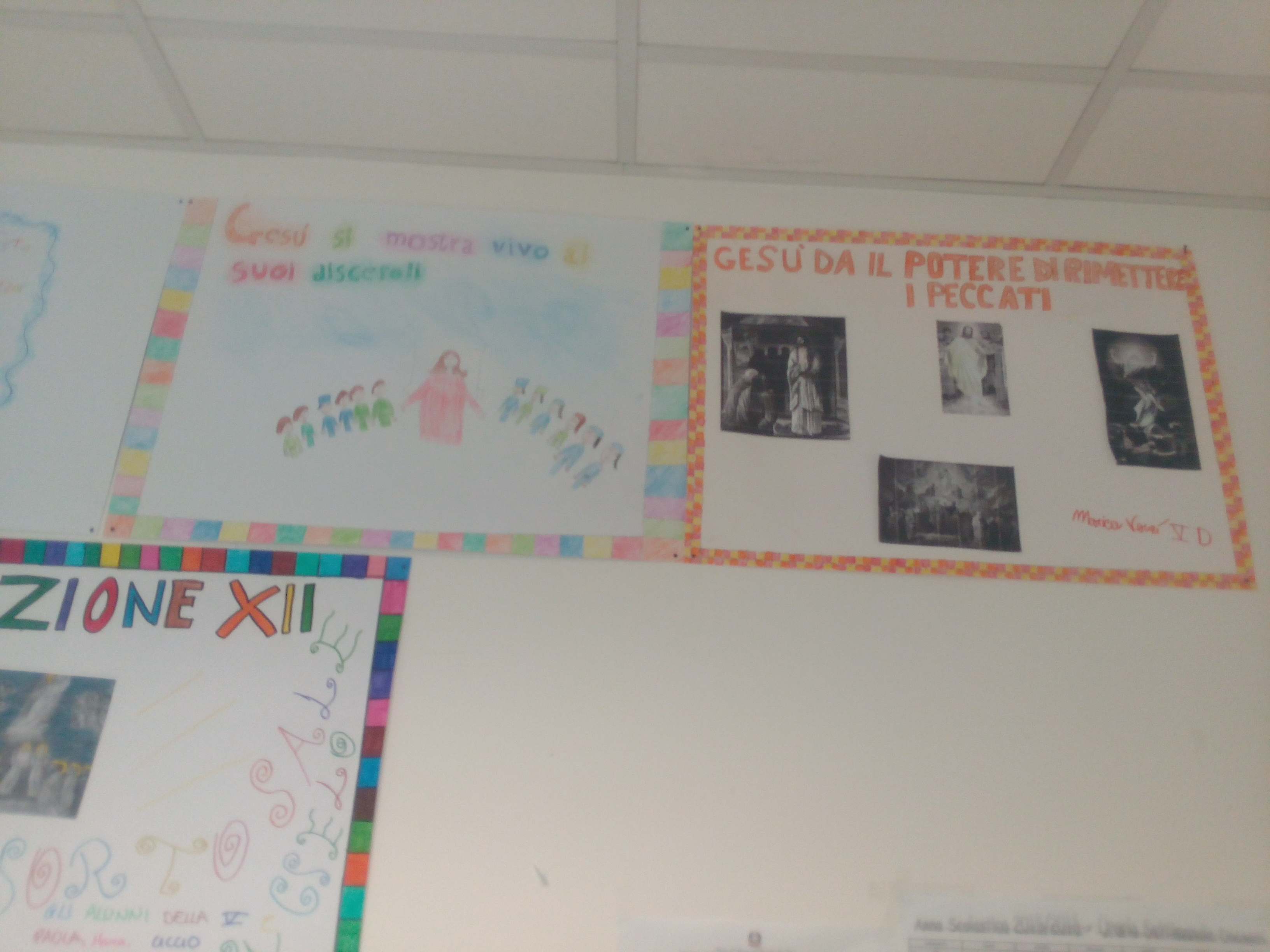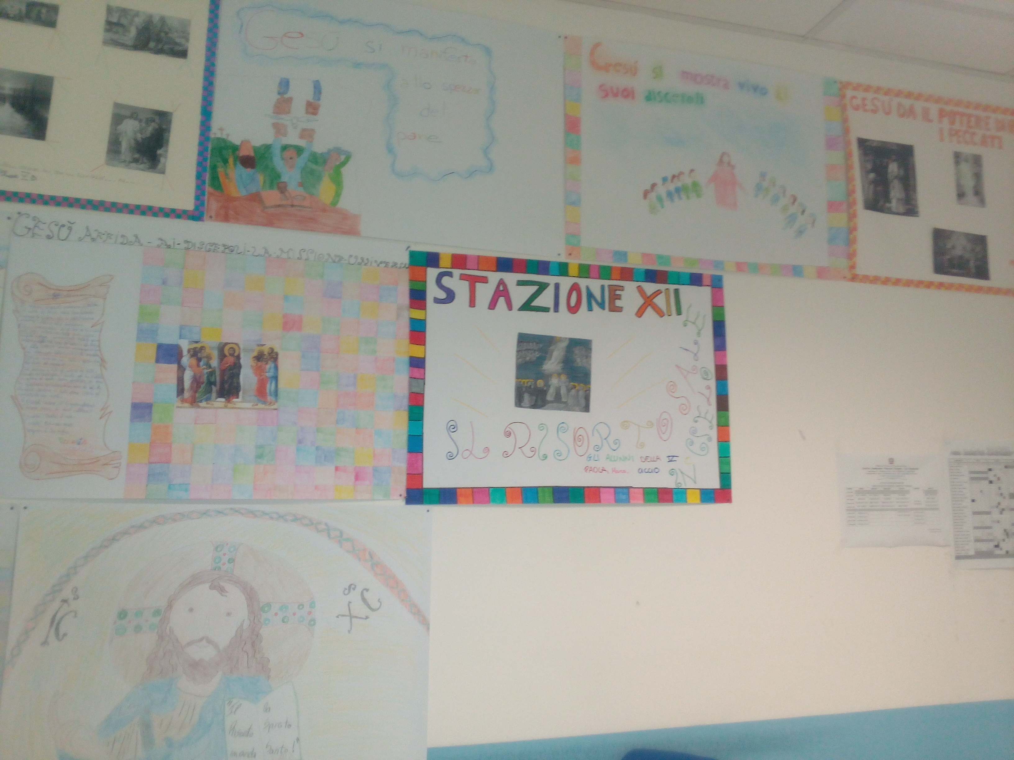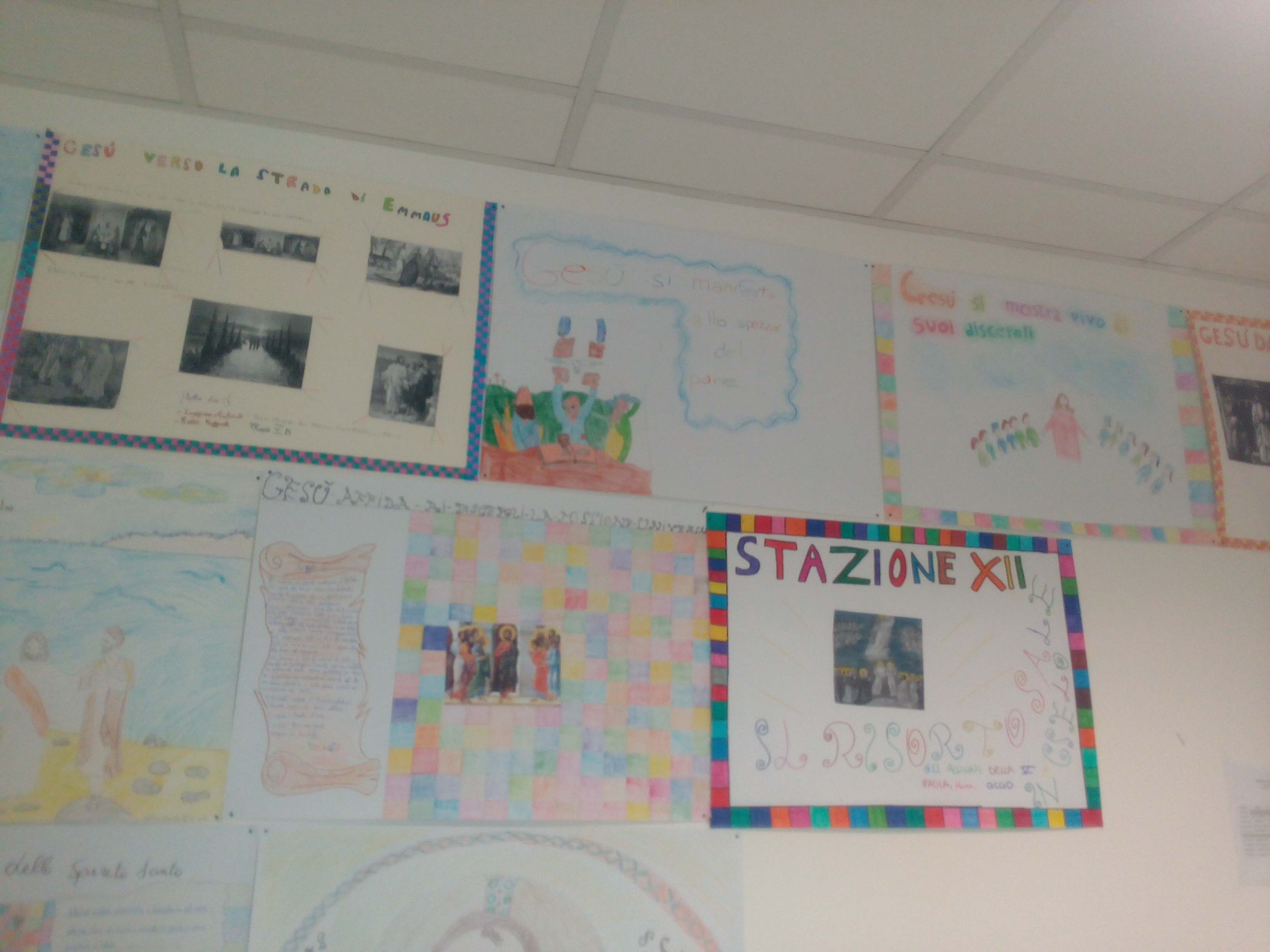 La classe 5 del plesso "Bosco" ha realizzato dei cartelloni riguardanti la Pasqua Cristiana con l'ins.De Vivo Lucia, utilizzando elementi naturali quali:cortecce di legno,bastoncini di legno,rametti d'ulivo,pietre colorate,foglie,che rispecchiano il loro territorio circondato dal verde e dalla natura.La risurrezione è posta al centro dei vari percorsi pasquali per l'importanza fondamentale che assume.