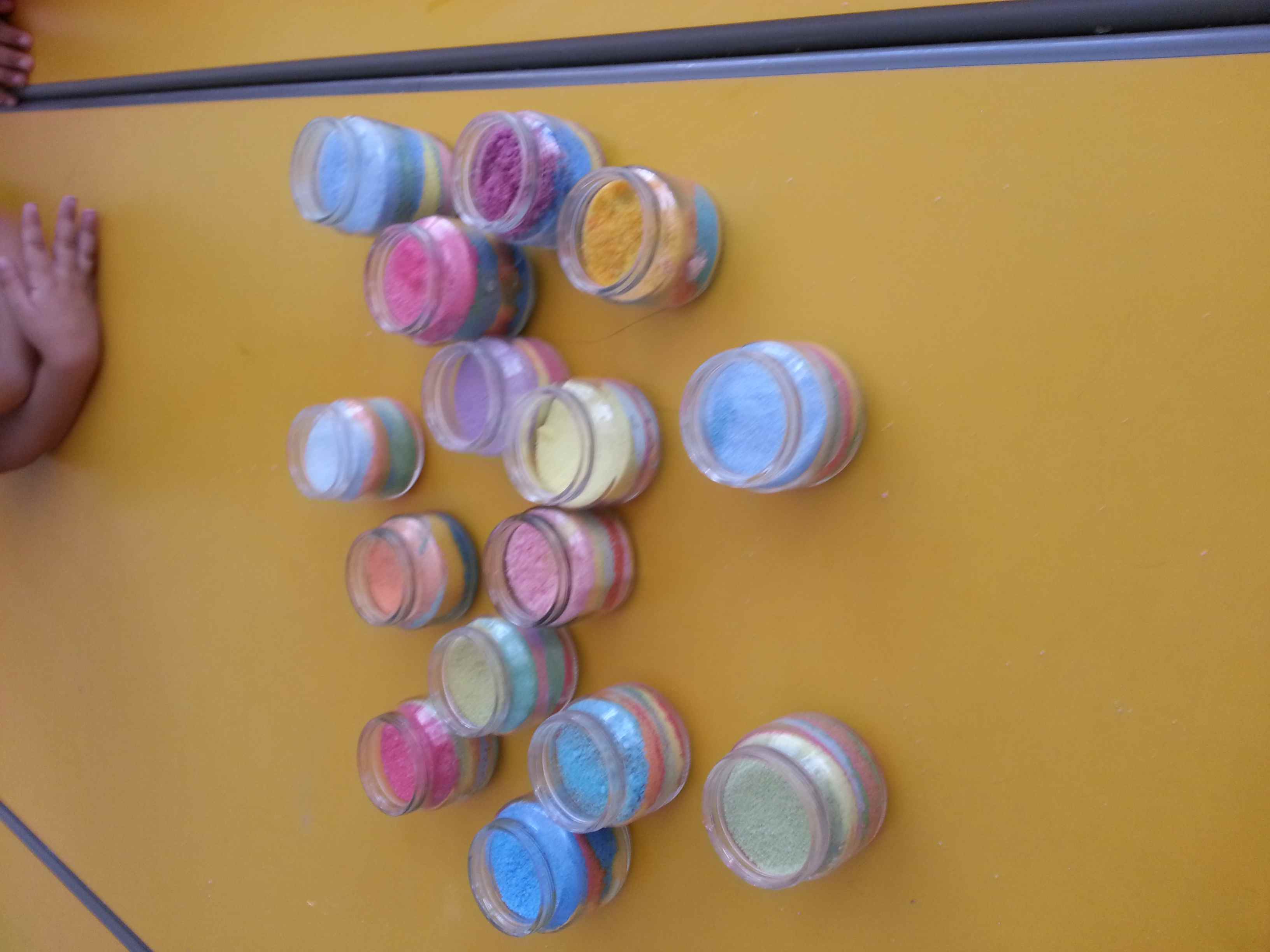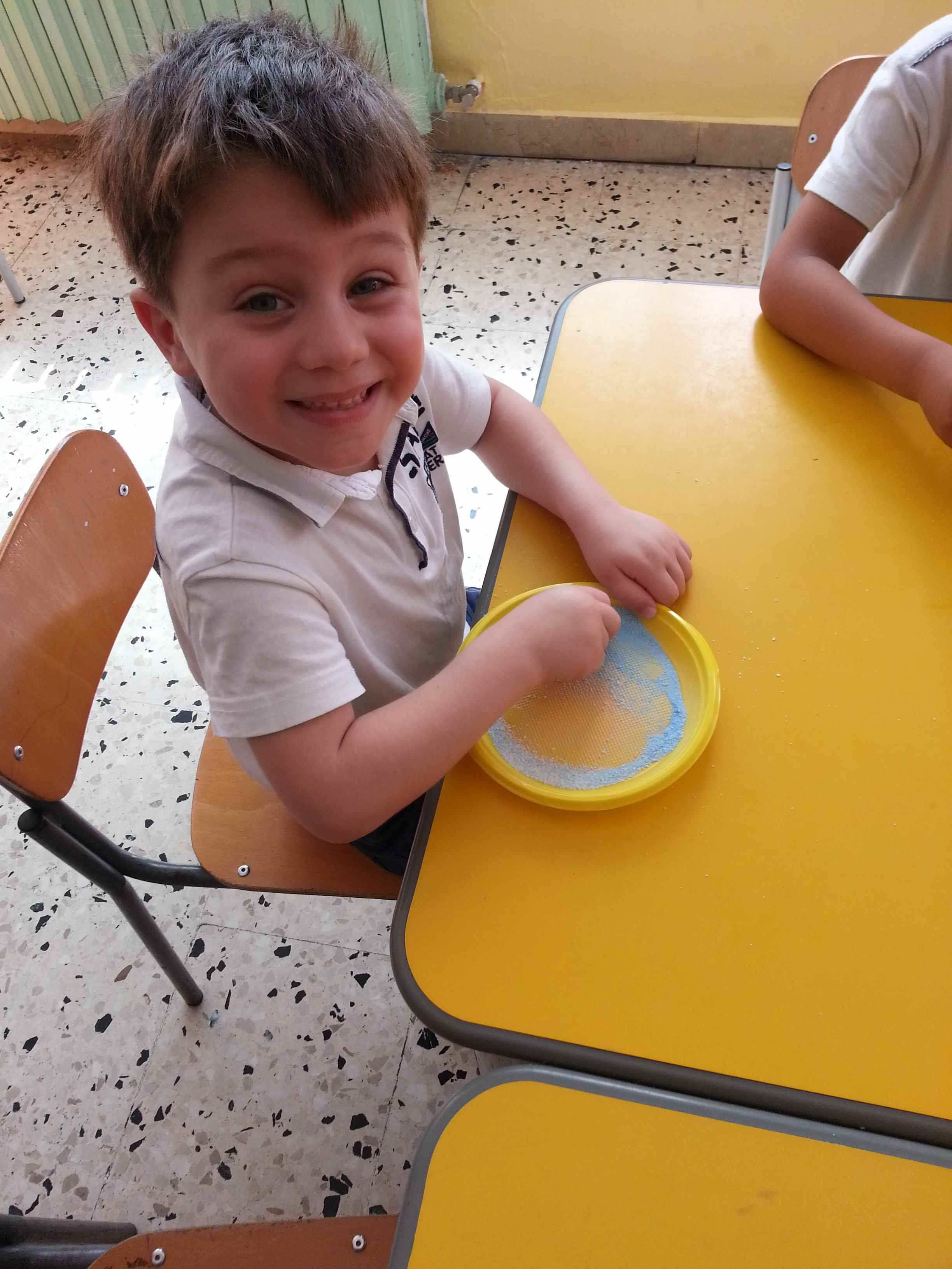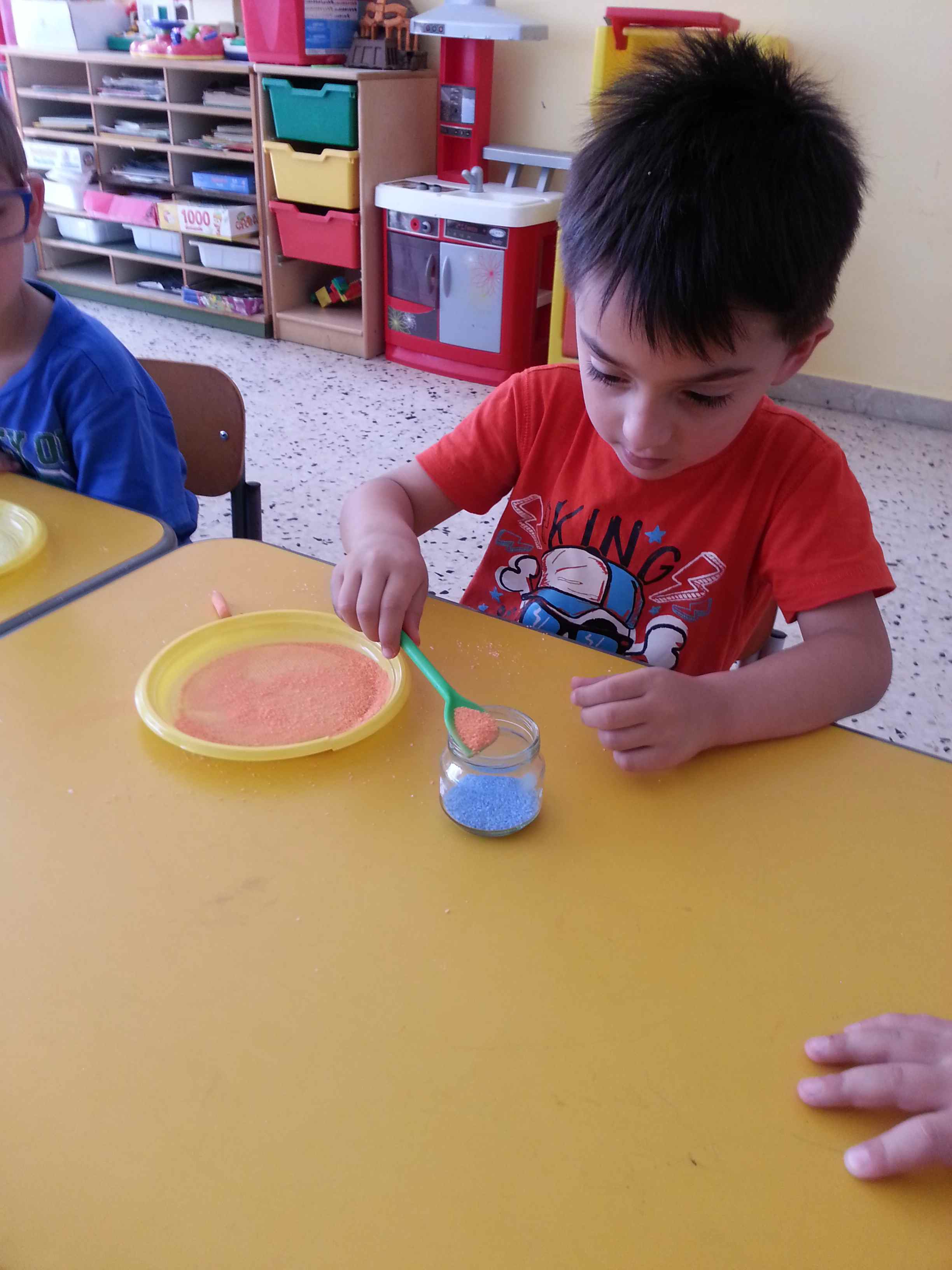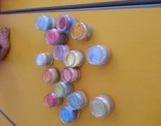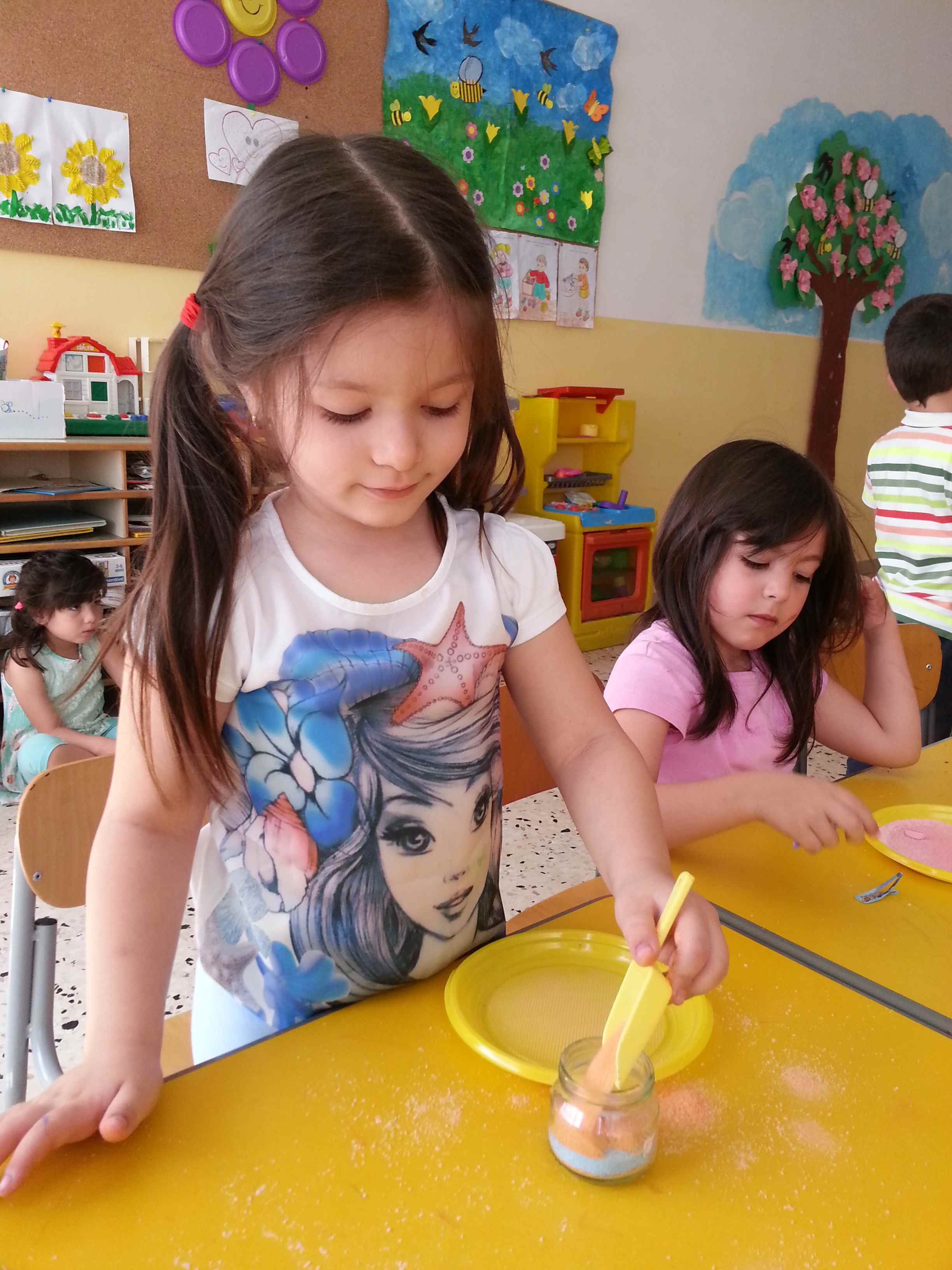 I bambini della II B si divertono a creare vasetti di sale colorato secondo una tecnica semplice e divertente