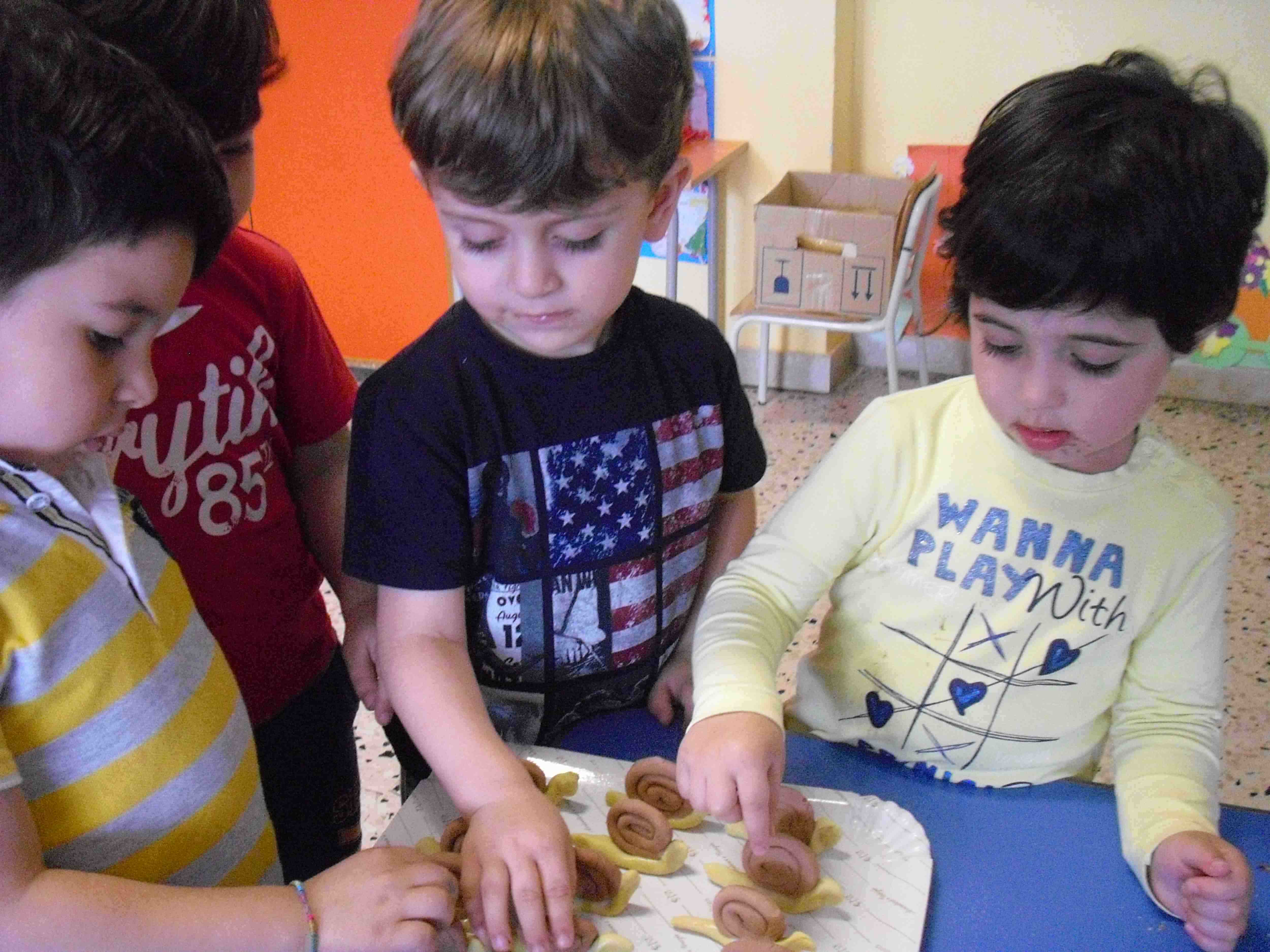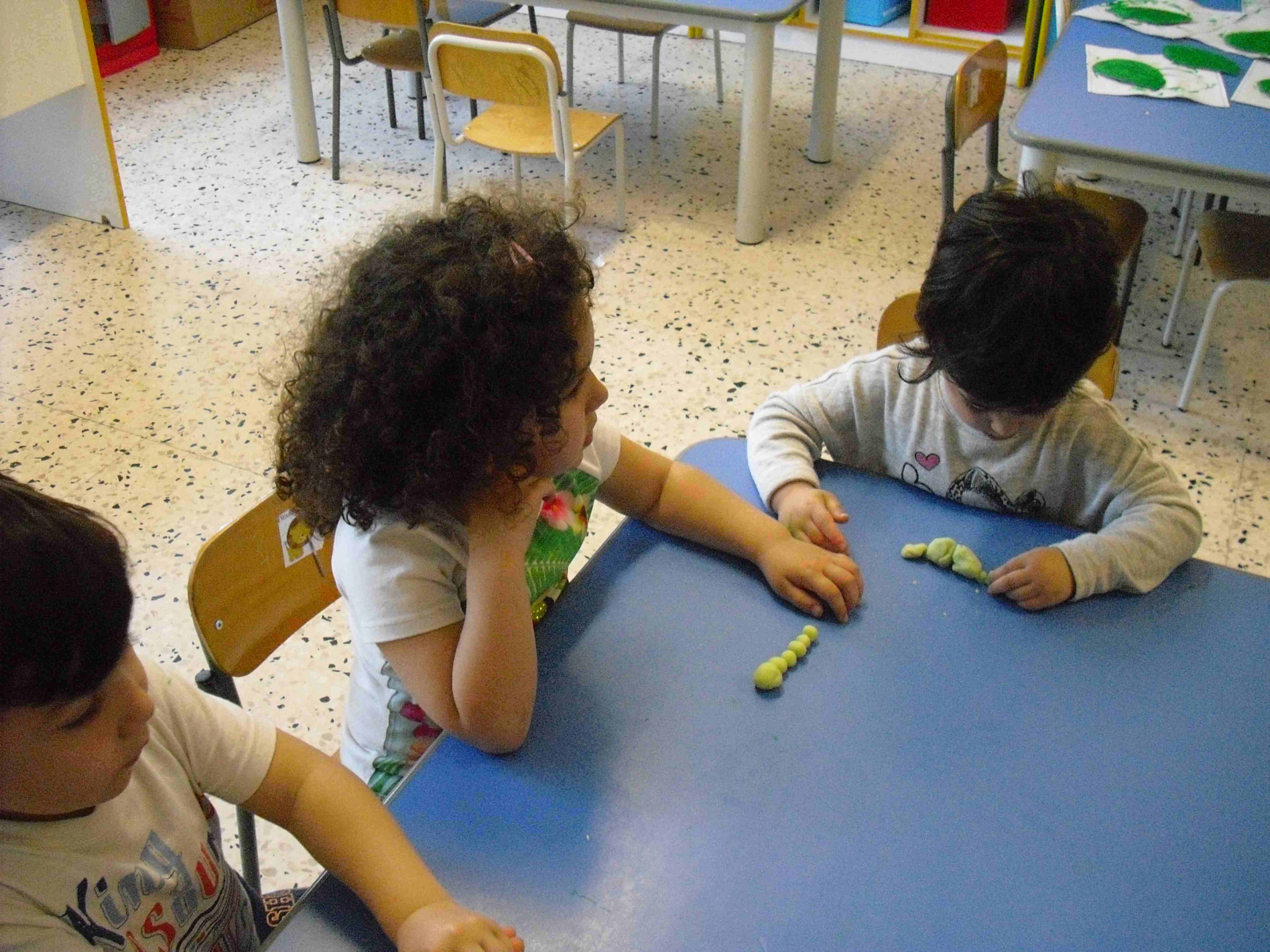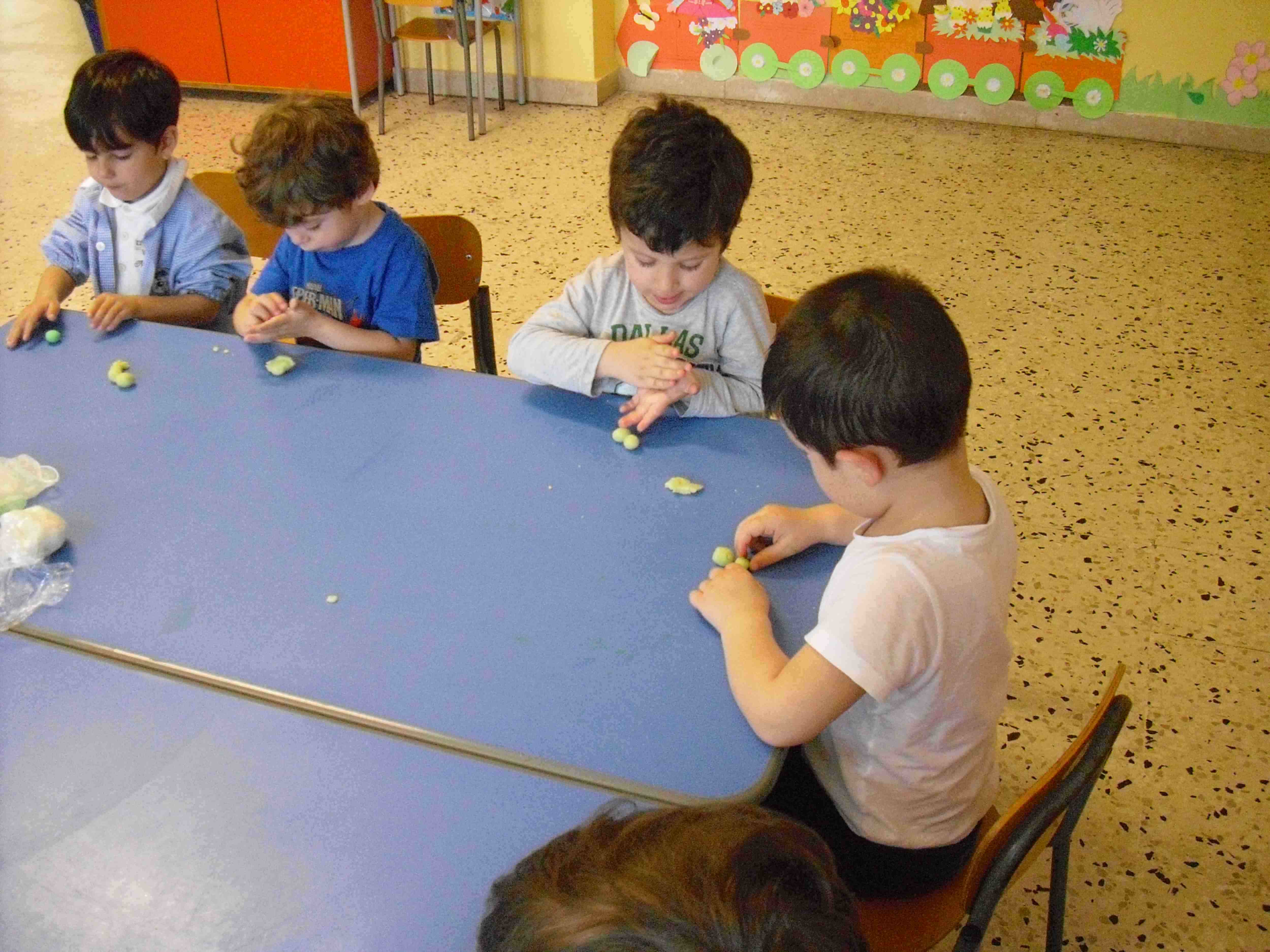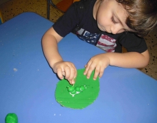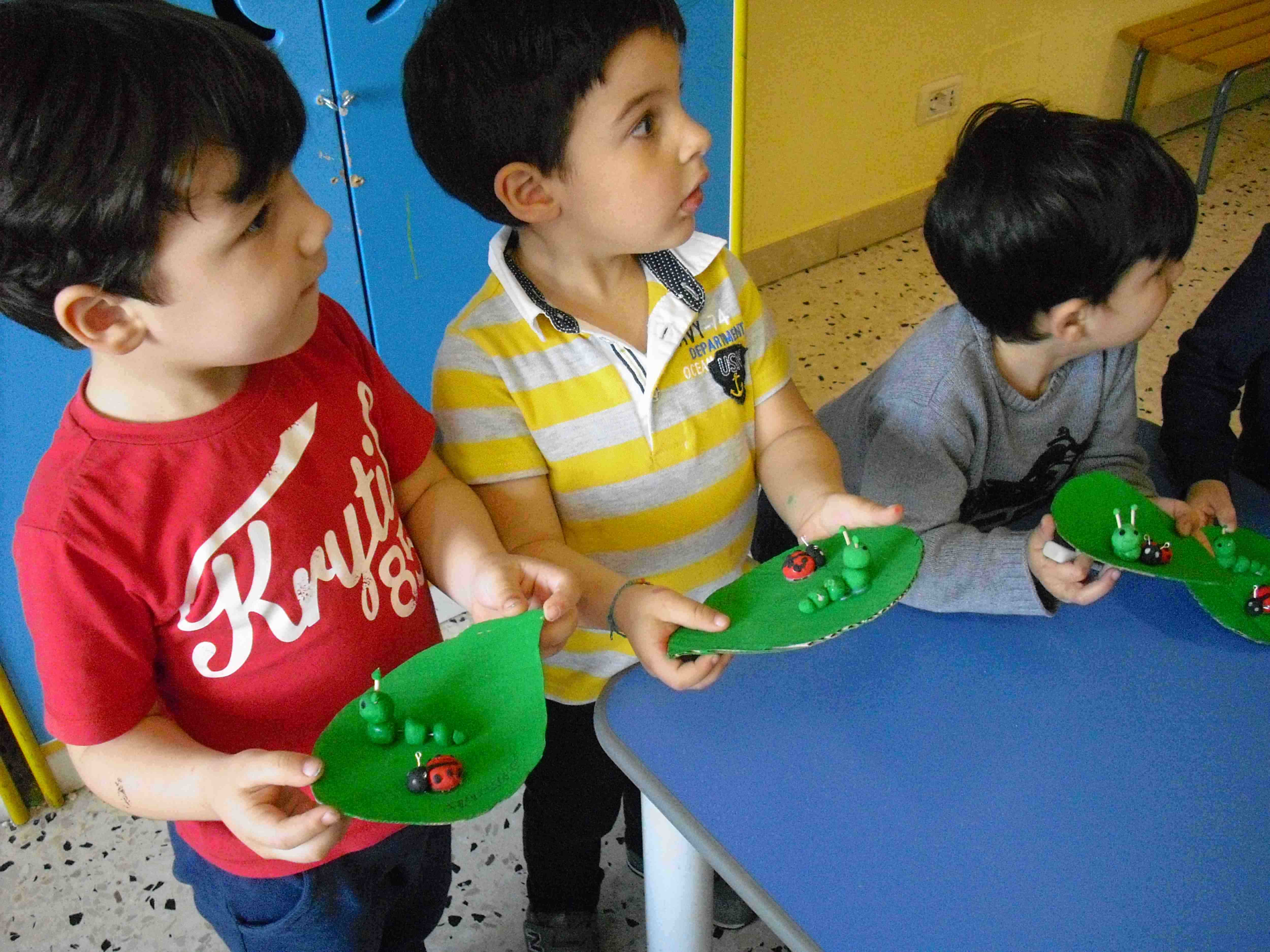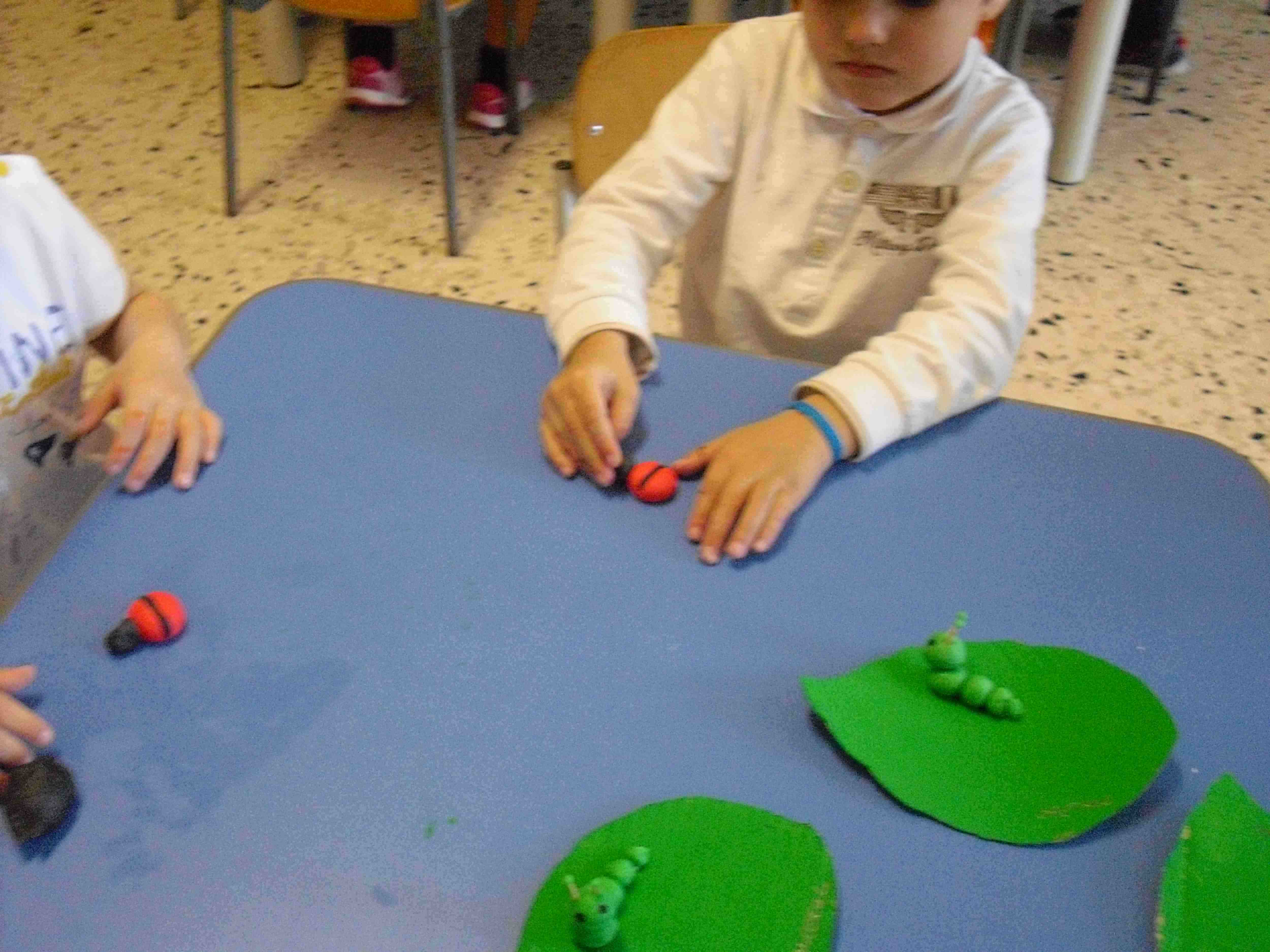 I bambini della sezione 1° B tutti insieme hanno giocato con la pasta modellabile e creato i loro animaletti del prato: coccinelle, bruchi e lumache.