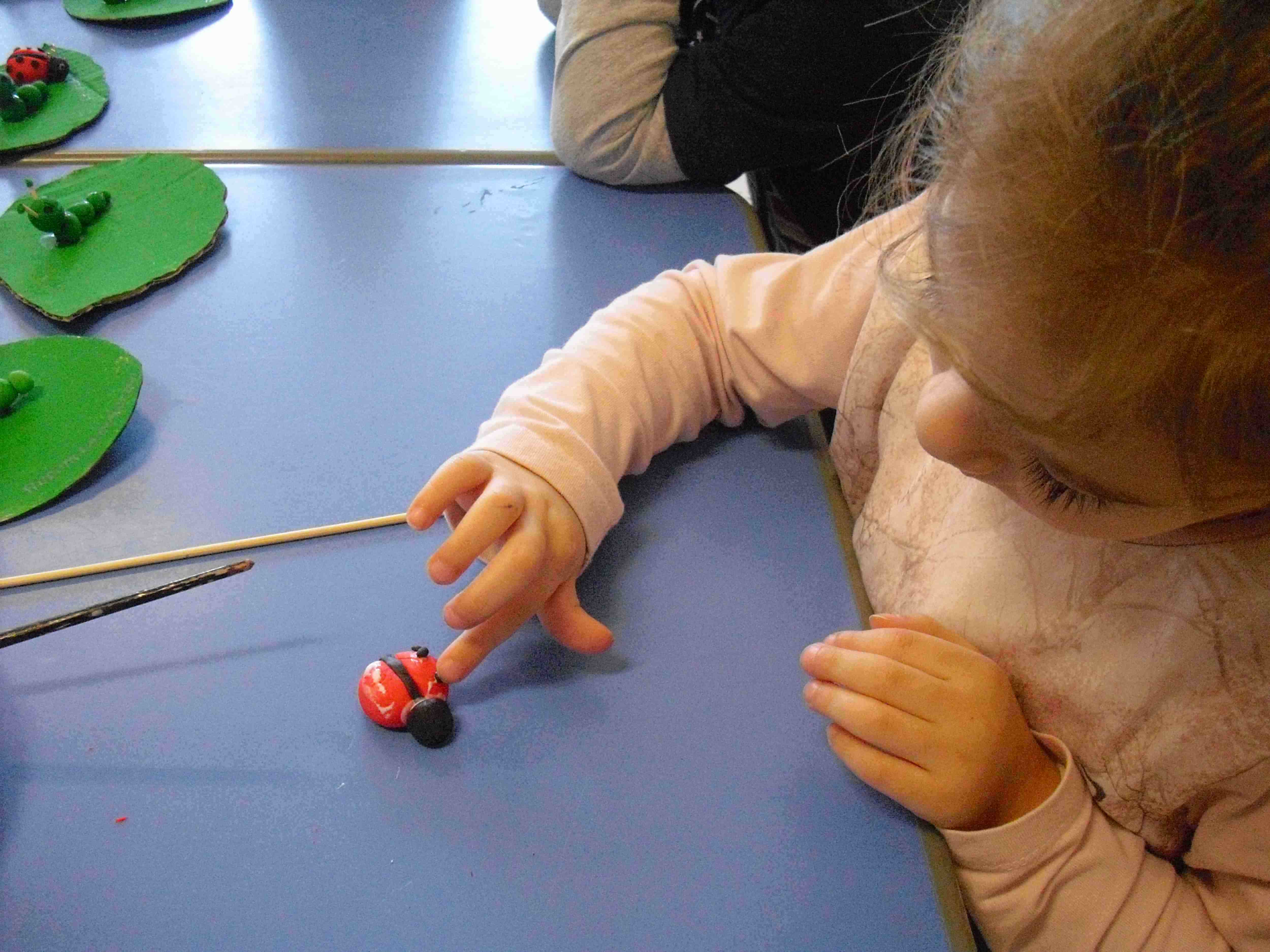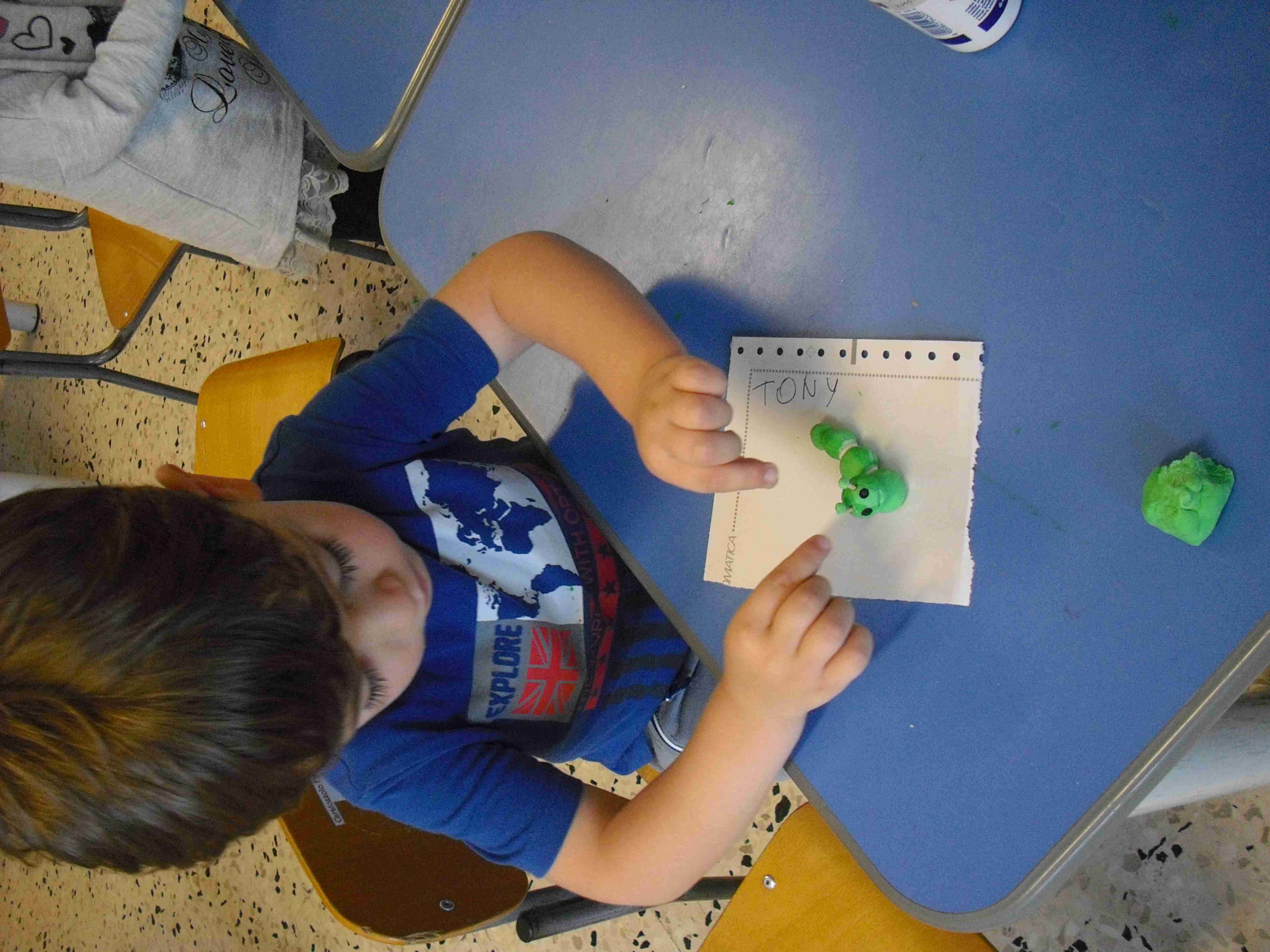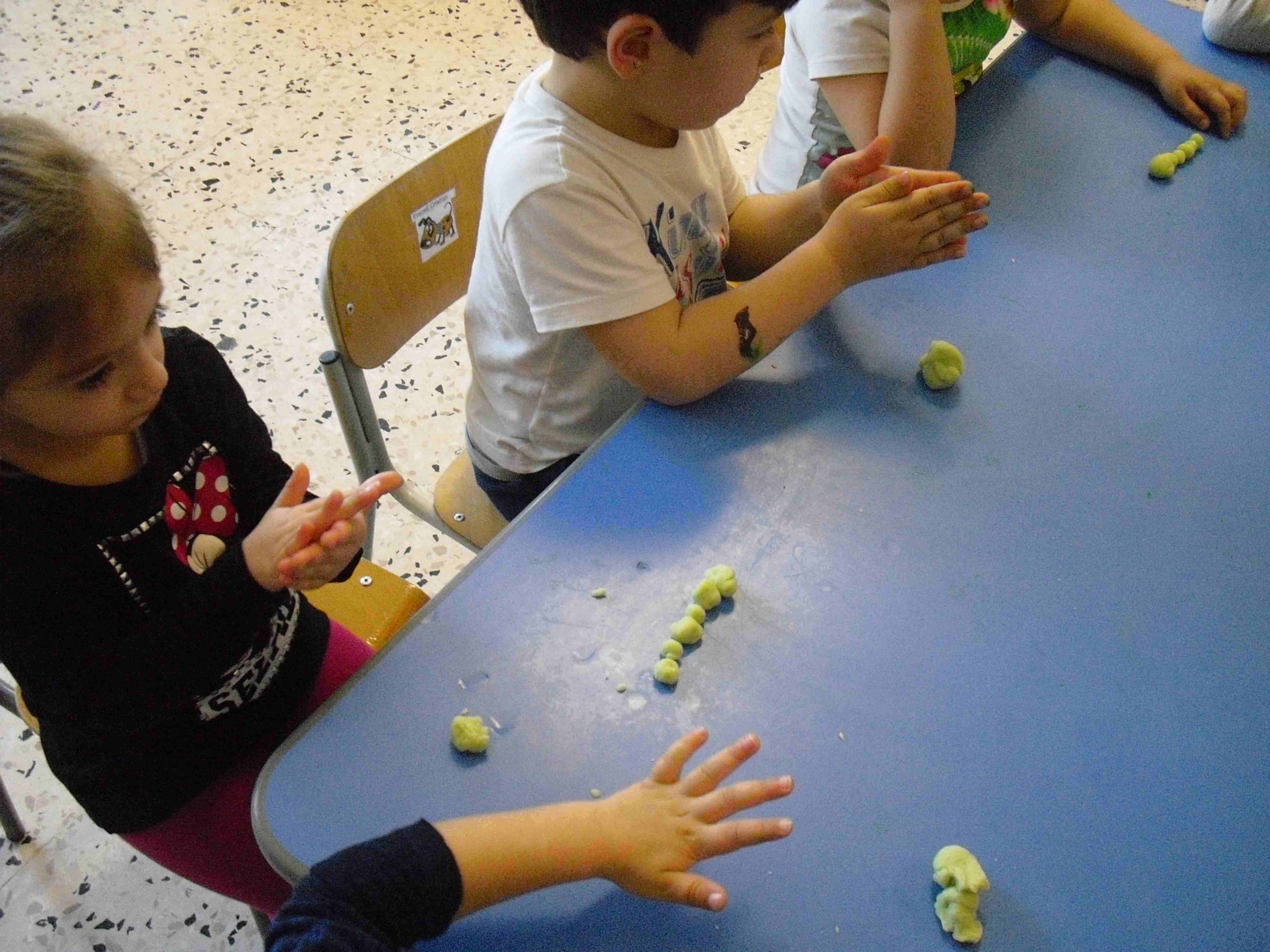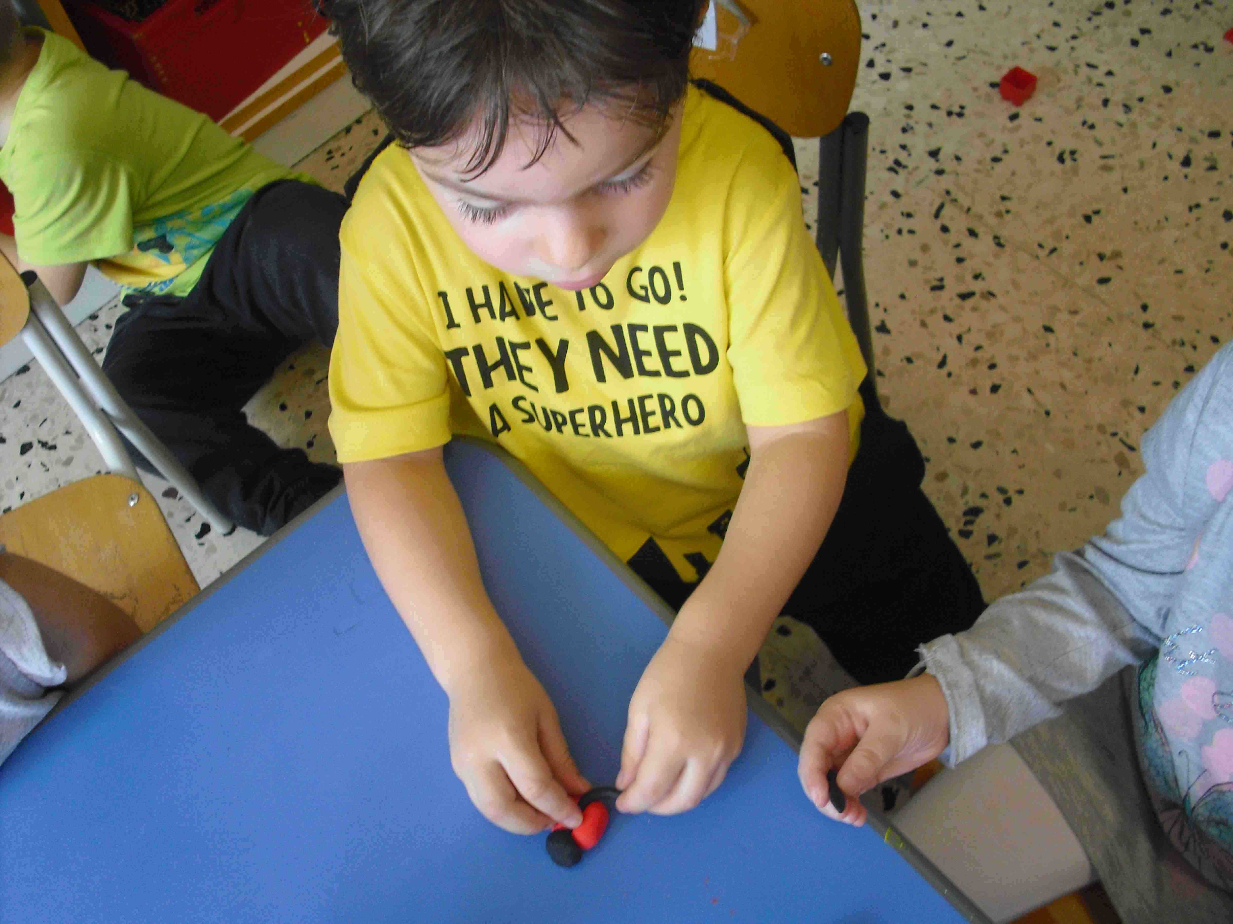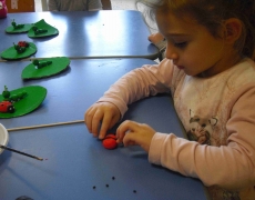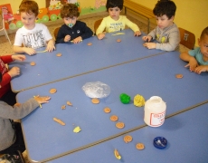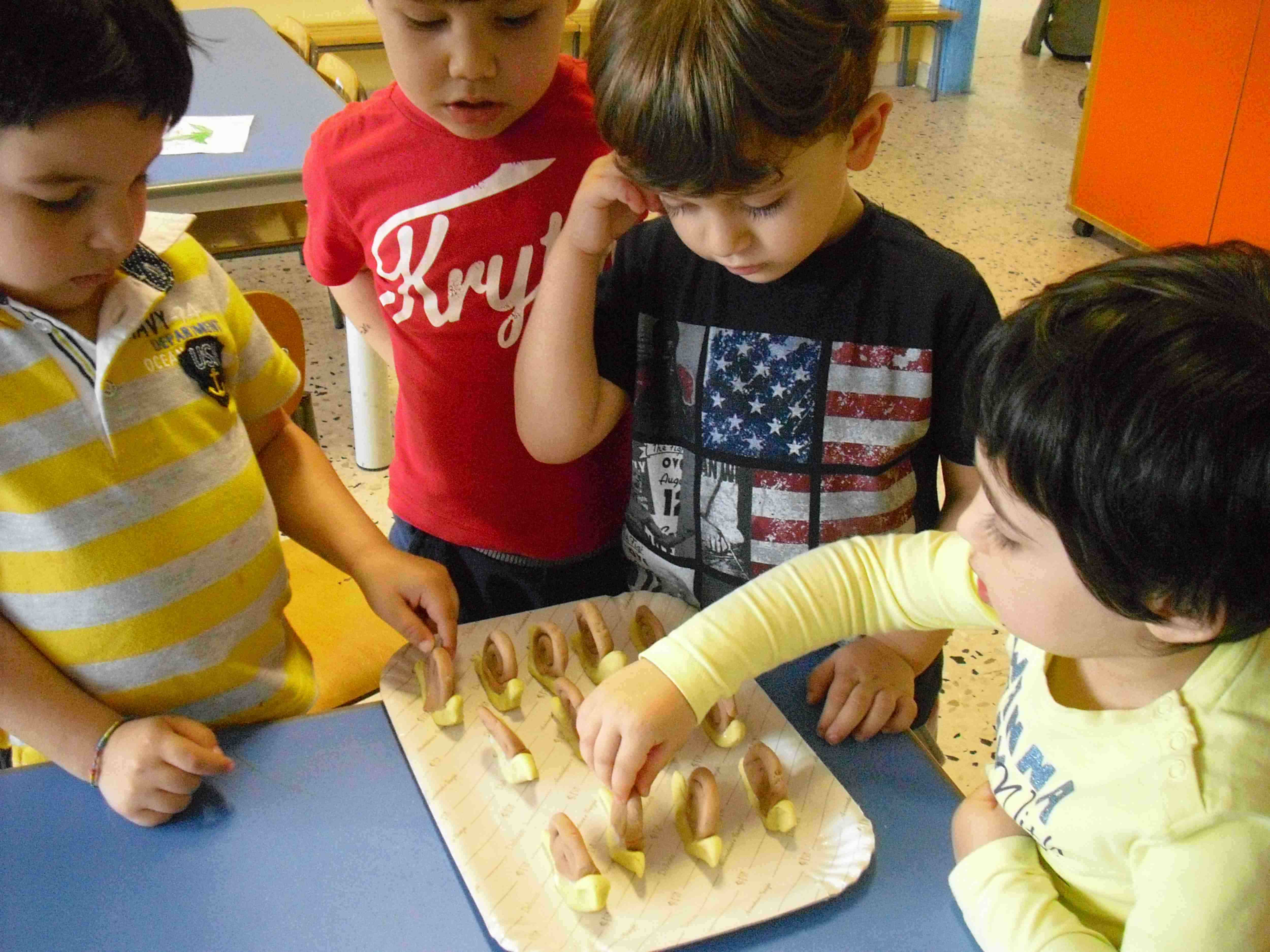 I bambini della sezione 1° B tutti insieme hanno giocato con la pasta modellabile e creato i loro animaletti del prato: coccinelle, bruchi e lumache.