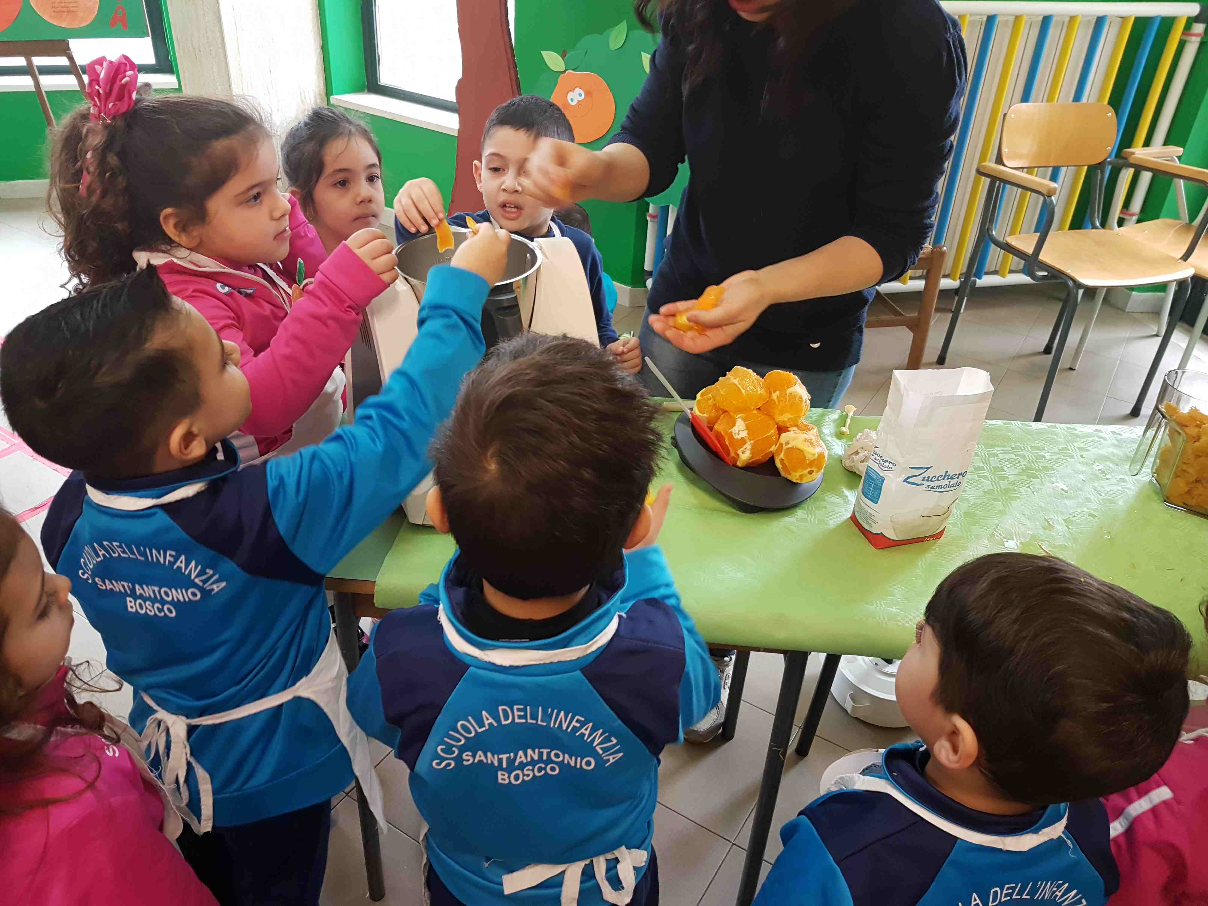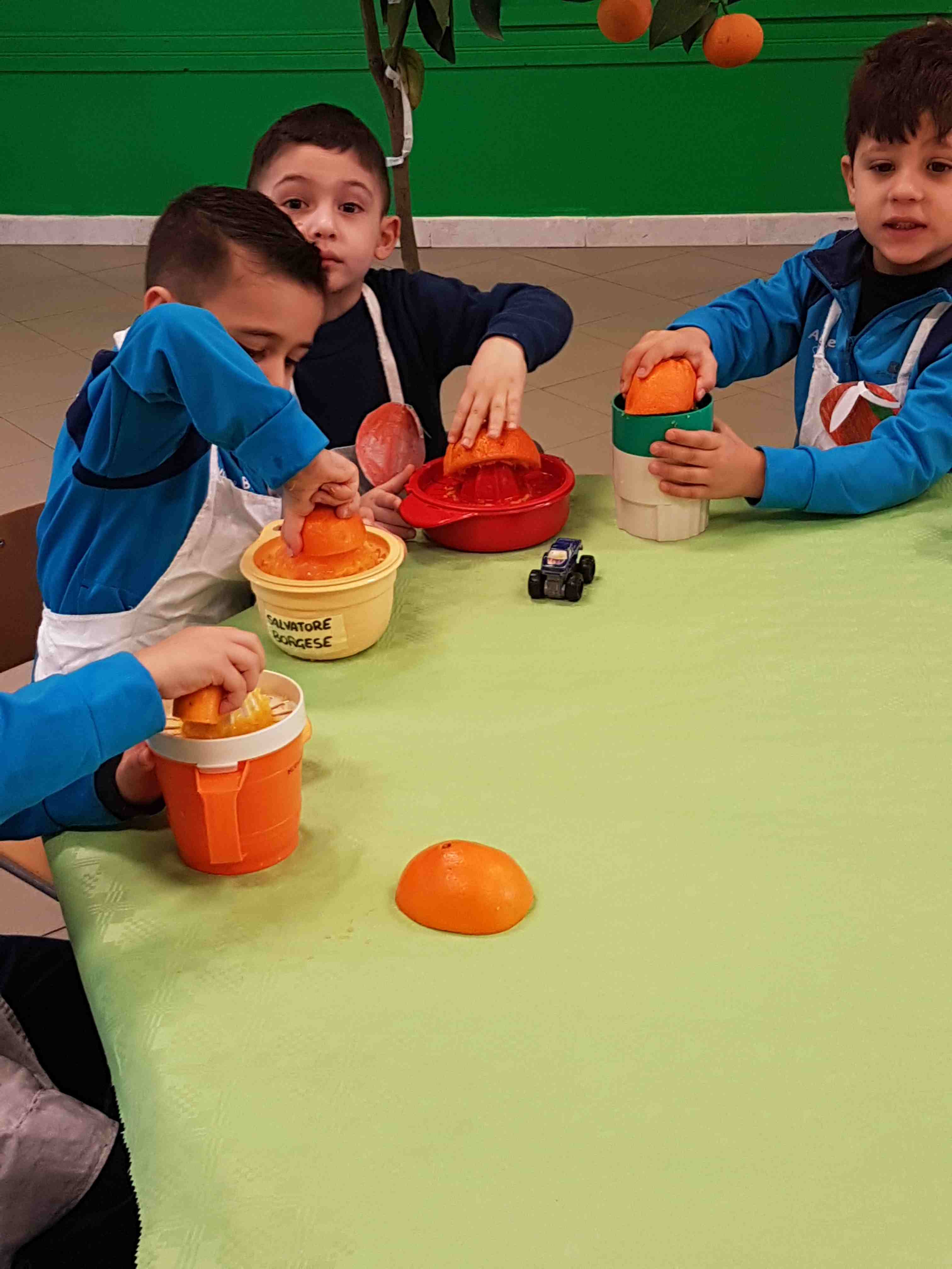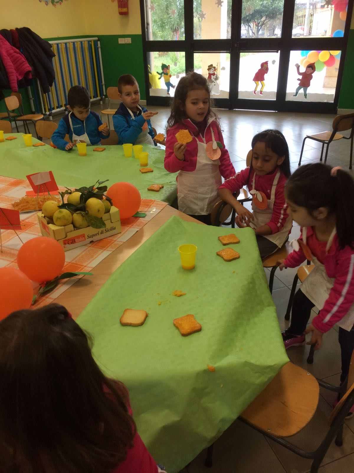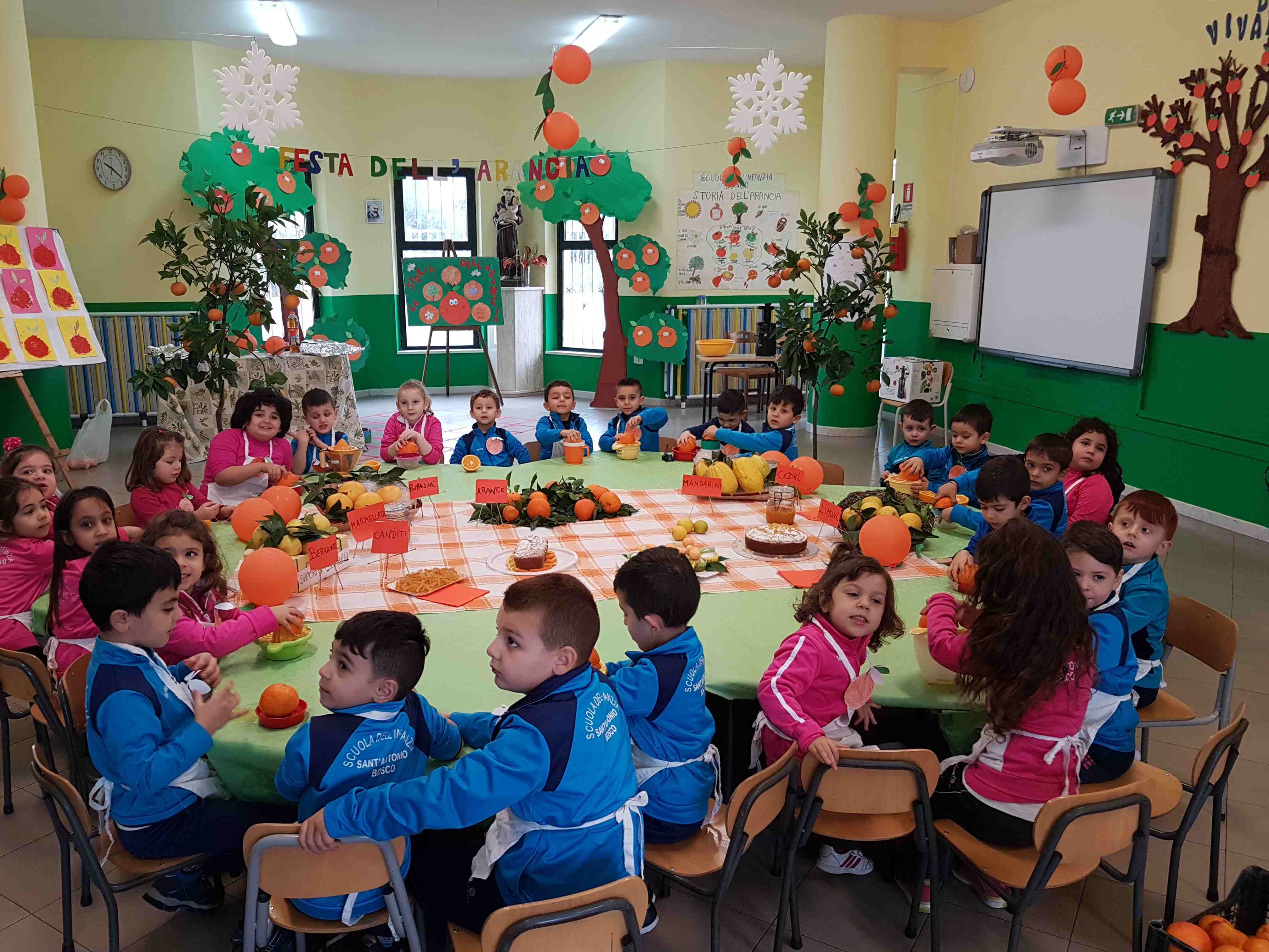Un'immersione nella cultura e nei profumi della nostra terra per i Bambini della scuola dell'Infanzia Bosco ,che hanno partecipato alla " Festa Dell'Arancia" organizzata giorno 10/02/2017 nel salone della scuola.Le maestre dopo un periodo di preparazione sulle tradizioni del nostro territorio ,legate agli agrumi, alla loro lavorazione e all'importanza di questo gustoso frutto, con la realizzazione di un laboratorio di esperienze manipolative e pittoriche,hanno organizzato prima un'uscita didattica alla fabbrica dell'arancia,dove hanno potuto osservare la trasformazione del frutto in succhi e canditi ,qualche giorno dopo la raccolta delle arance in un giardino adiacente la scuola e x finire un momento di festa a scuola , dove i bambini con grande entusiasmo e curiosita' hanno prodotto ed assaggiato il succo, la marmellata e gustose torte preparate dai genitori .