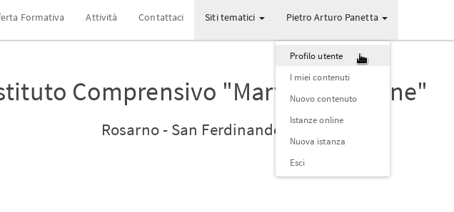 cliccando sulla voce “Profilo utente” presente in tutte le pagine in alto a destra sotto il vostro nome
