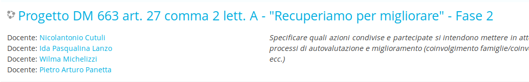 Dopo aver effettuato l'accesso alla piattaforma (o login), nella pagina princiaple clicca su "Progetto DM 663 art. 27 comma 2 lett. A - "Recuperiamo per migliorare" - Fase 2" per accedere al corso.