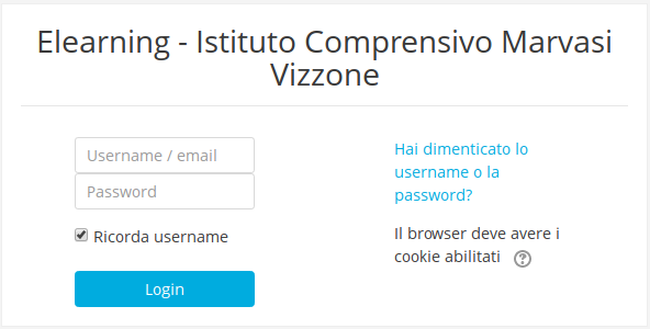 Inserisci l'username e la password che si trovano nel foglio delle credenziali che hai ritirato in segreteria.
