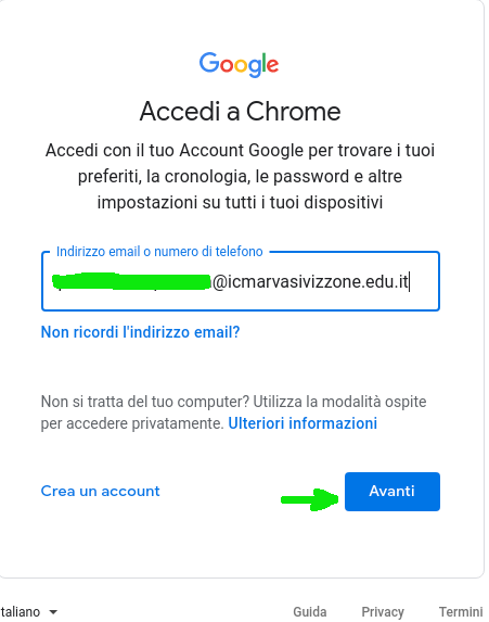 Quando richiesto devi inserire le credenziali GSuite che ti sono state consegnate.