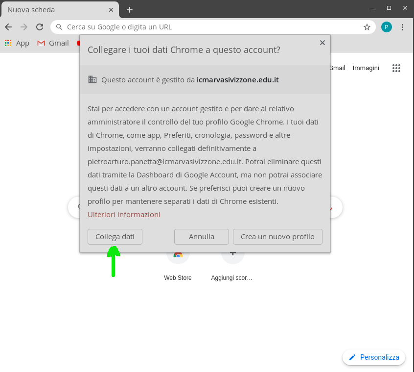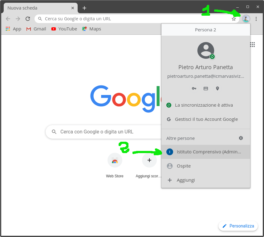 Ogni volta che usi chrome, tutti i tuoi dati vengono sincronizzati su google (e in questo caso sull'account GSuite dell'Istituto): preferiti, dati di navigazione, username, password, codici di carte di credito, documenti, calendario, contatti, qualsiasi cosa tu faccia con chrome o che hai sincronizzato con google. GSuite e Chrome sono ottimi strumenti per lavorare/studiare se usati consapevolmente. Per la tua vita privata scegli altro.