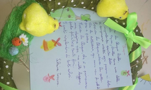 Gli alunni della classe V A, anche in occasione delle festività pasquali, hanno realizzato un biglietto di auguri. Il testo poetico, scritto all'interno, sarà recitato ai familiari per augurare loro una serena Pasqua.