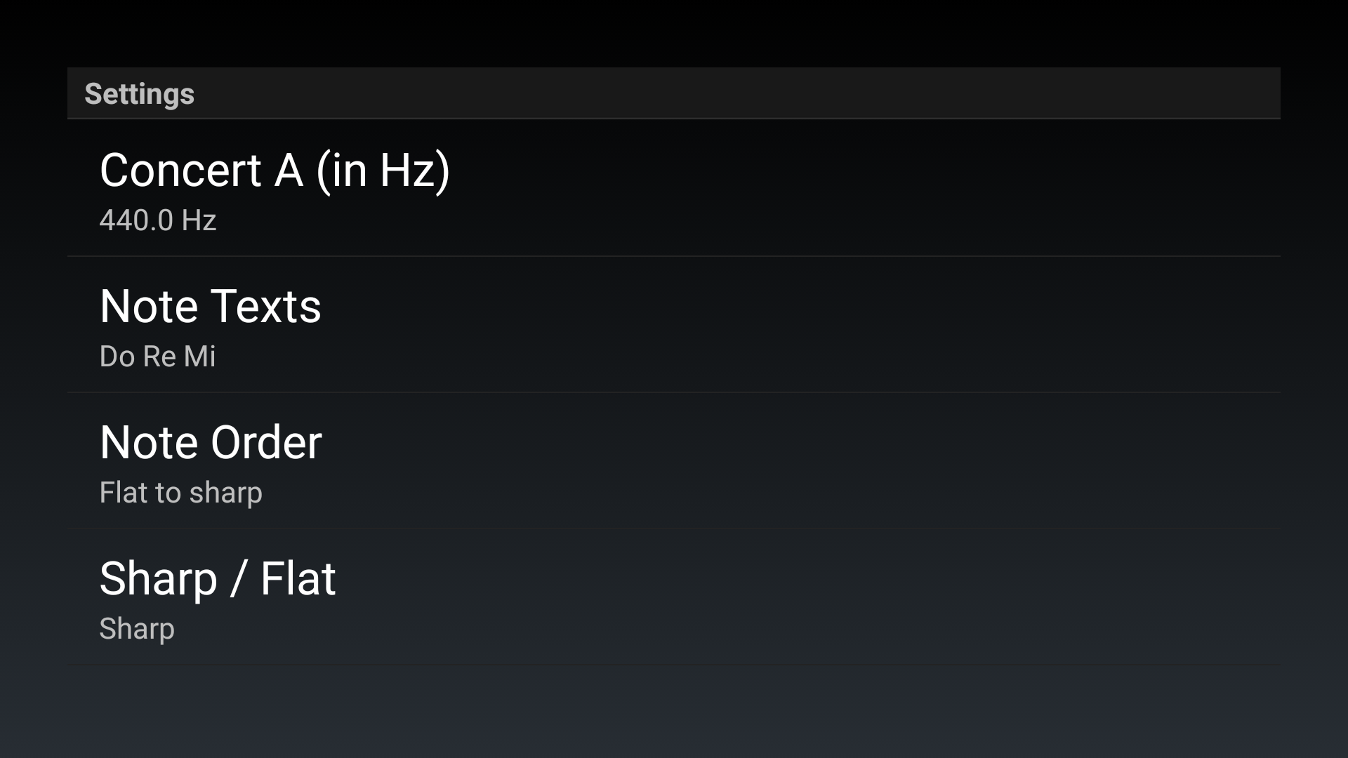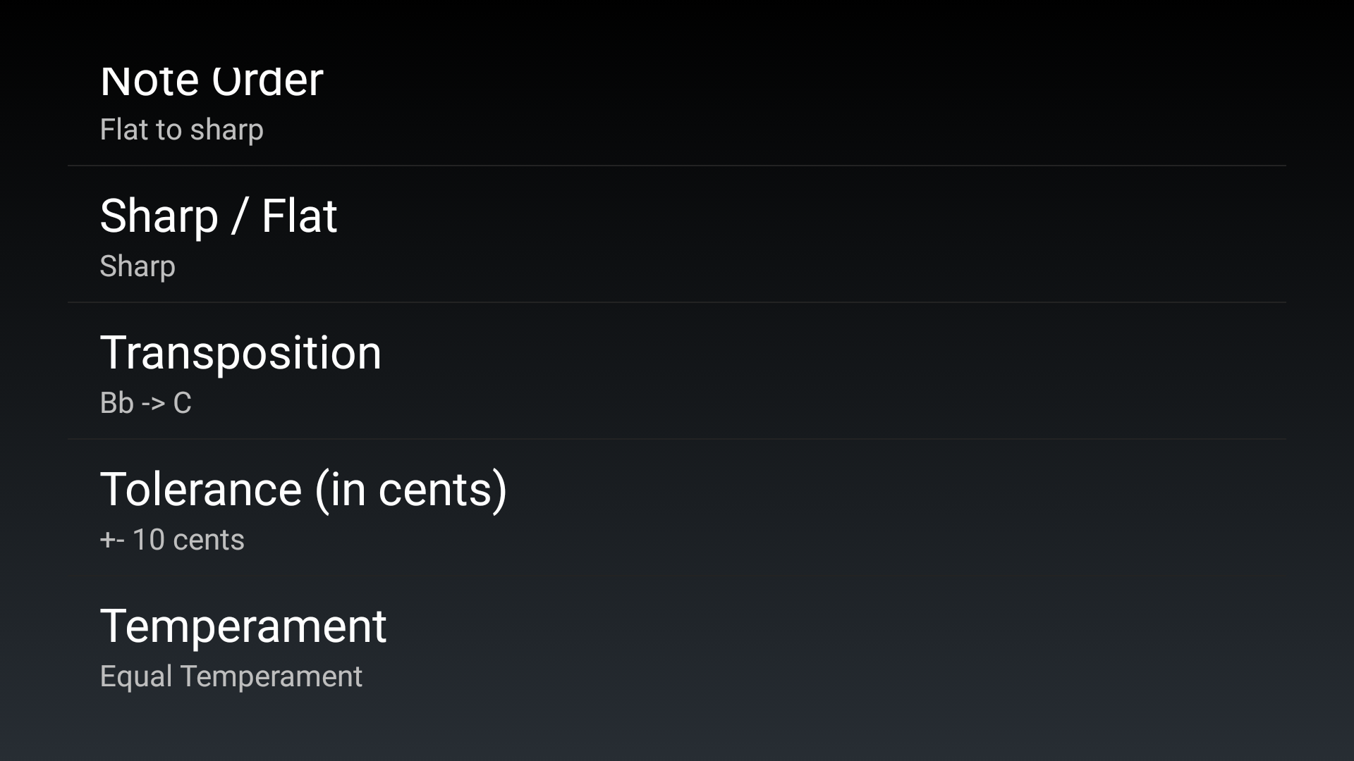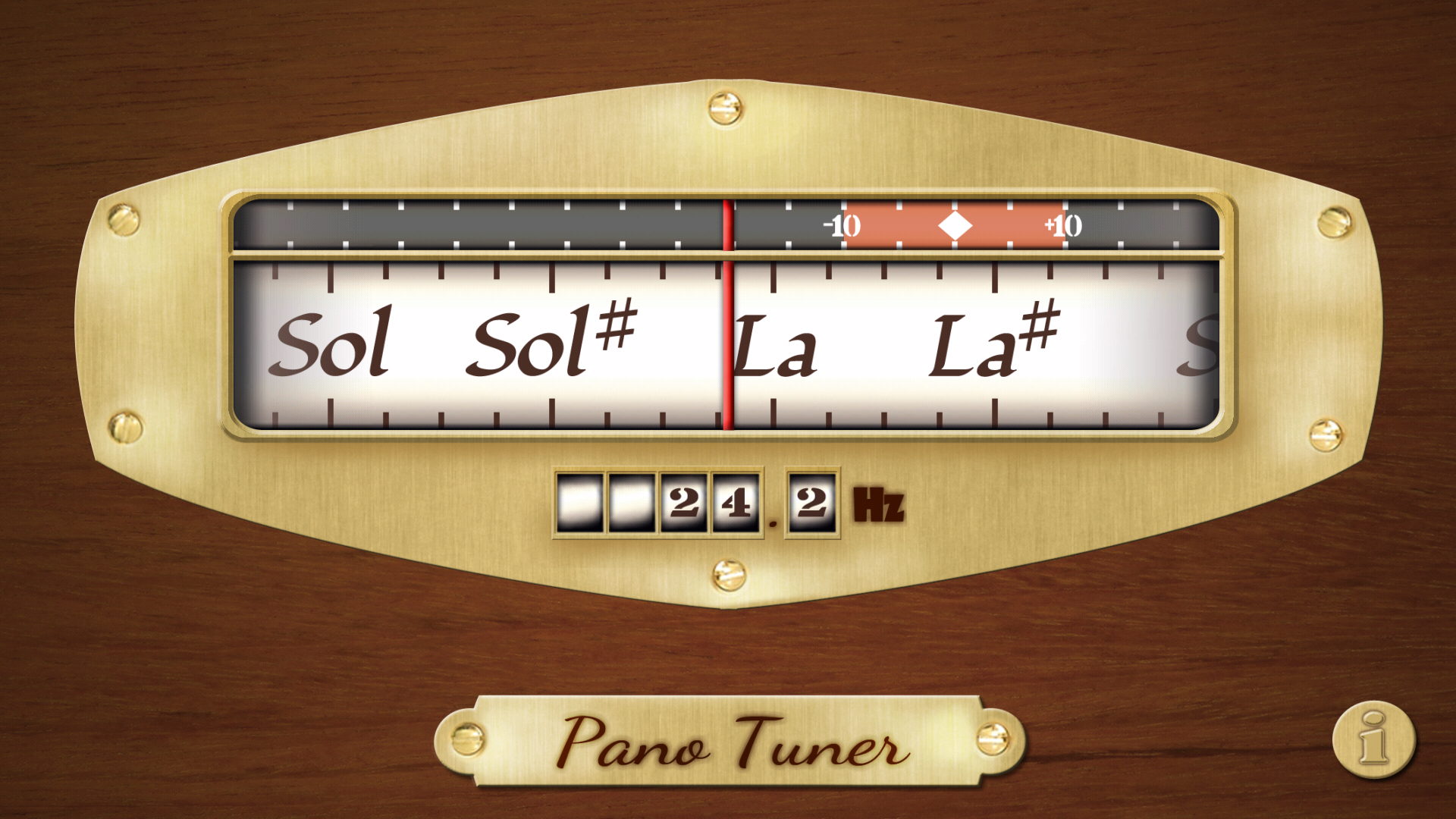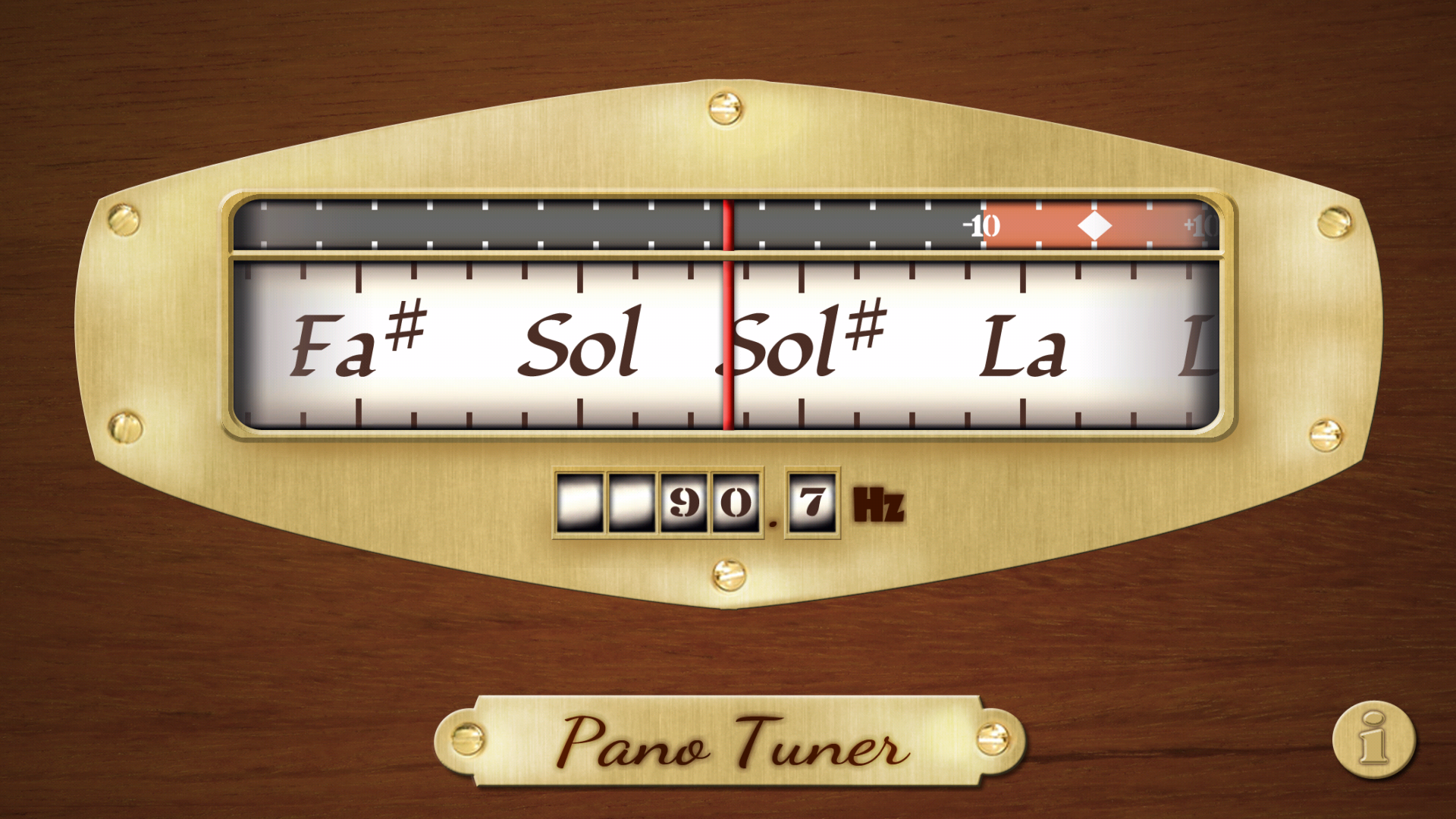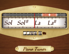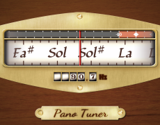 Pano Tuner ascolta il suono prodotto e mostra l'intonazione con tre indicatori: nome della nota, centesimi e Hertz. Caratteristiche: