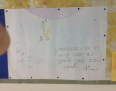 I bambini estrapolano dal testo le citazioni più dolci che toccano il loro cuore e creiamo una bacheca in classe.