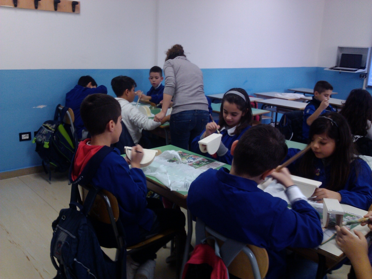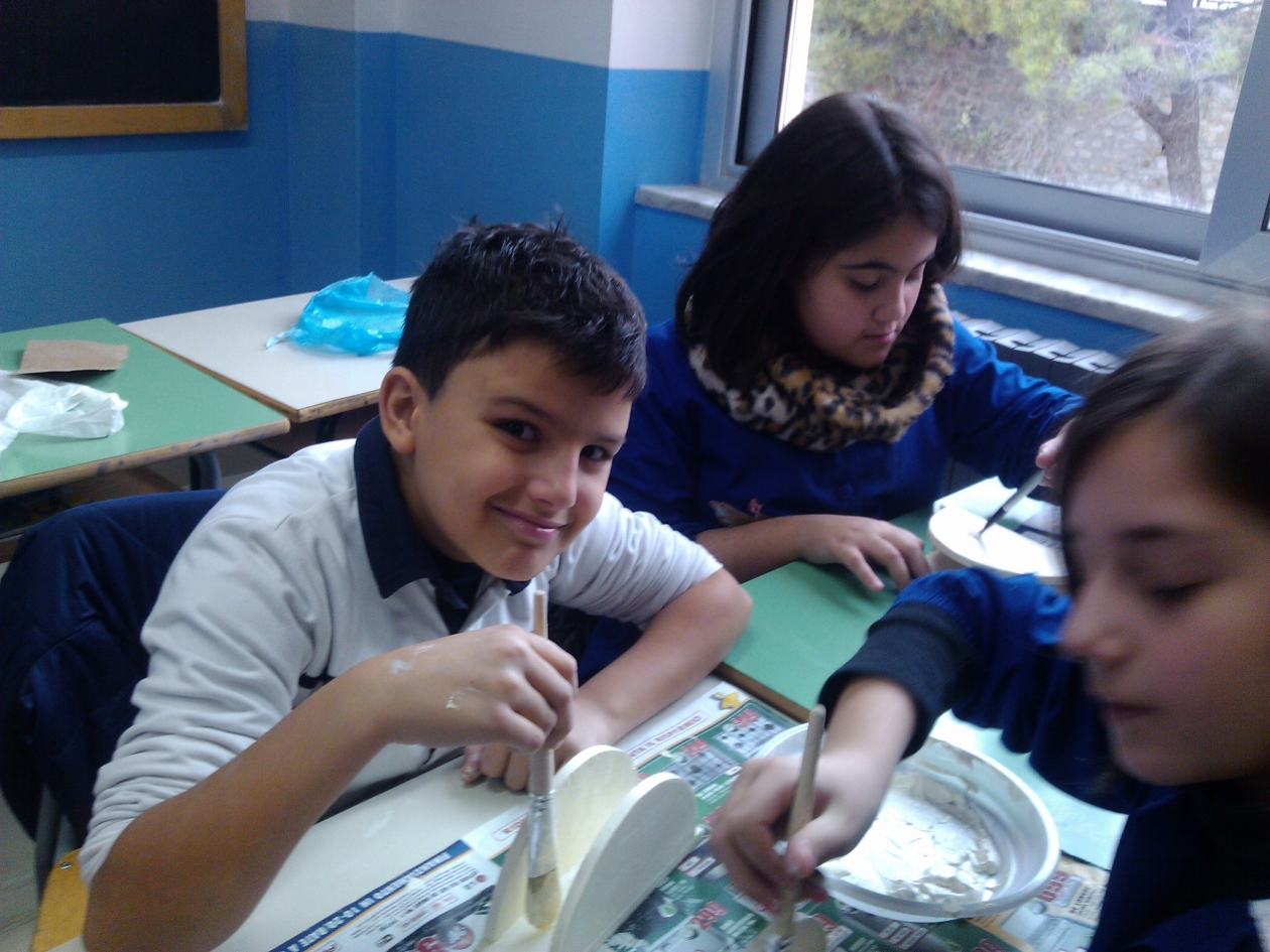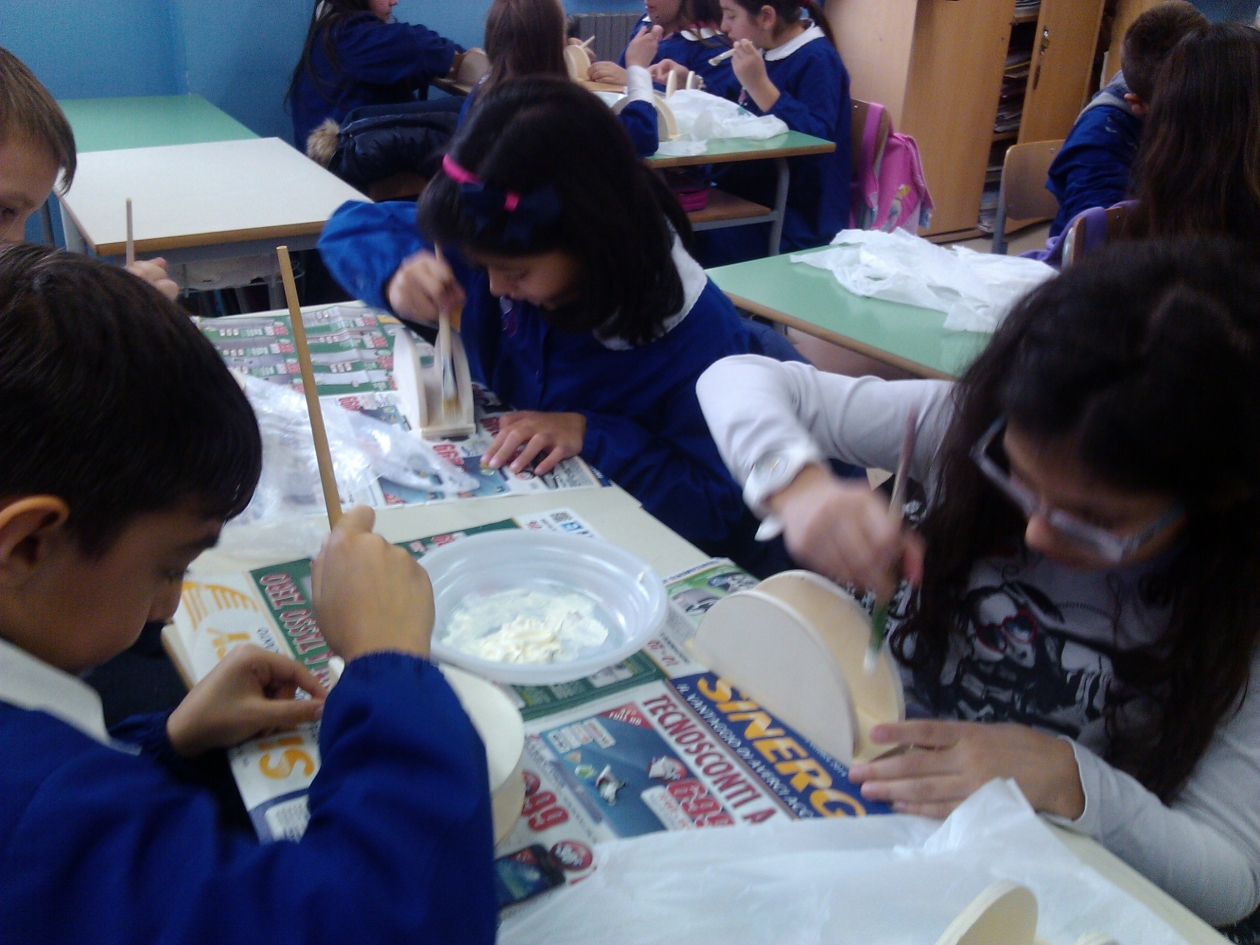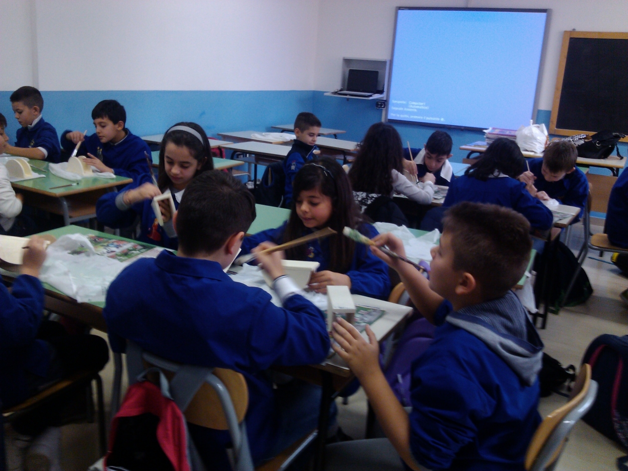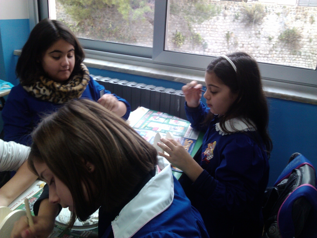 Gli alunni della classe Quinta A impegnati nella realizzazione del lavoretto di Natale 2014
