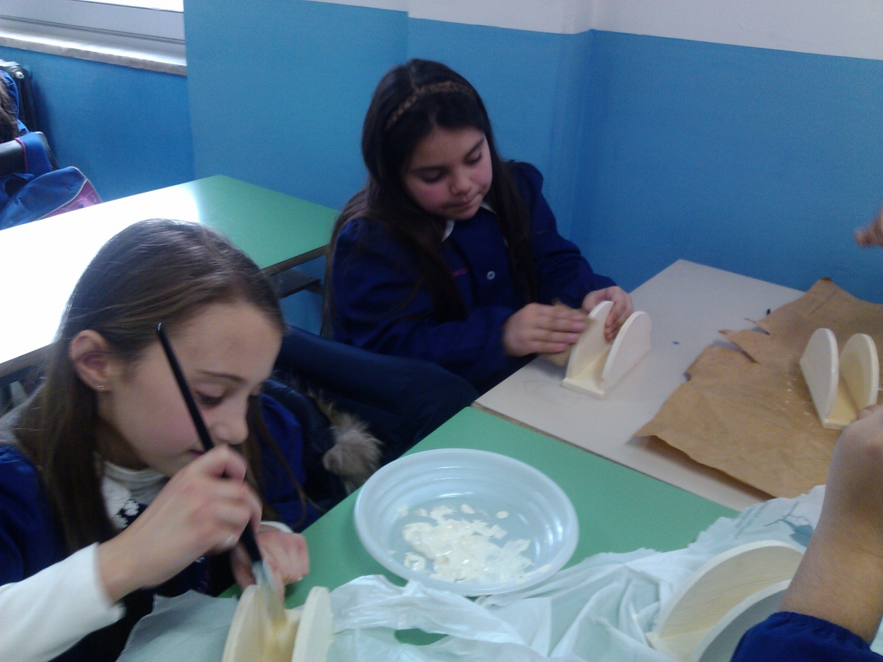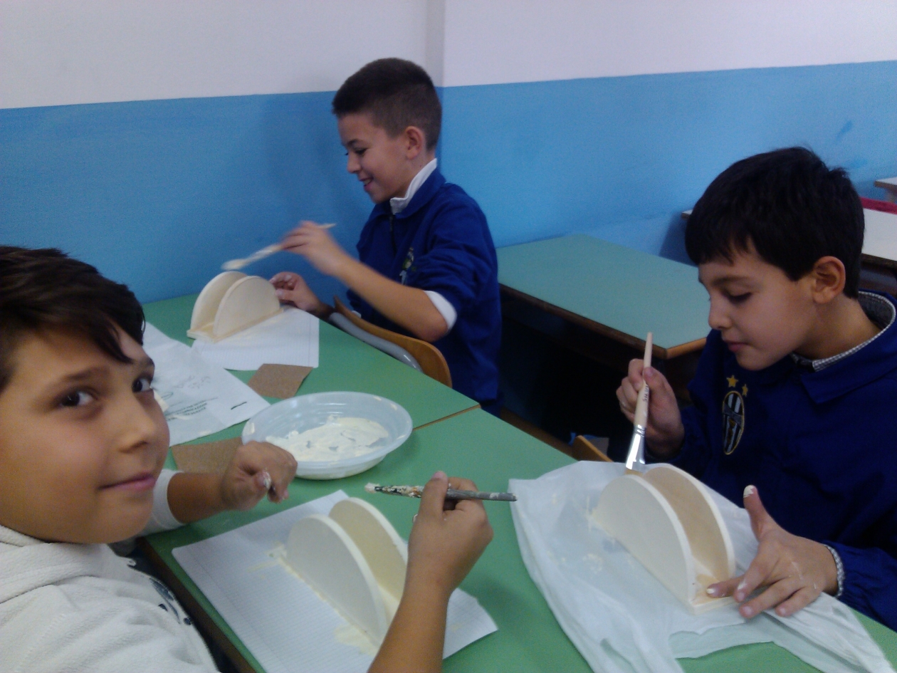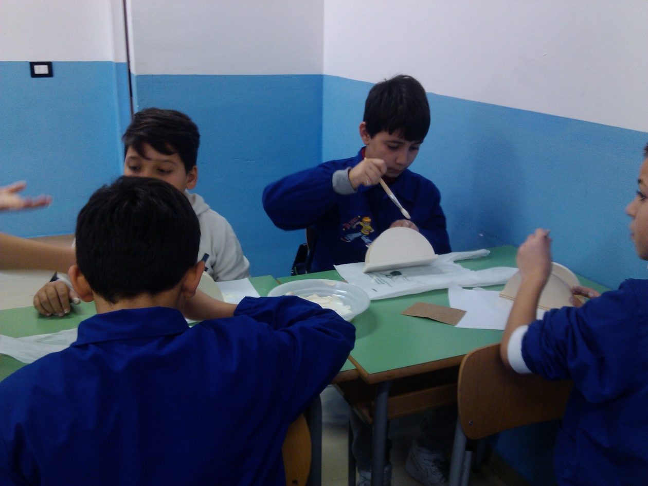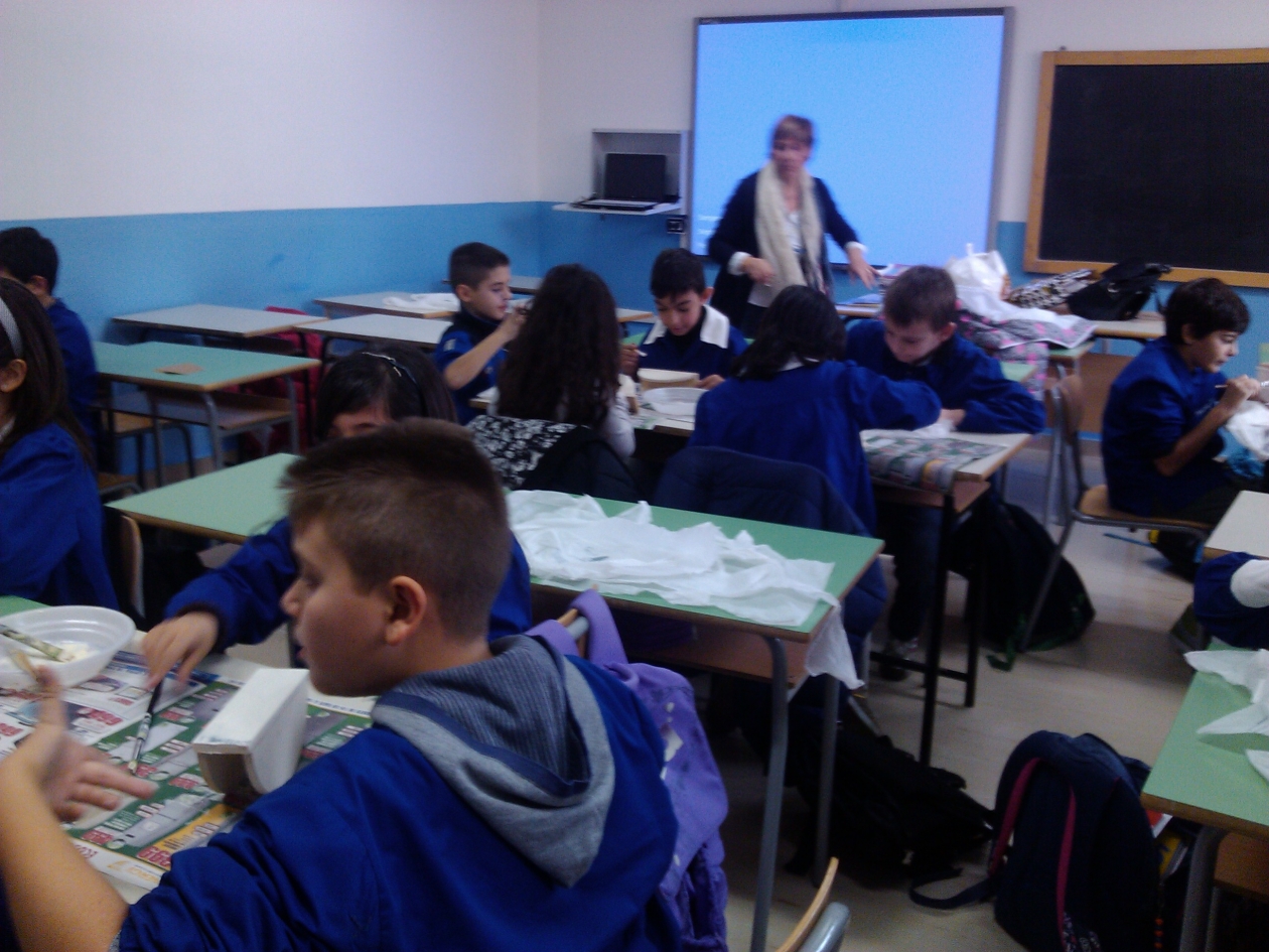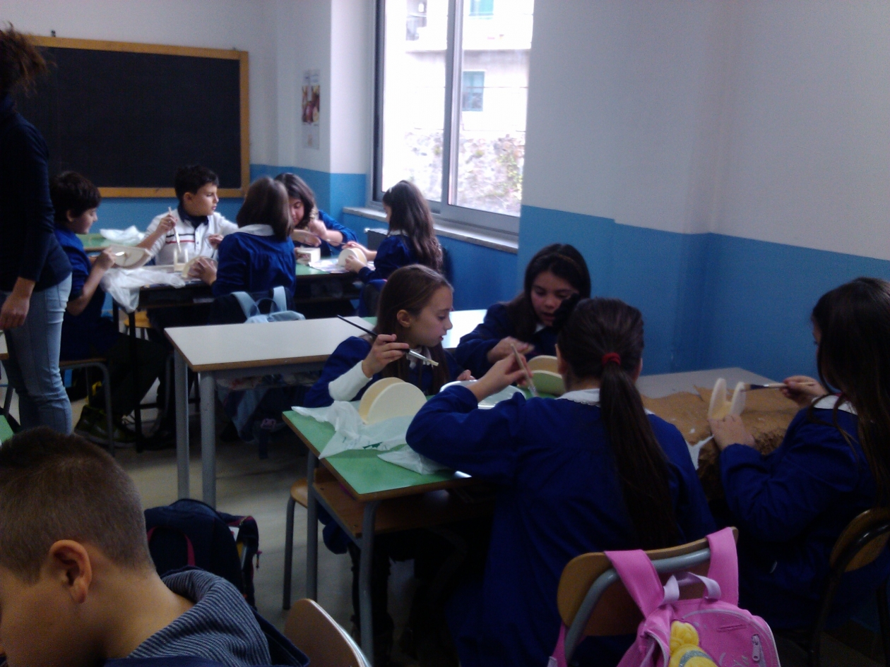 Gli alunni della classe Quinta A impegnati nella realizzazione del lavoretto di Natale 2014