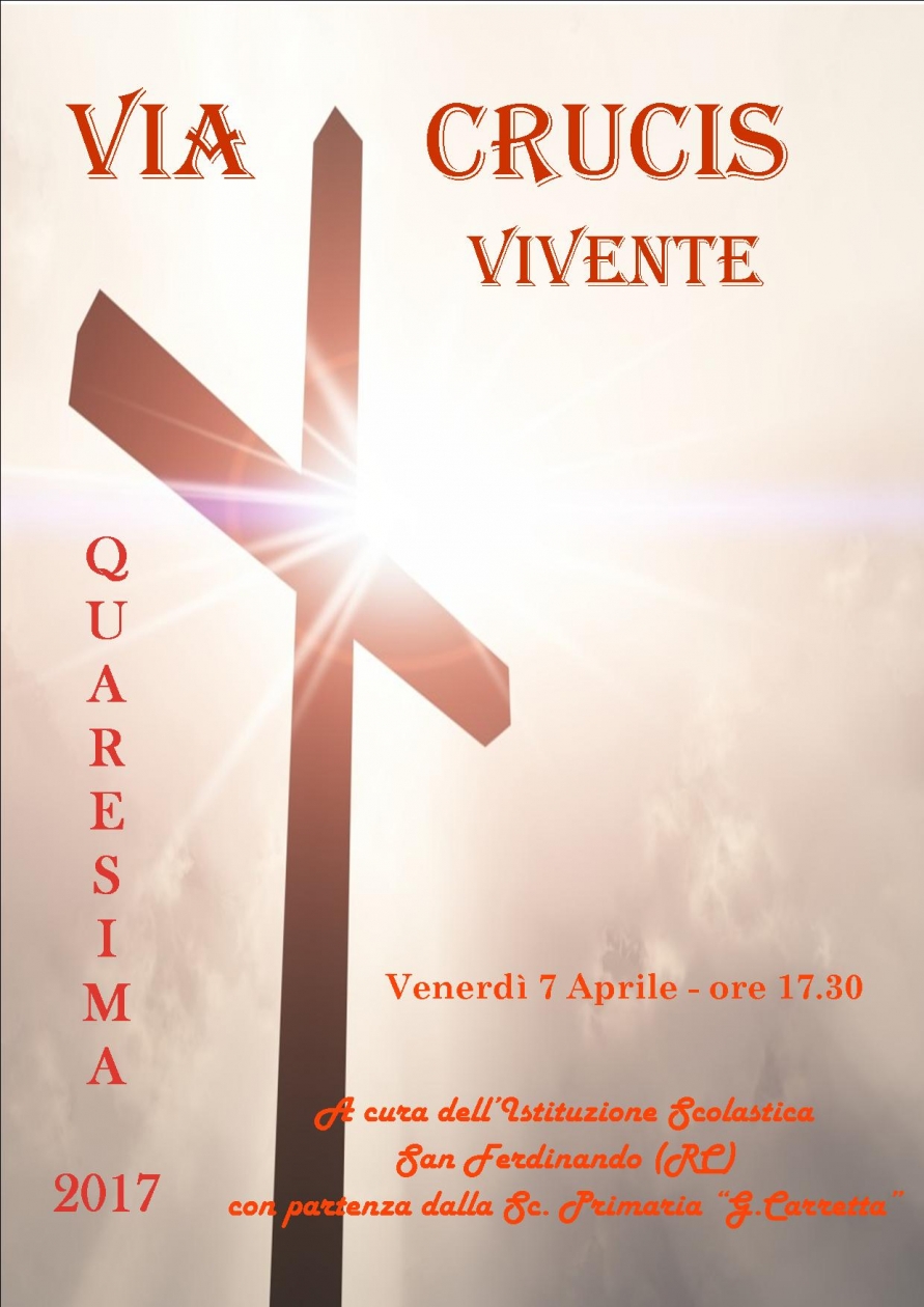 Via Crucis Vivente, venerdi 7 Aprile alle ore 17.30, a cura dell’Istituzione Scolastica San Ferdinando (RC), con partenza dalla Scuola Primaria “G.Carretta”.