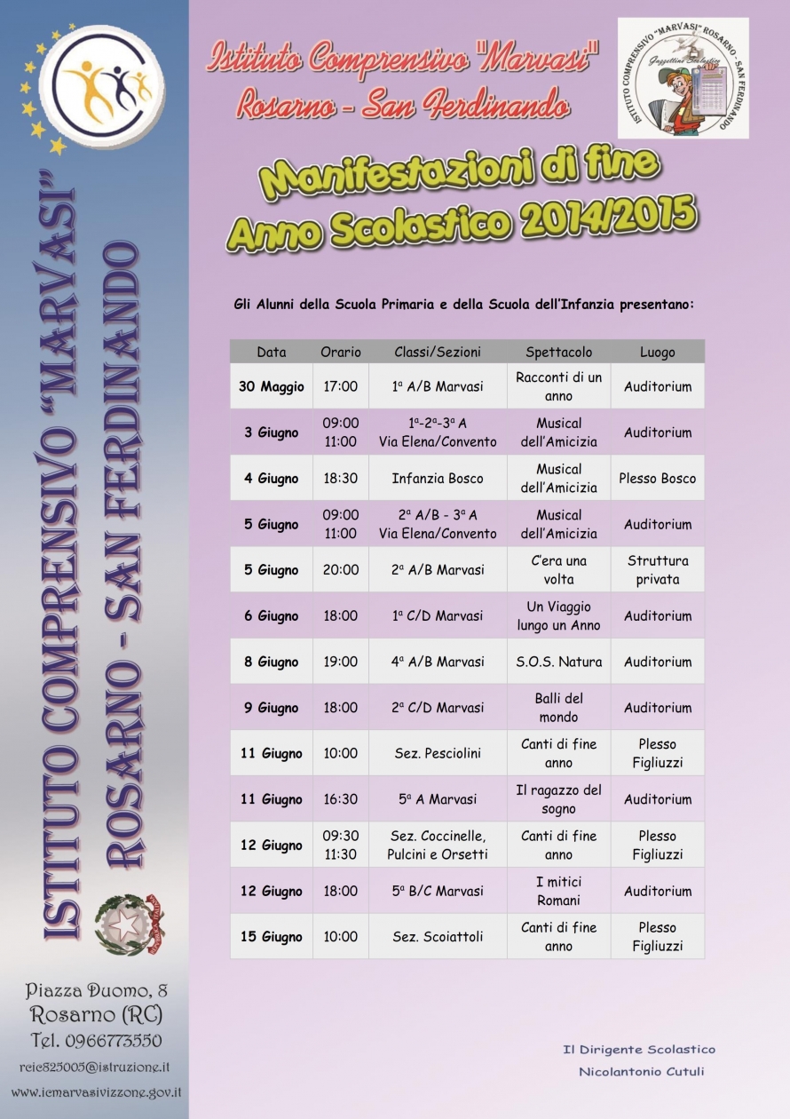 Si pubblica il calendario delle manifestazioni di fine anno scolastico.