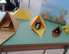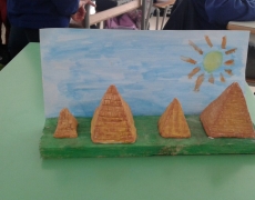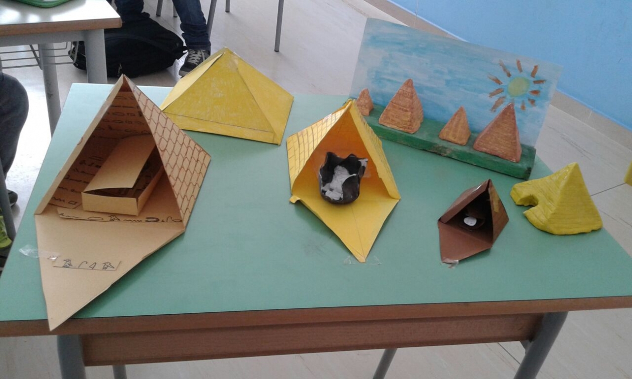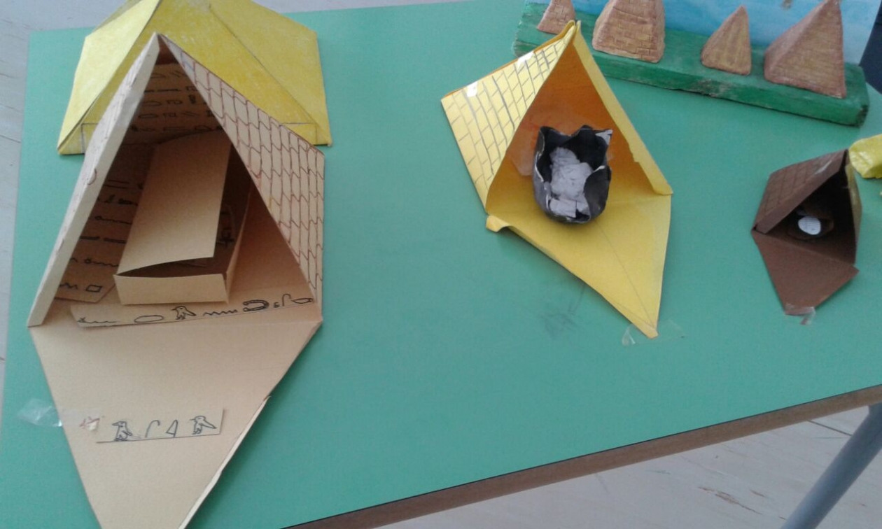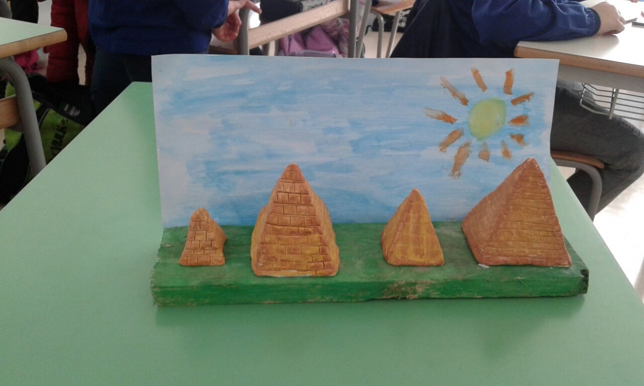 I lavori di Storia e Tecnologia realizzati dagli alunni della 4^ A con l'utilizzo di diversi materiali: cartoncino, das, legno; fogli di papiro realizzati con la stessa tecnica usata dagli antichi Egizi.