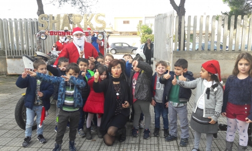 Mattinata di festa con sorpresa per i bambini della scuola dell' Infanzia "Figliuzzi". Babbo Natale, infatti, è arrivato a scuola in moto e ha distribuito caramelle a tutti i bambini.